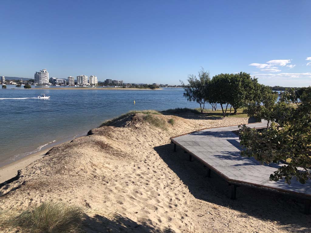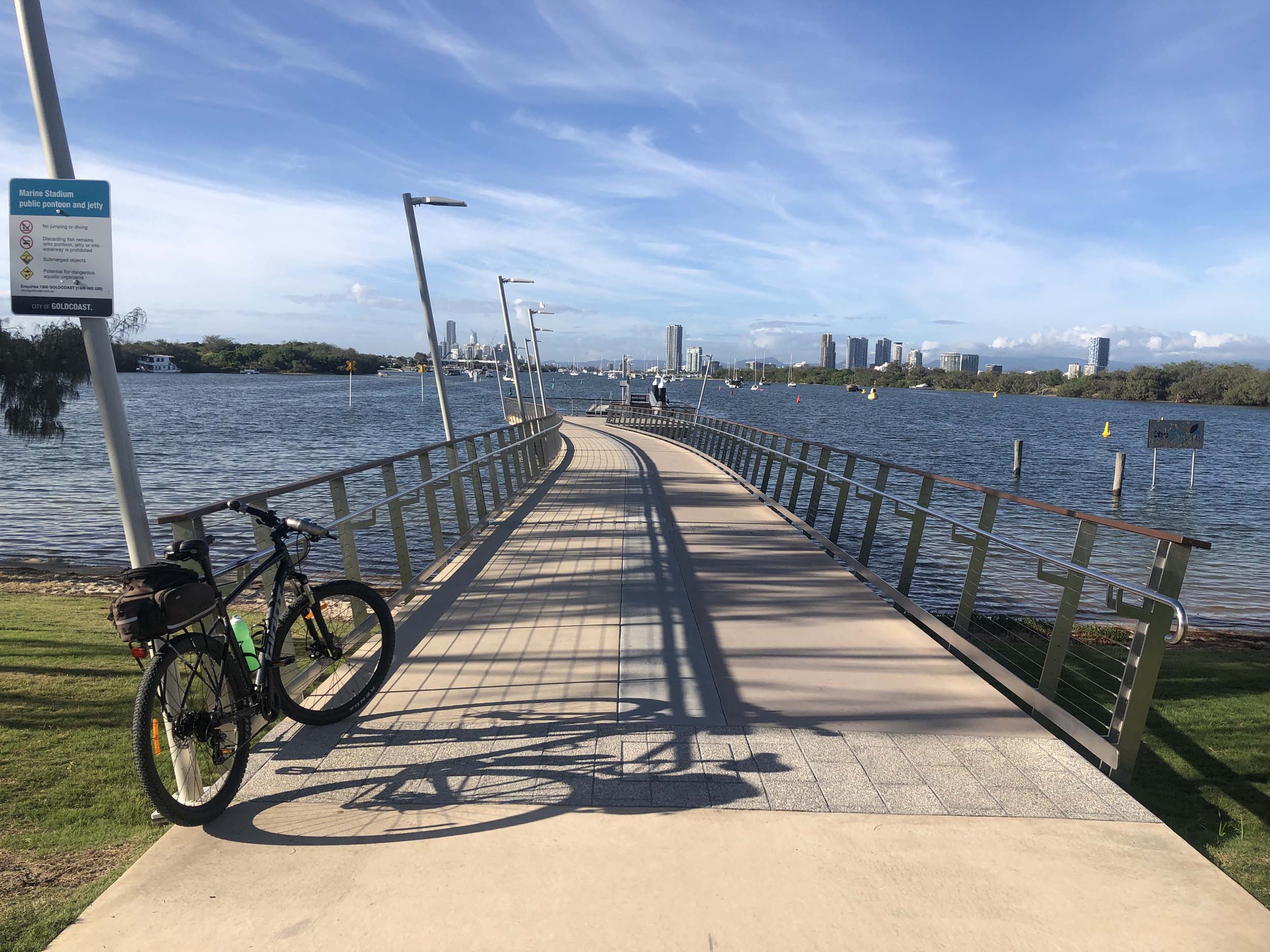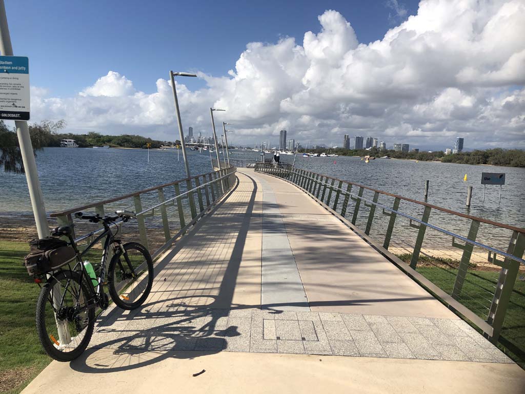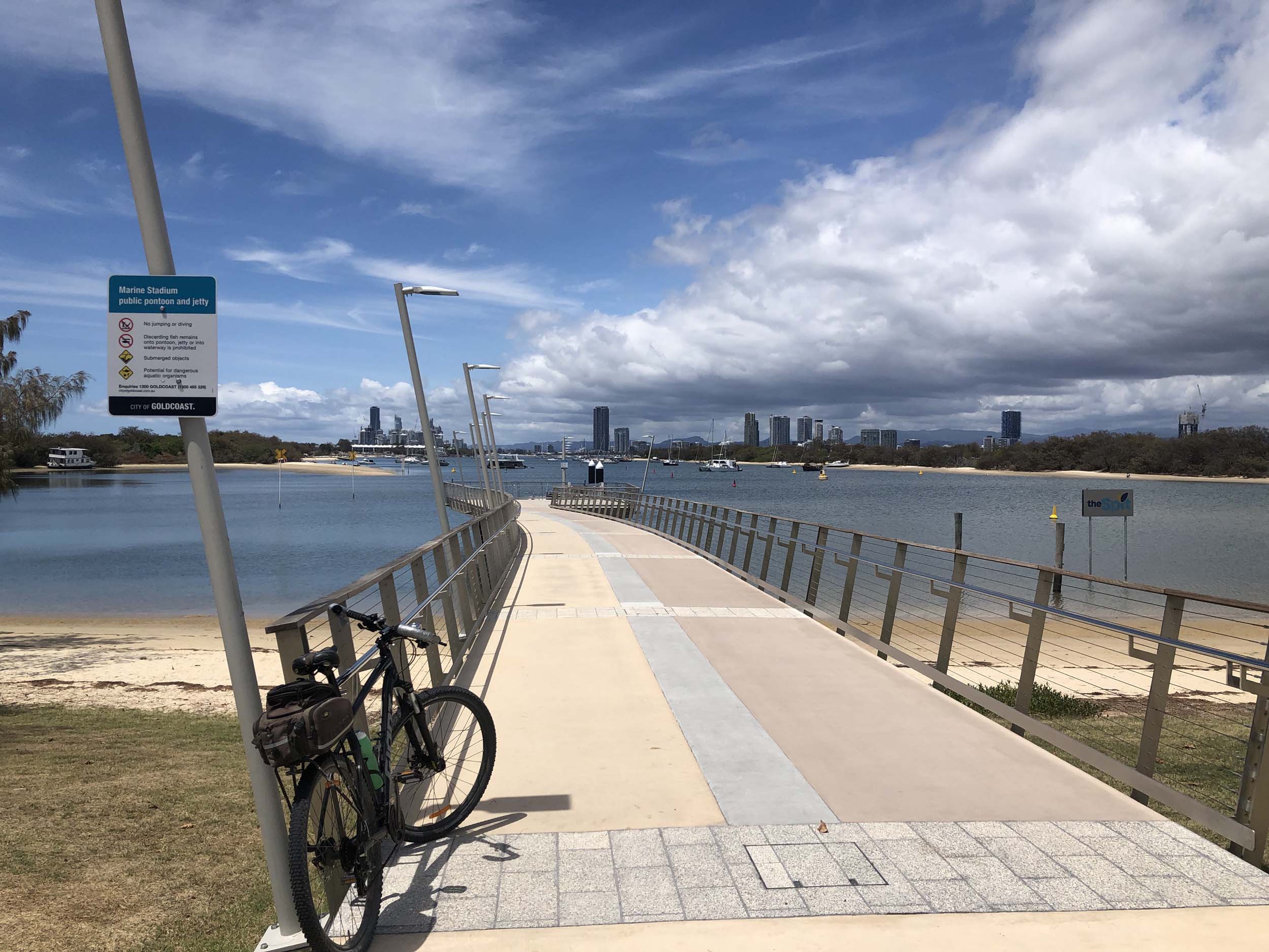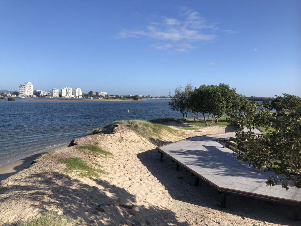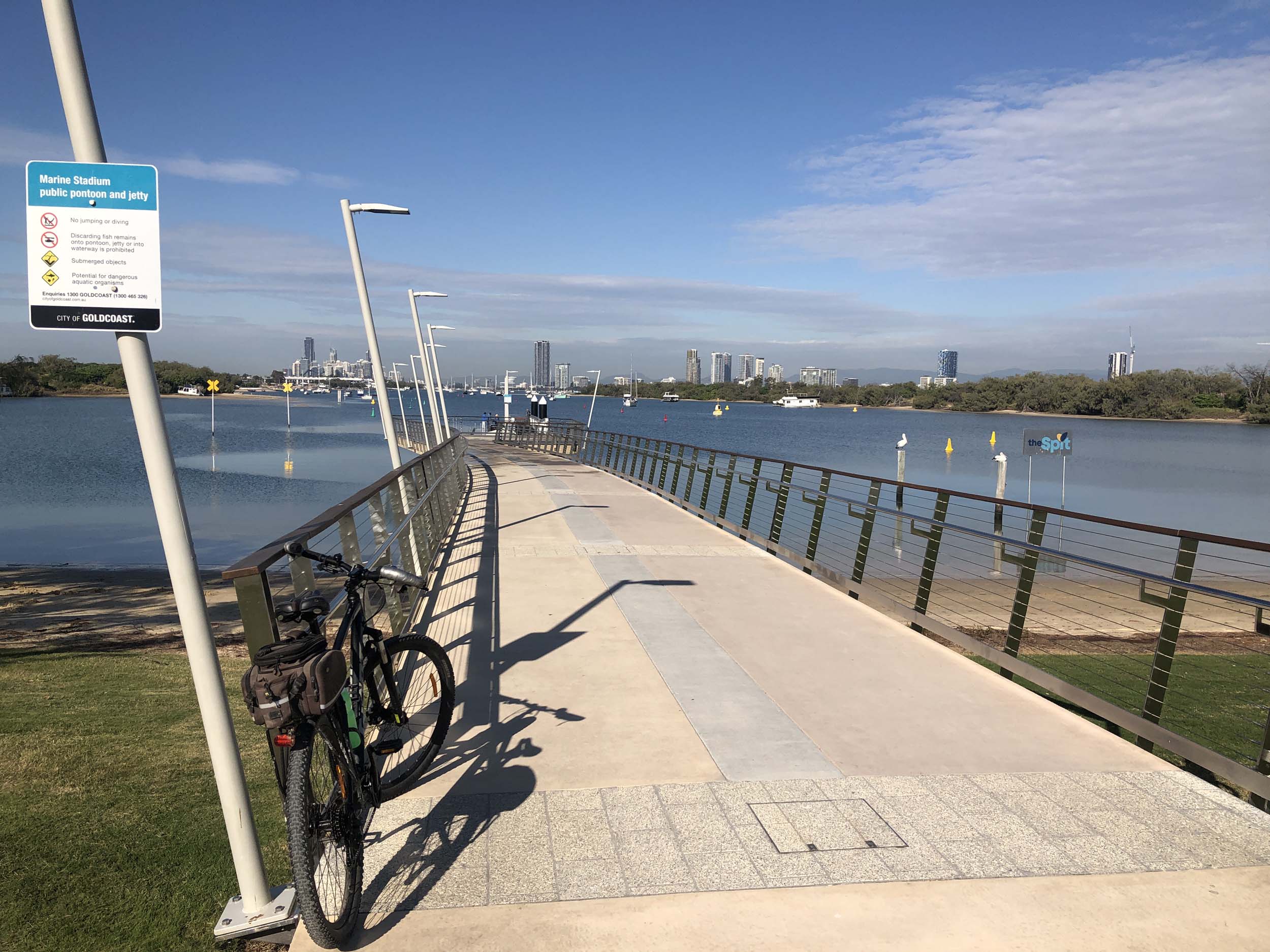 Continued through the Southport YC, along the jetties at Marina Mirage, then around the edge of the Seaworld carpark, then continued along the shared path to The Spit.