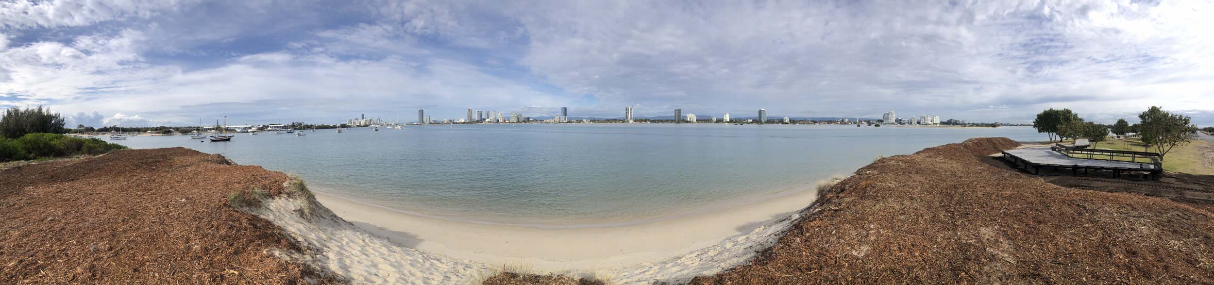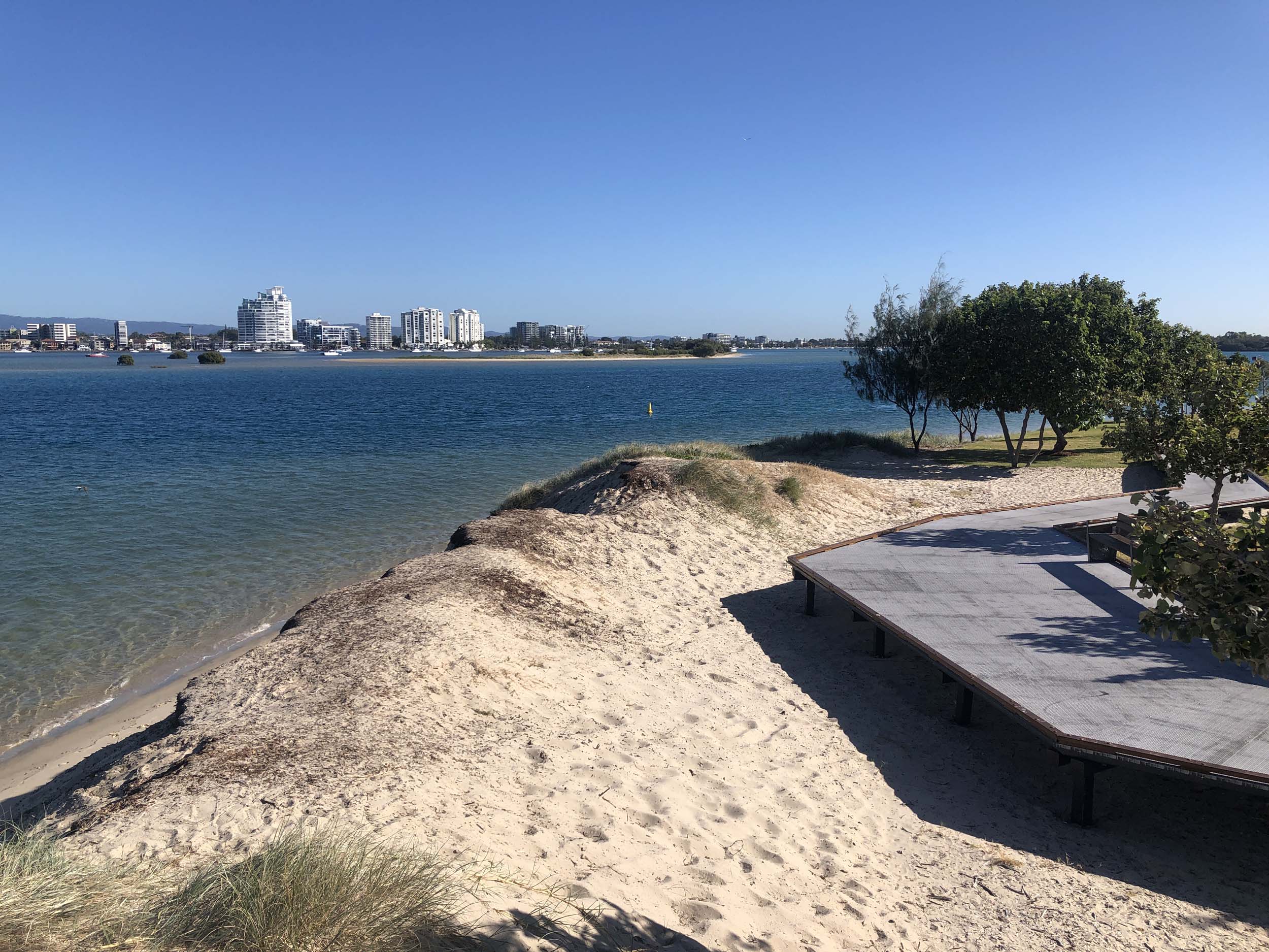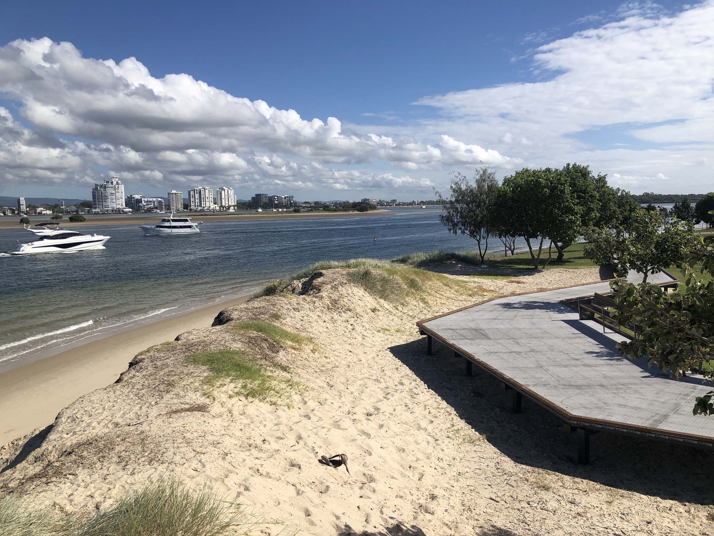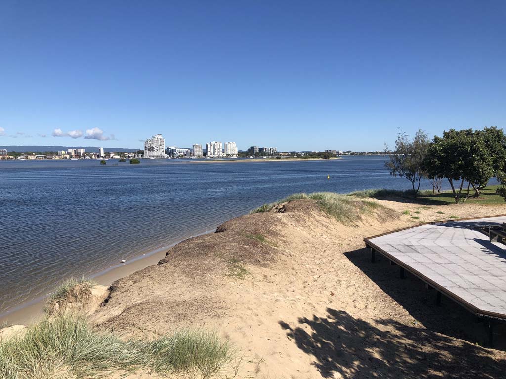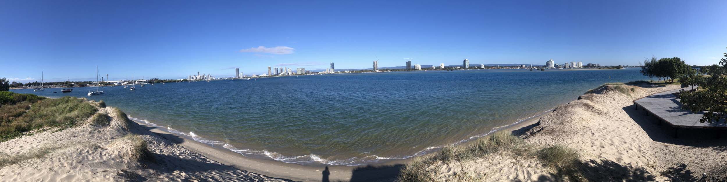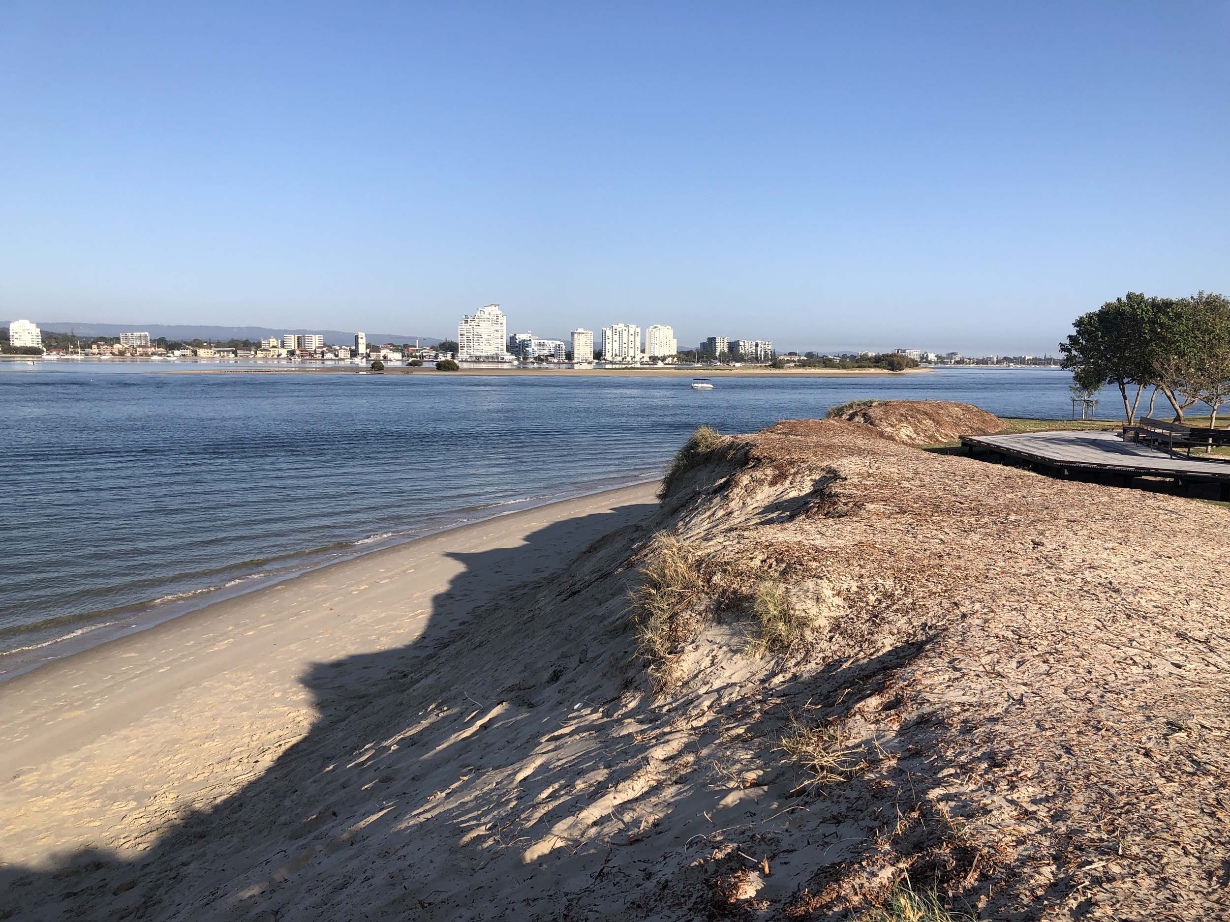 Continued through the Southport YC, along the jetties at Marina Mirage, then around the edge of the Seaworld carpark, then continued along the shared path to The Spit.