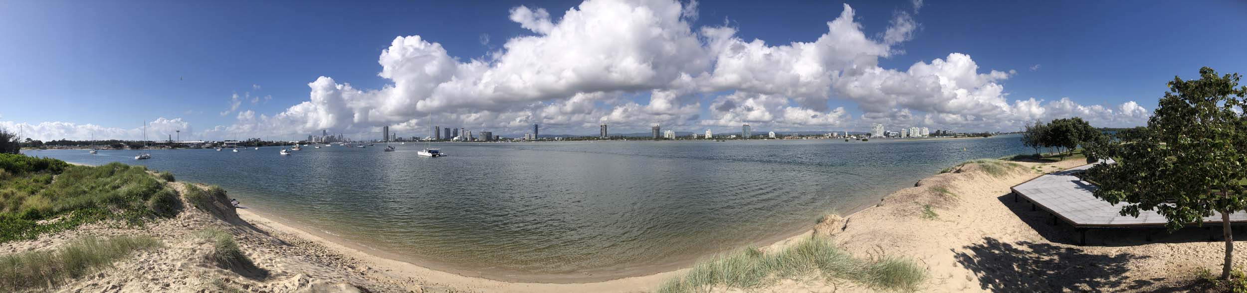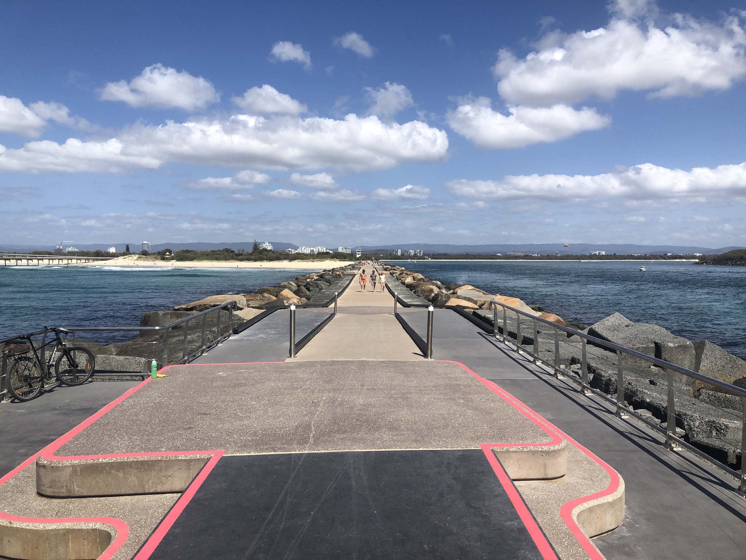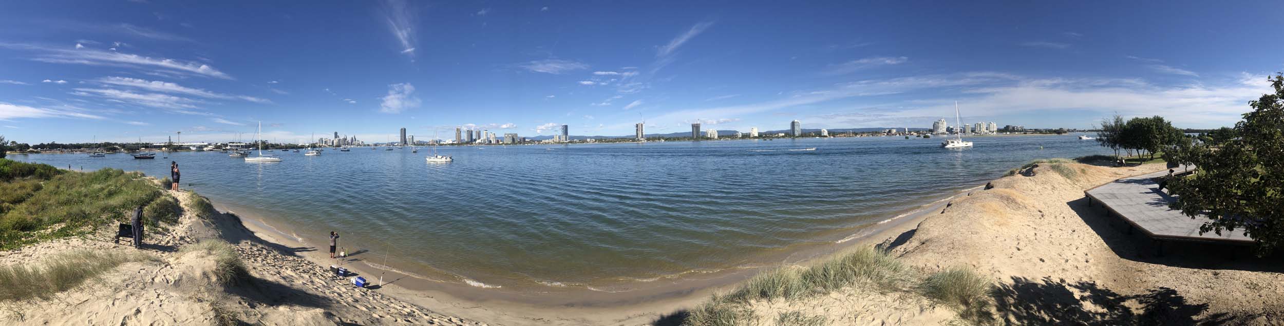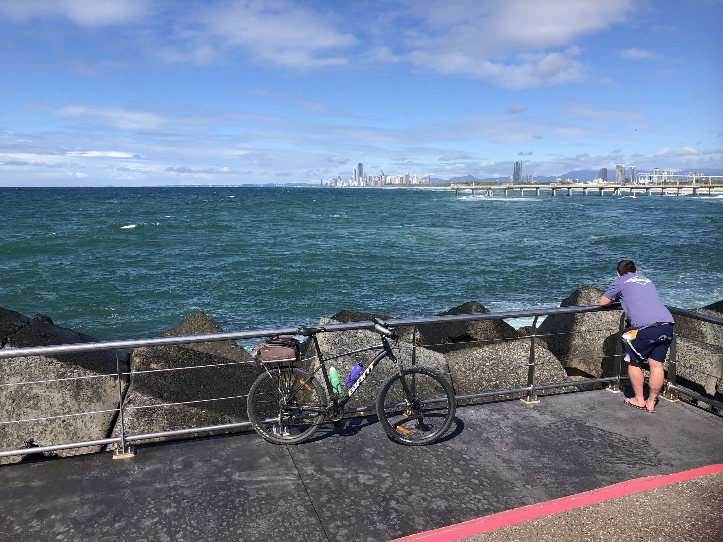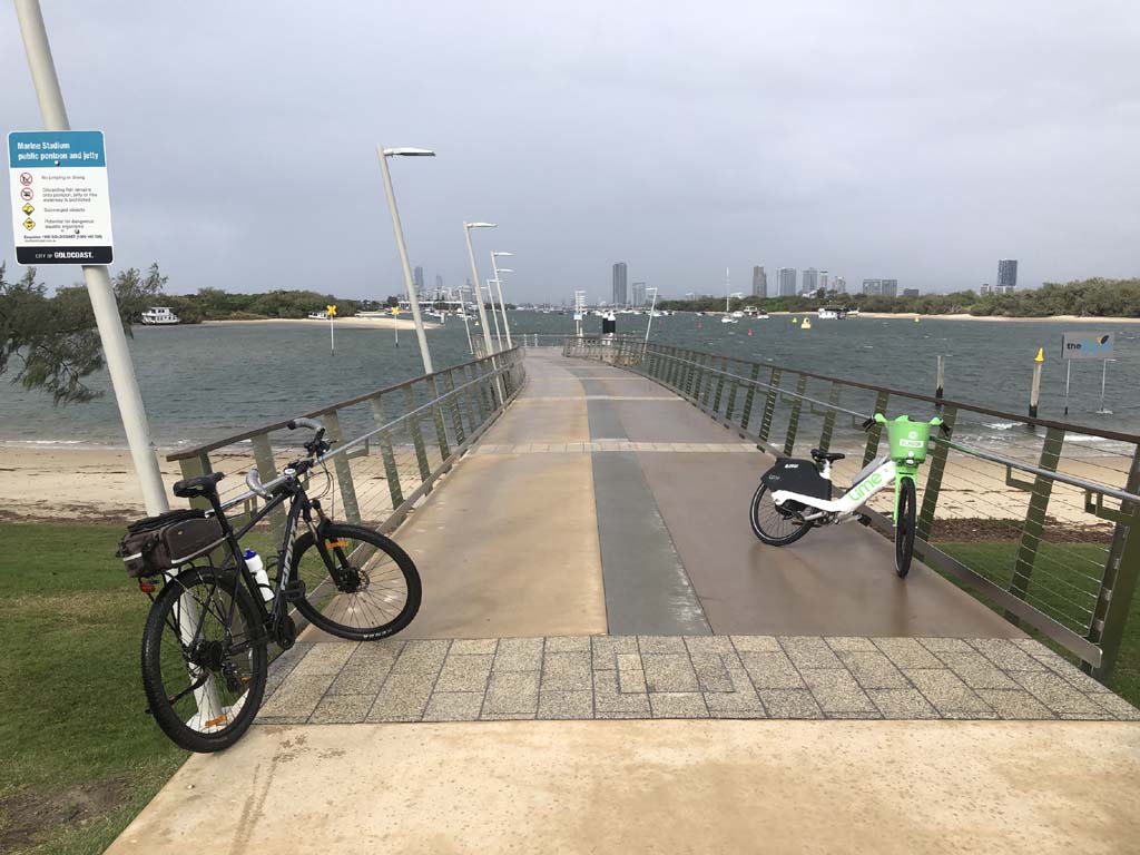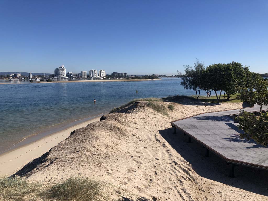 Continued through the Southport YC, along the jetties at Marina Mirage, then around the edge of the Seaworld carpark, then continued along the shared path to The Spit.