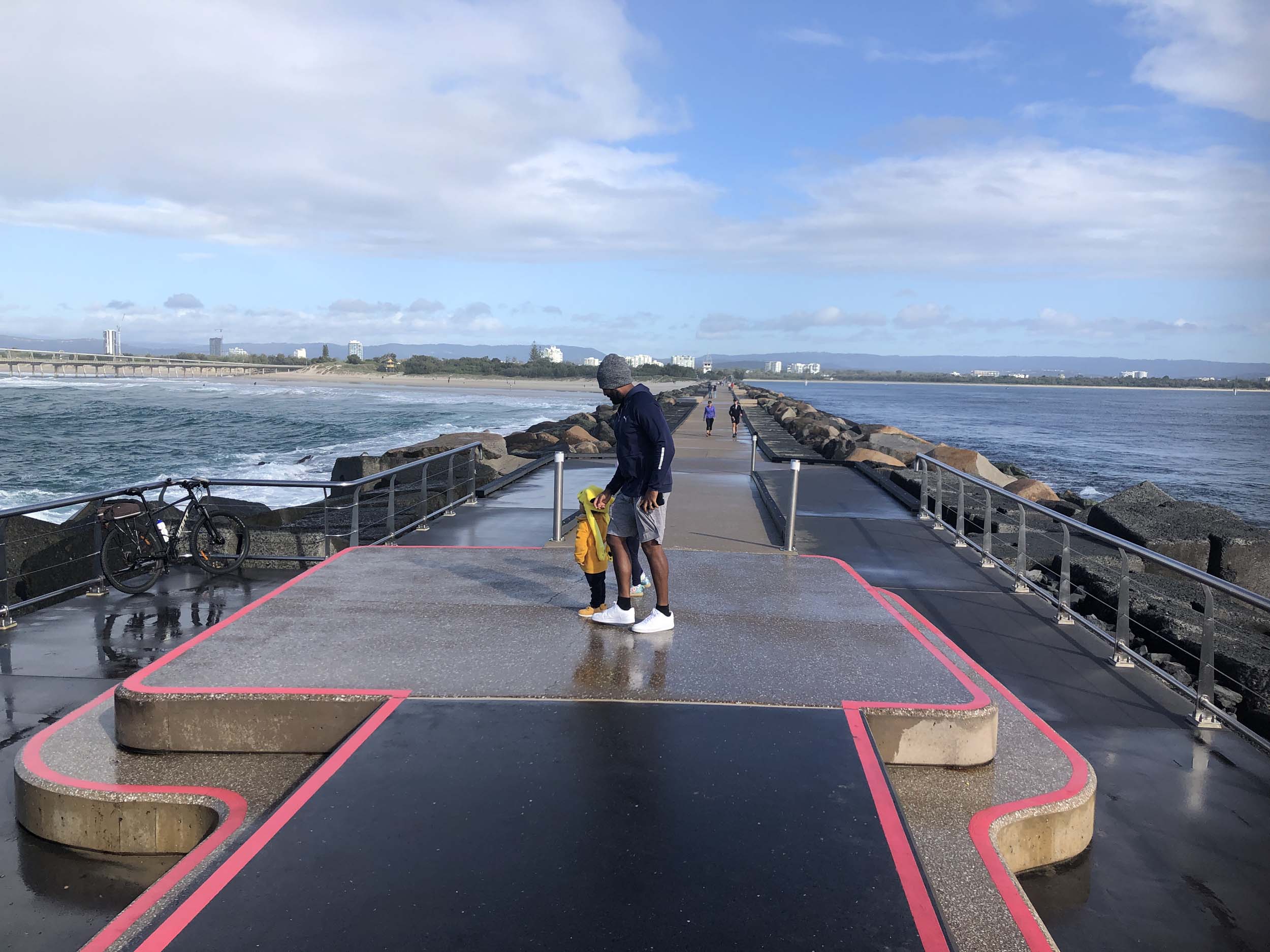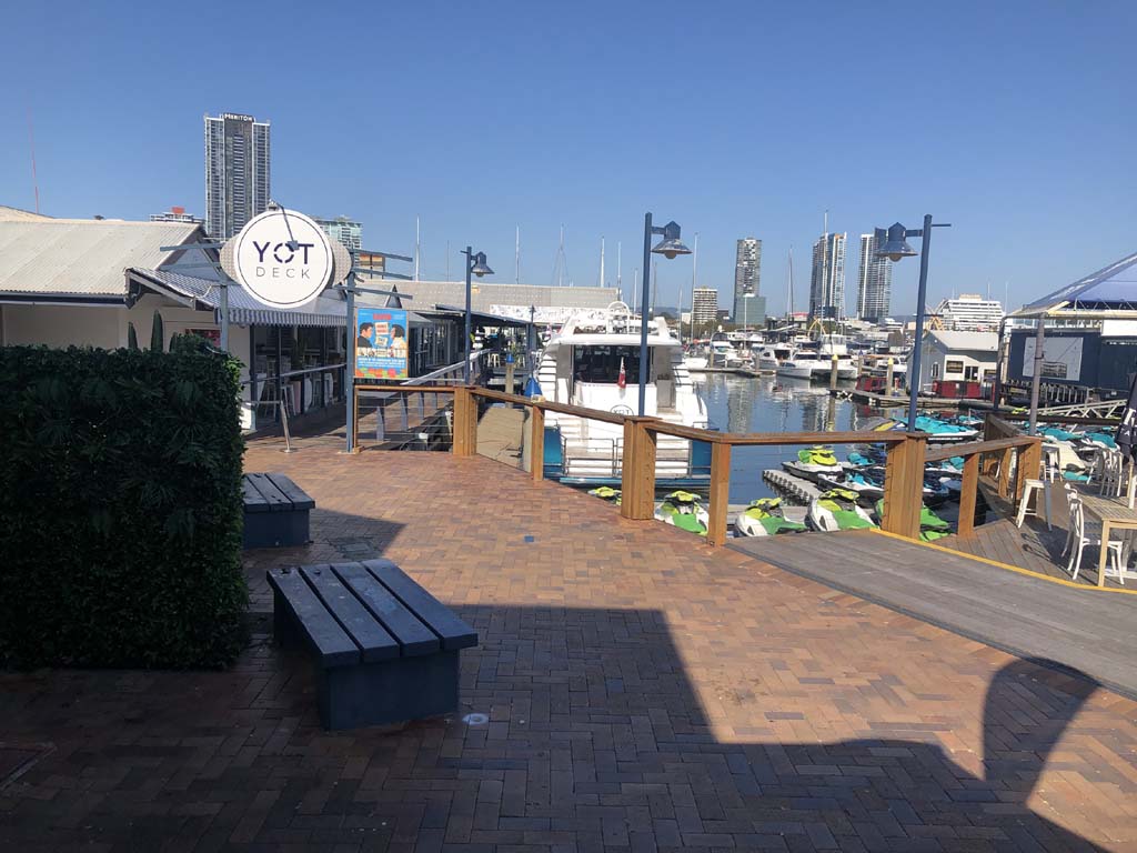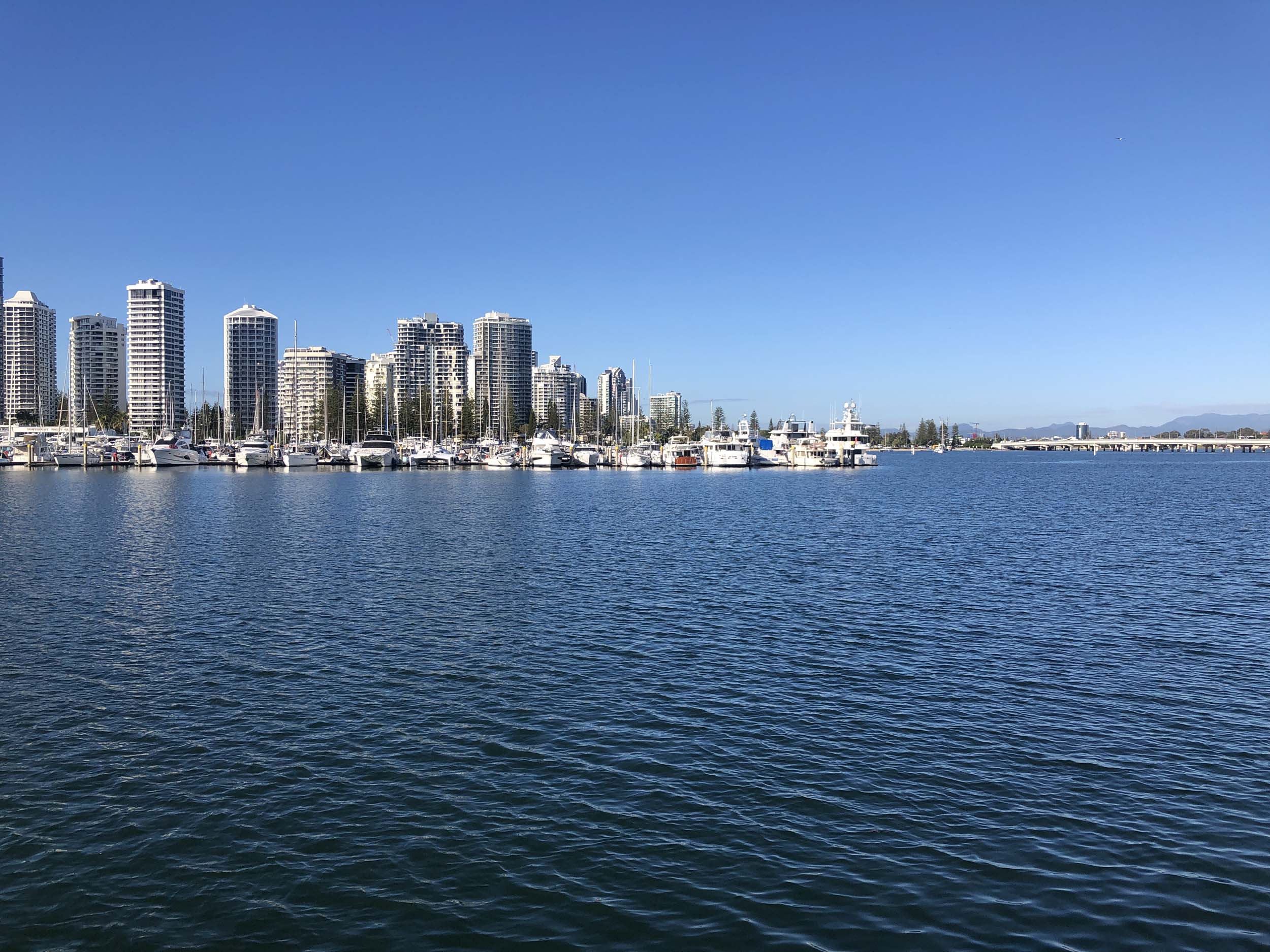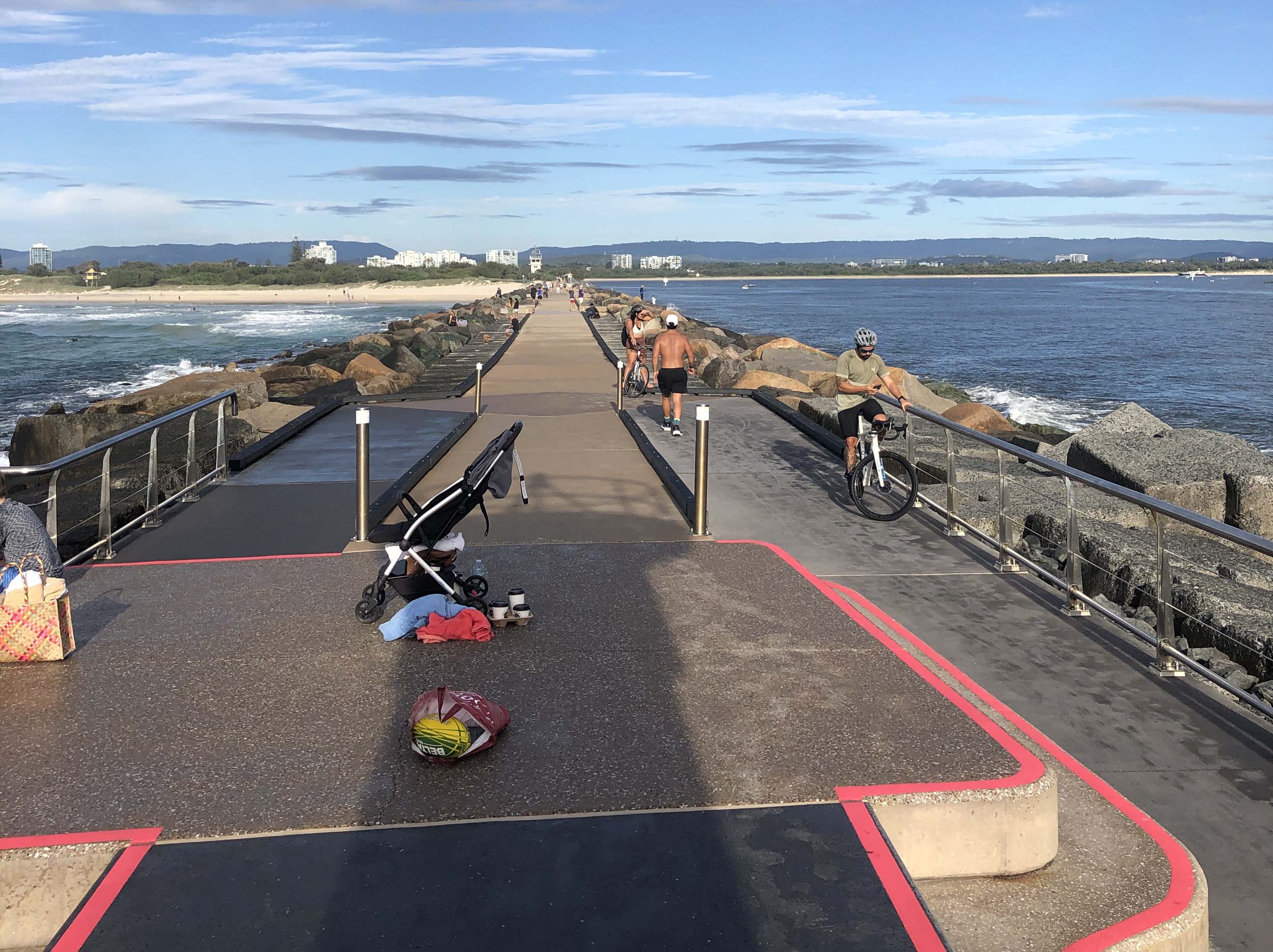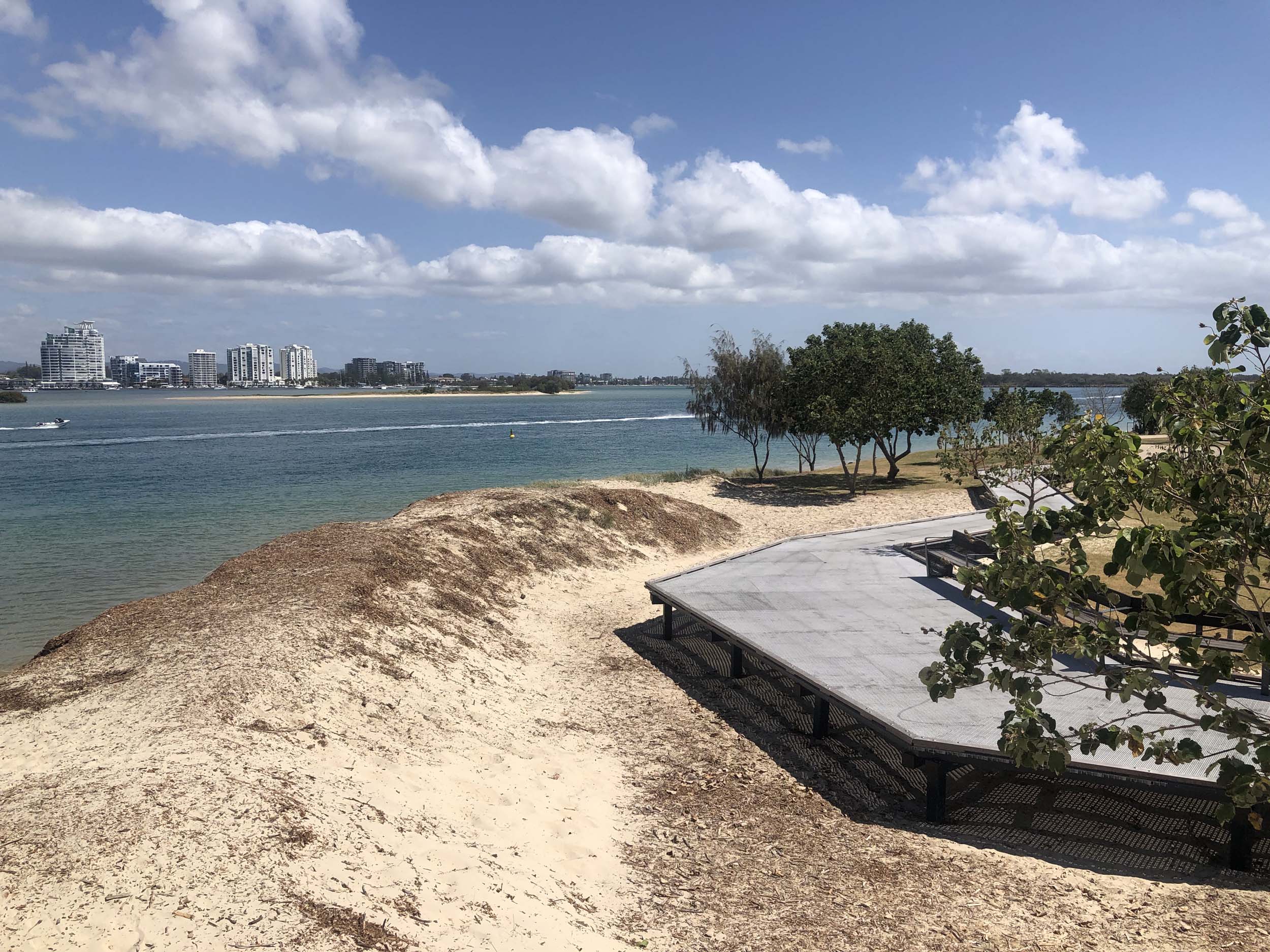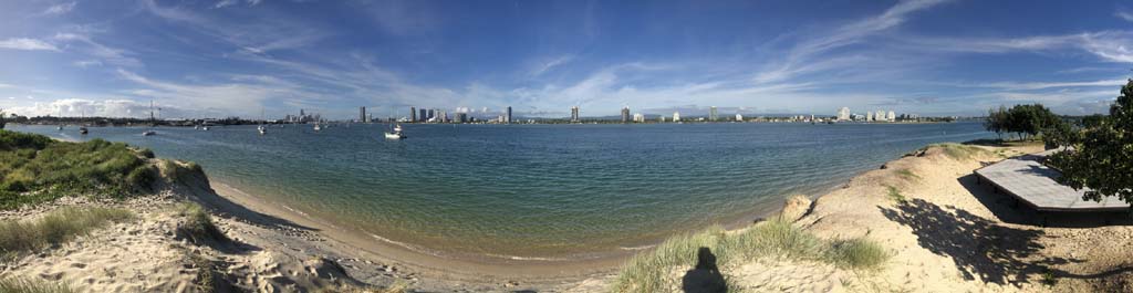 Continued through the Southport YC, along the jetties at Marina Mirage, then around the edge of the Seaworld carpark, then continued along the shared path to The Spit.