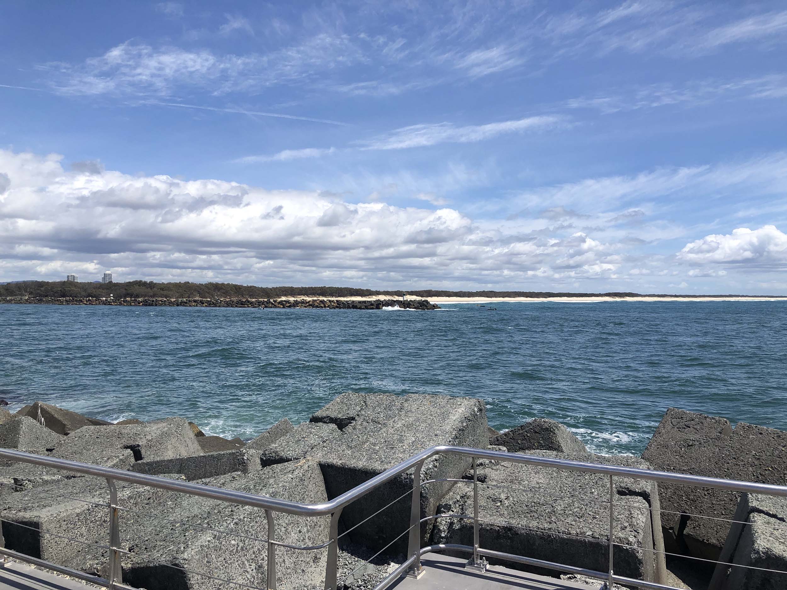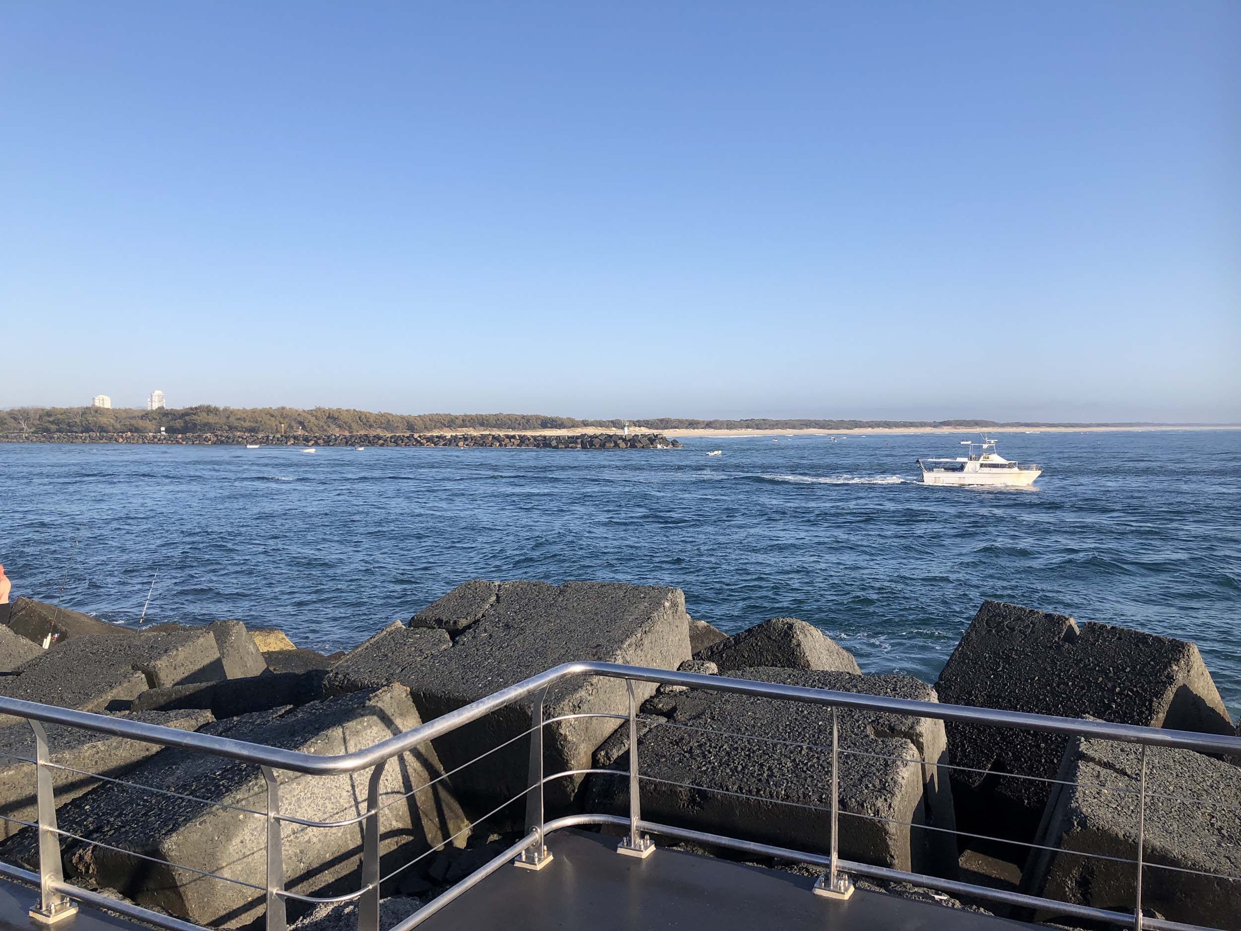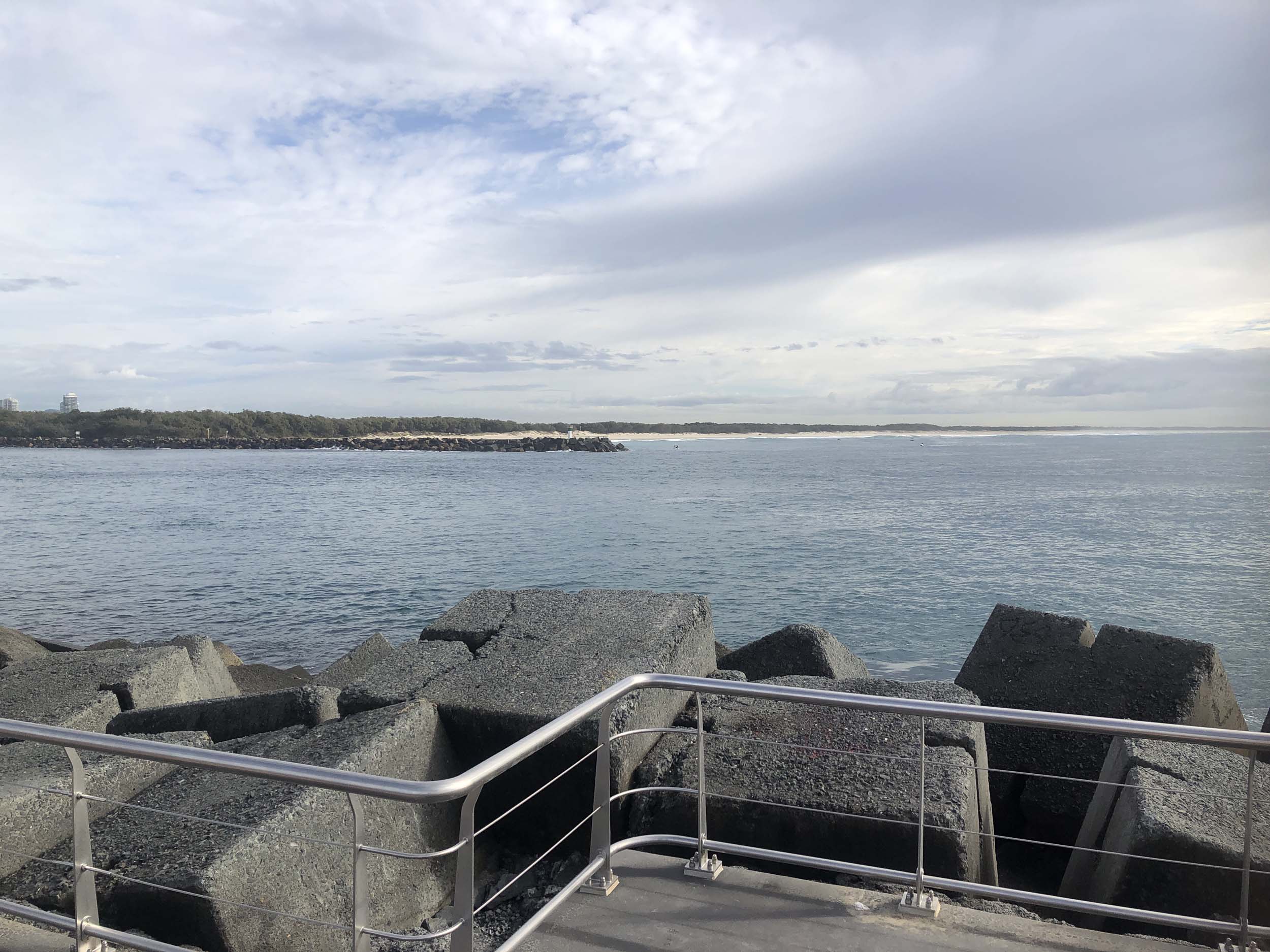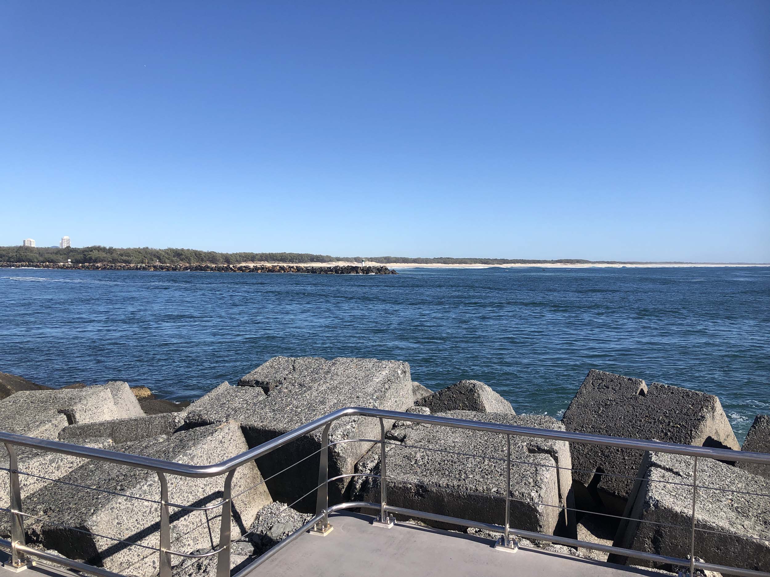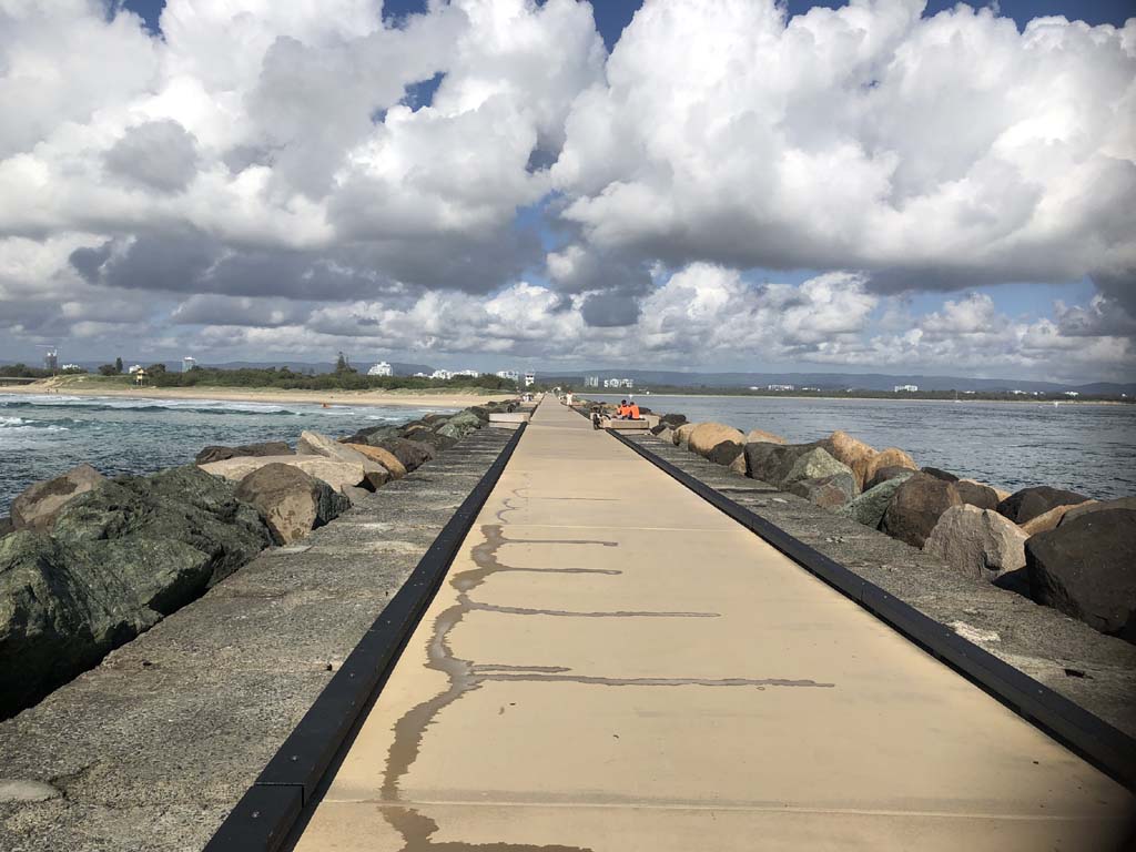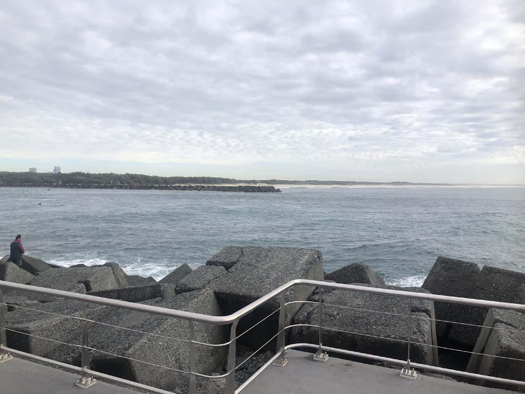 Over the Bridge at Narrowneck then along the Shared Path, towards The Seaway/Spit, via the jetties of Marina Mirage, a lap of the Seaworld Carpark, a lap of the Muriel Henchman carpark and finally made it to the tip of the Seawall/Spit. Stopped and took my photos and ate my banana, then rode to the tip of the Moondarewa Spit, took more photos.