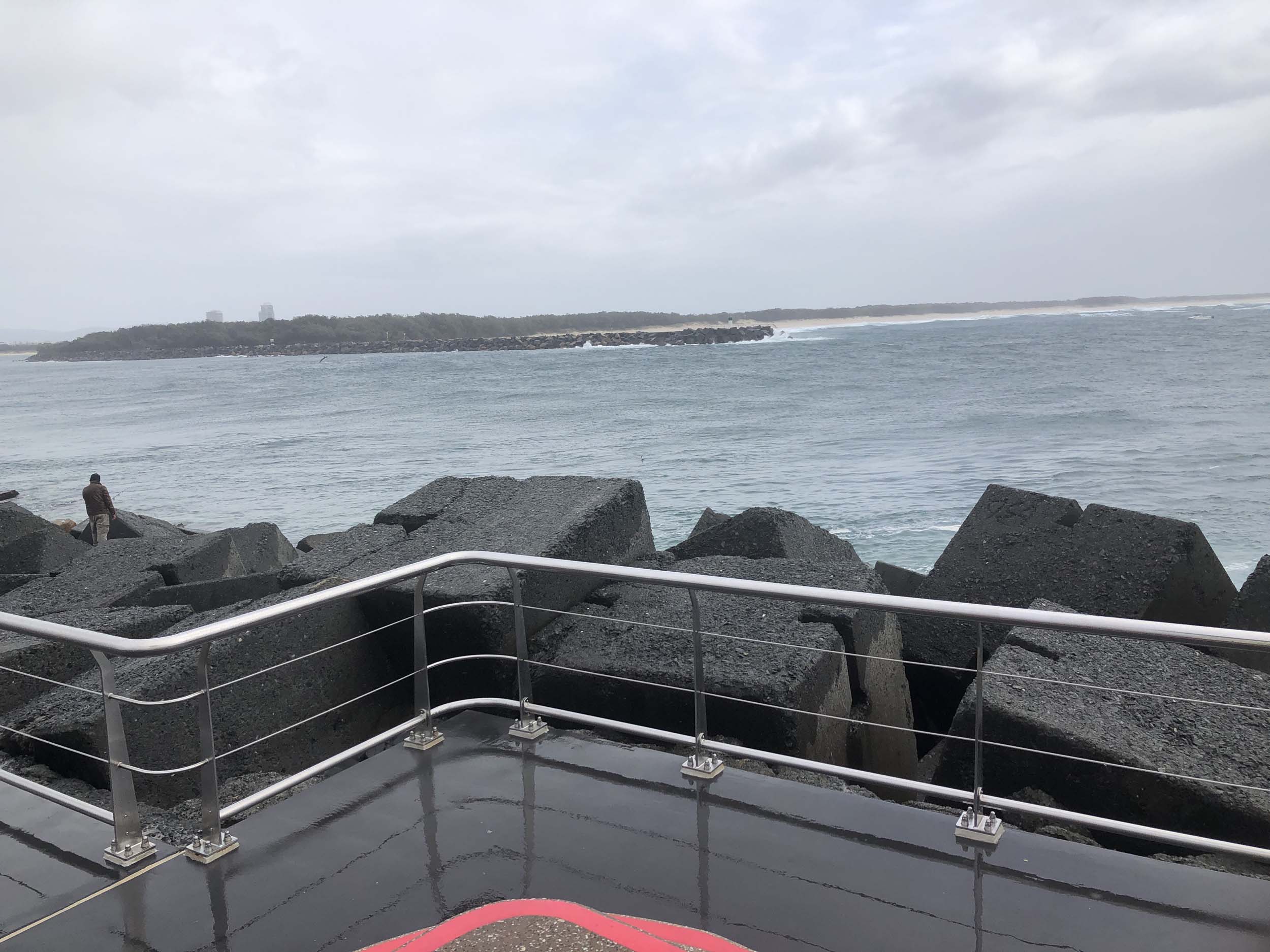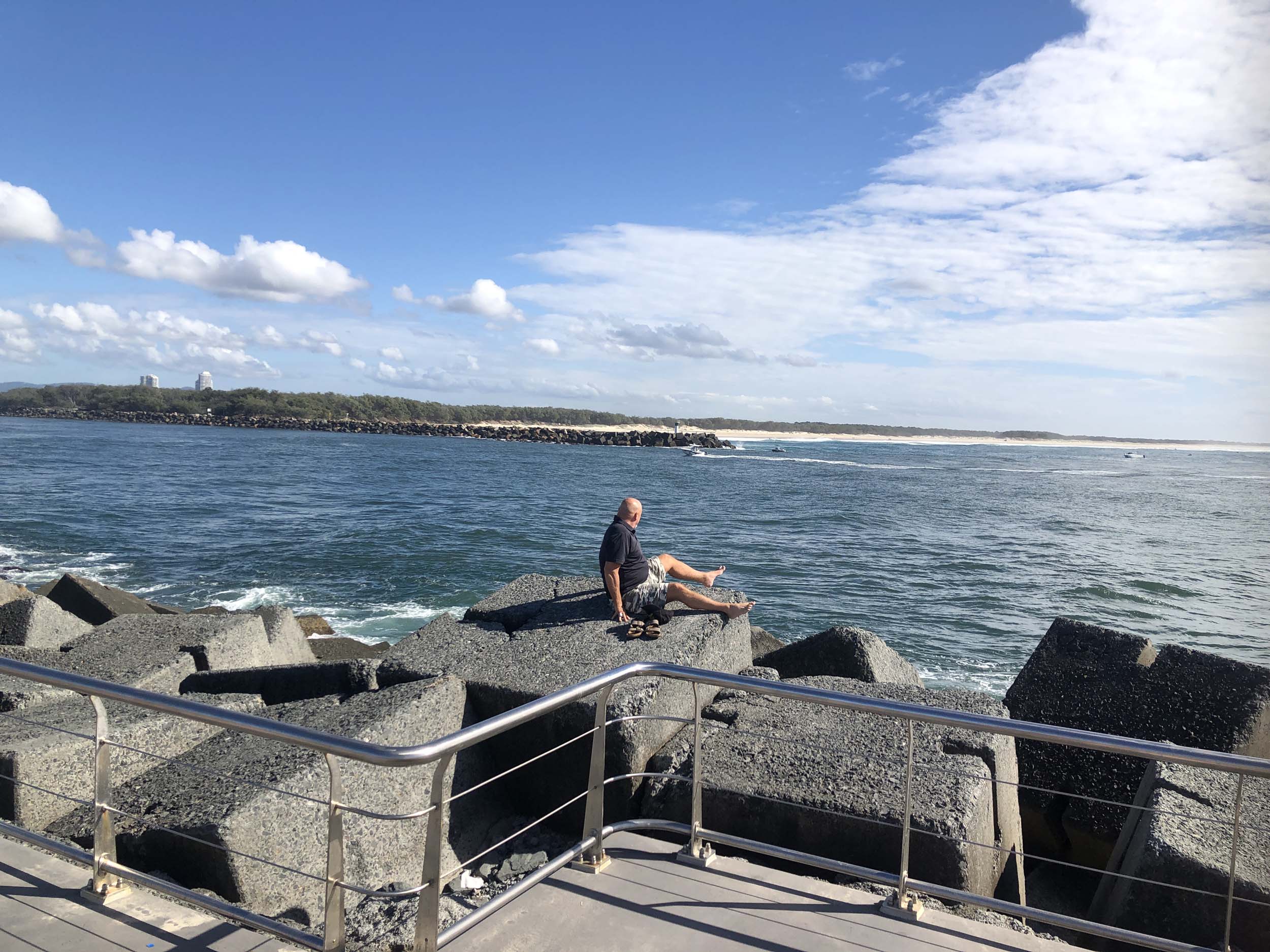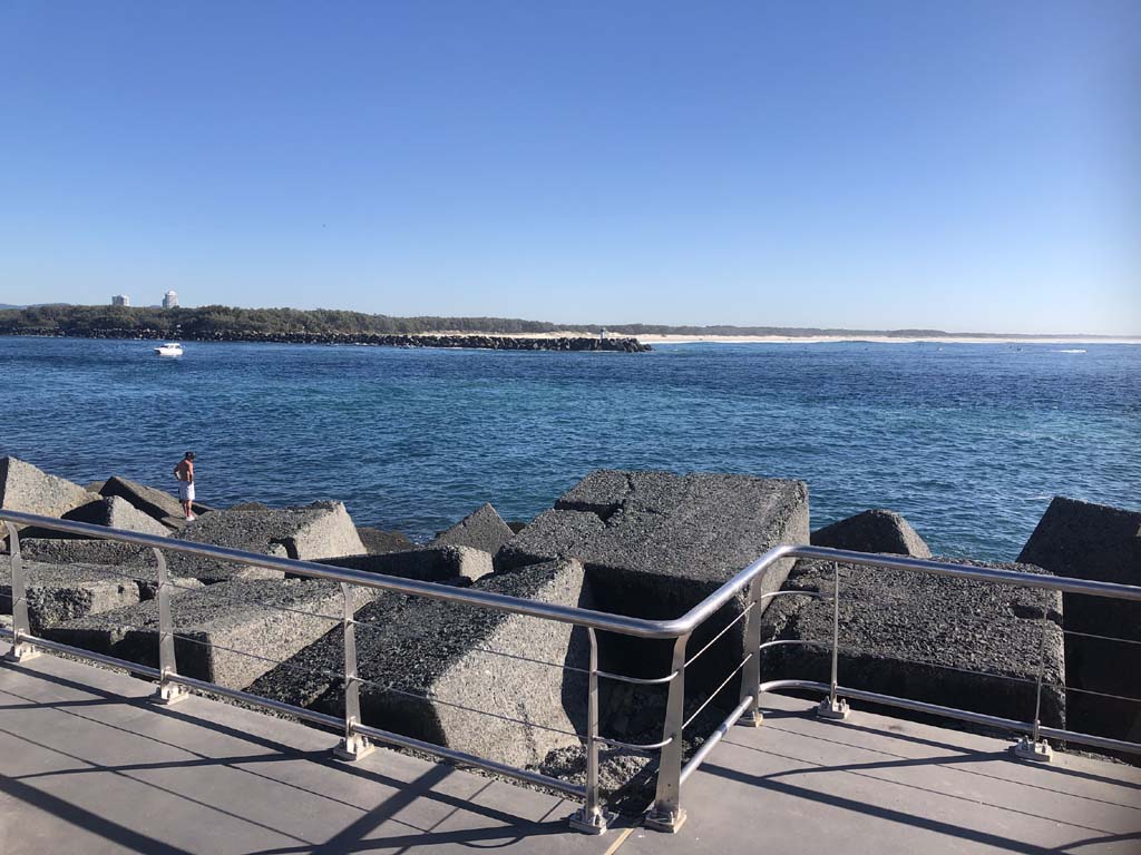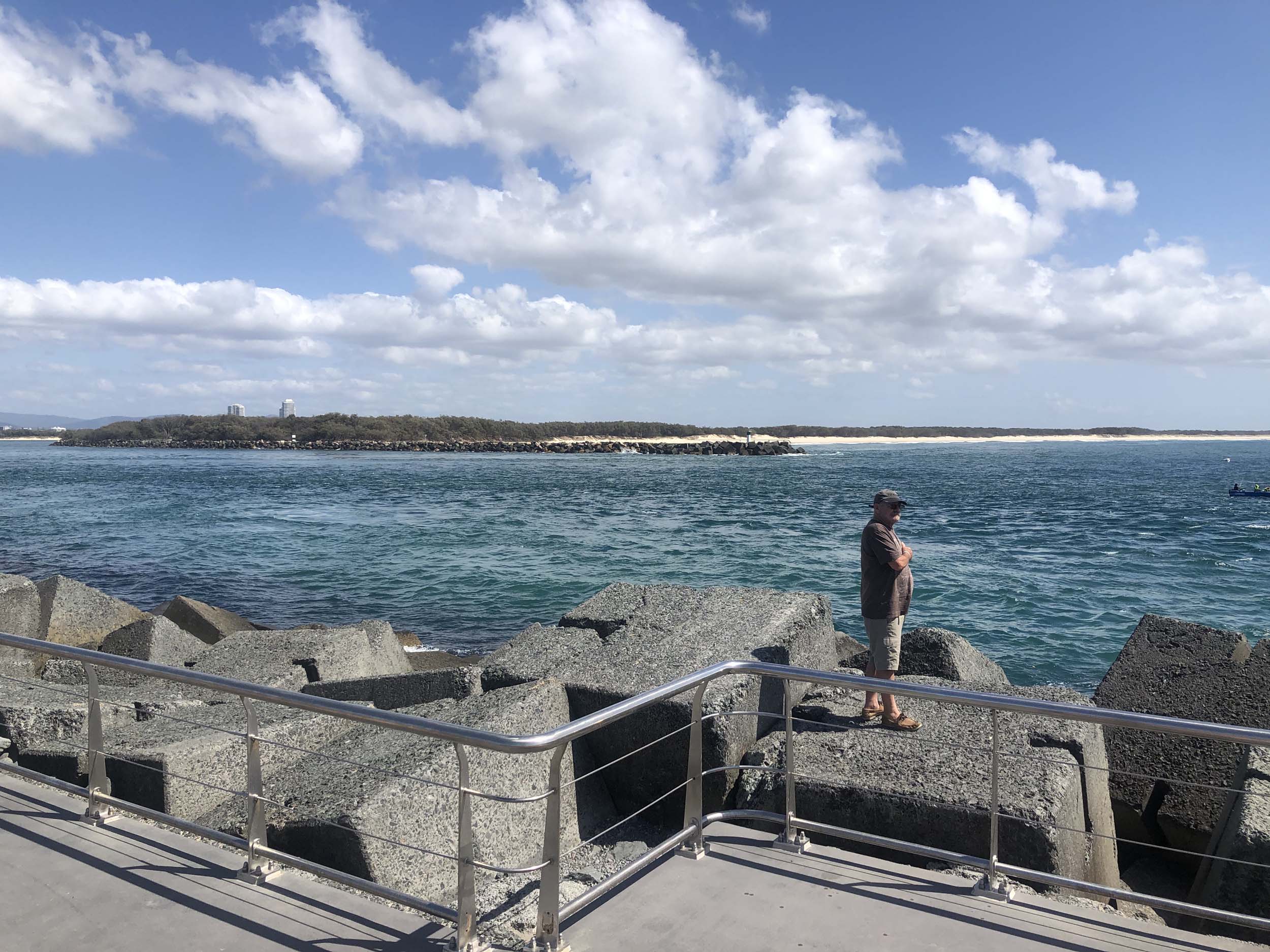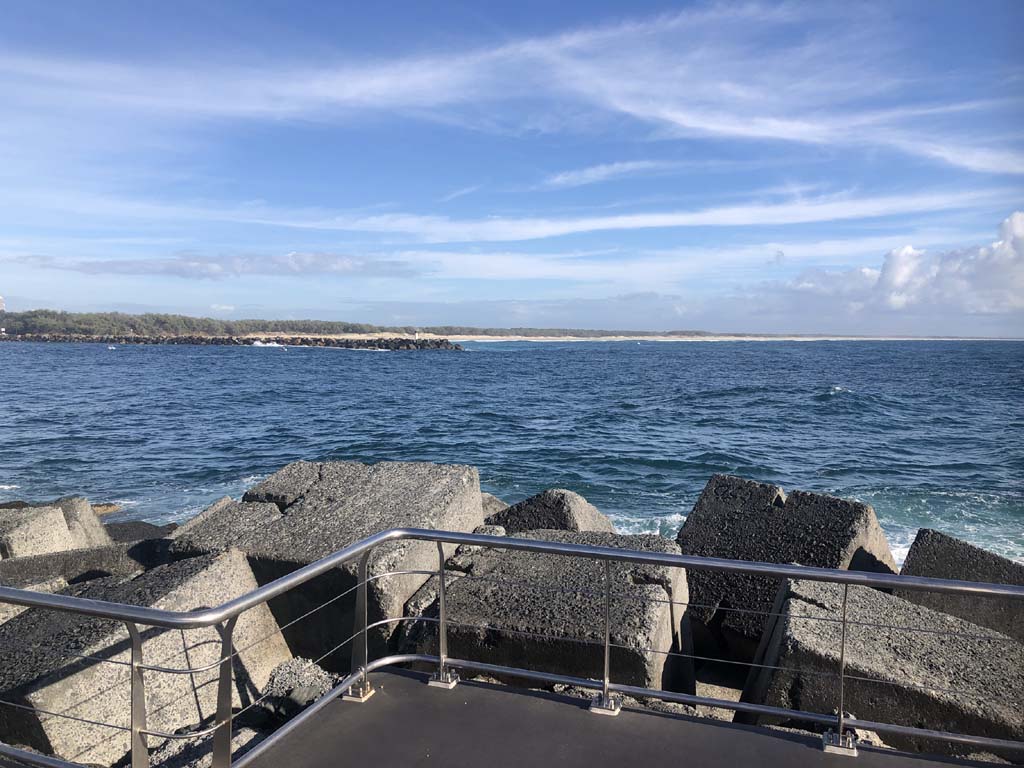 Over the Bridge at Narrowneck then along the Shared Path, towards The Seaway/Spit, via the jetties of Marina Mirage, a lap of the Seaworld Carpark, a lap of the Muriel Henchman carpark and finally made it to the tip of the Seawall/Spit. Stopped and took my photos and ate my banana, then rode to the tip of the Moondarewa Spit, took more photos.
