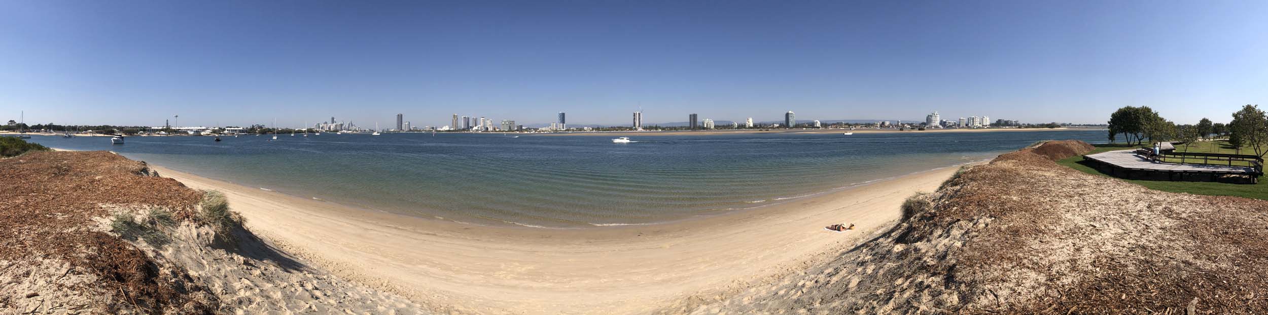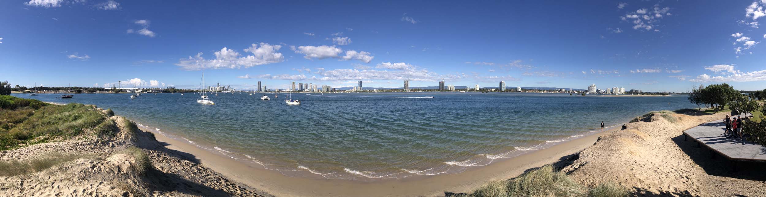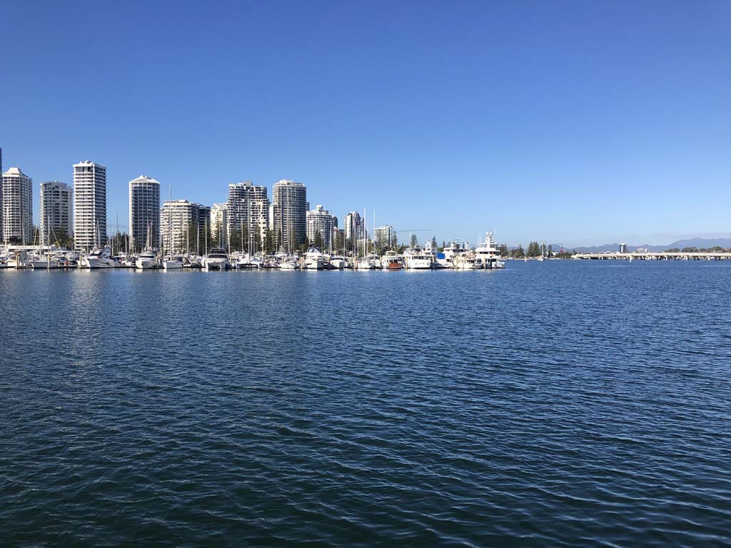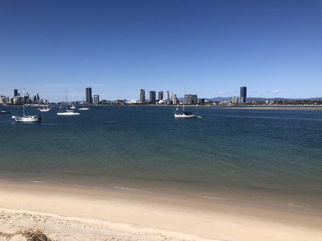 Continued through the Southport YC, along the jetties at Marina Mirage, around the edge of the Seaworld carpark, continuing along the shared path to The Spit.