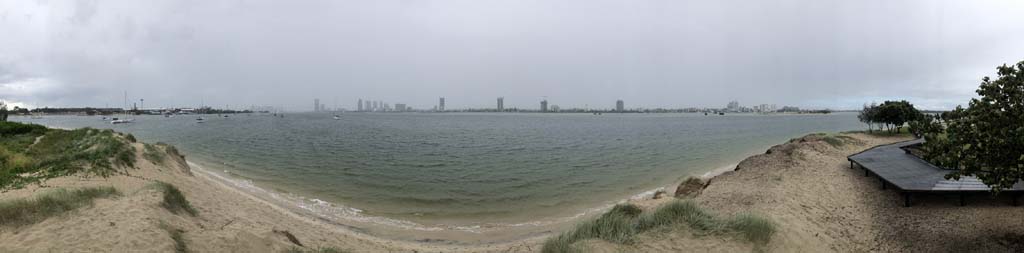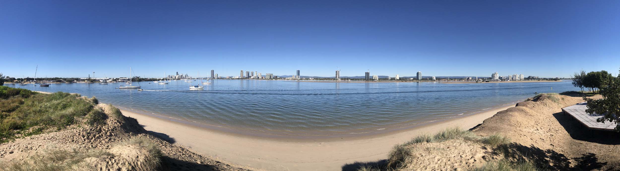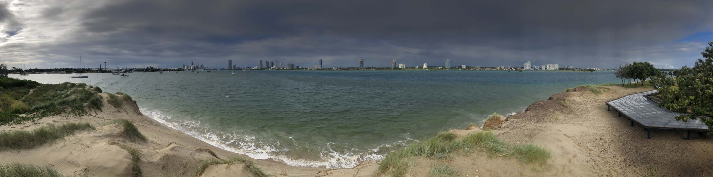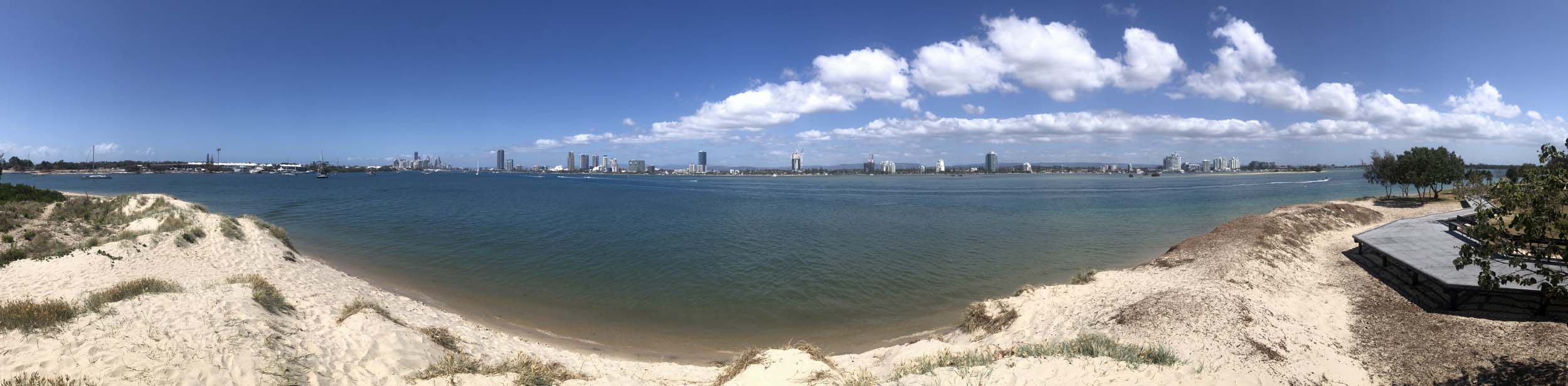Continued through the Southport YC, along the jetties at Marina Mirage, around the edge of the Seaworld carpark, continuing along the shared path to The Spit.
