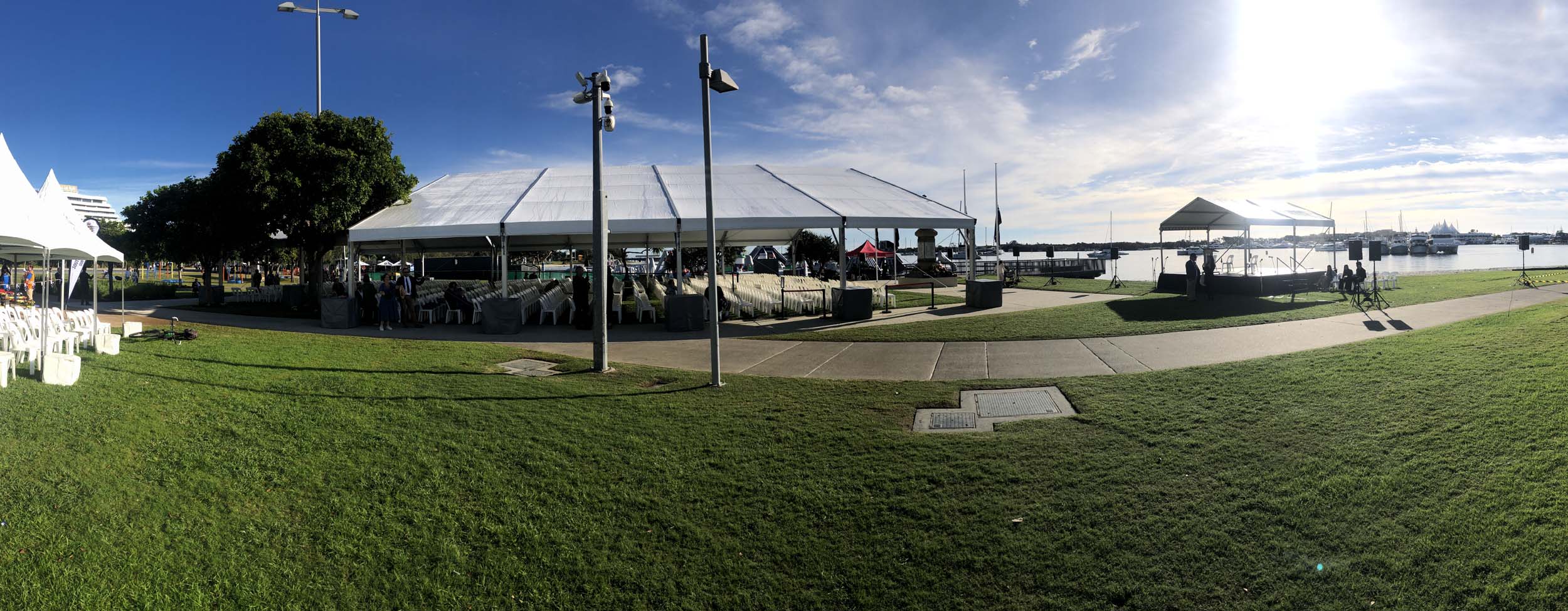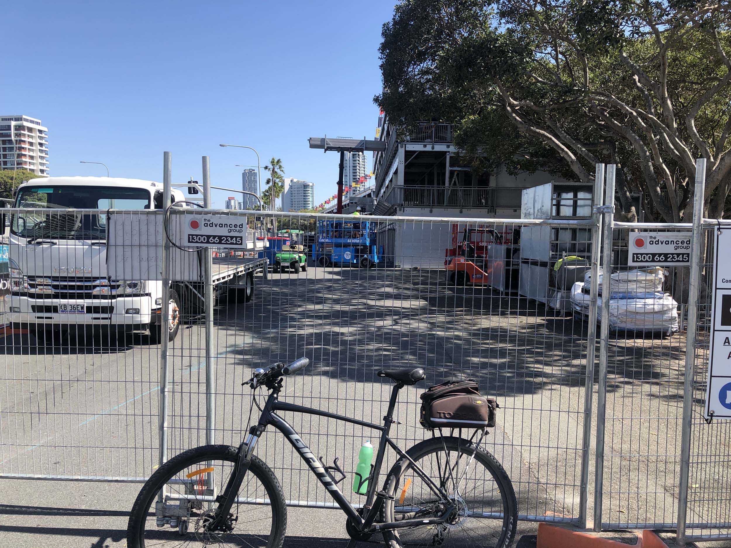 I left home about 6:13am, and rode Northward, to my Lands End turnaround point. Continued through the Broadwater Parklands over the Sundale Bridge and turned left and stopped at the Super Yacht jetty. Venus (Mrs Steve Jobs - Apple) has now left the jetty but Clive Palmer has docked his $40m Super yacht there. Continued through the Southport YC, along the jetties at Marina Mirage and then around the edge of the Seaworld carpark, stopped and took a photo, then continued along the shared path to The Spit. They are setting up for a music festival this Saturday but I can't find any info on that.