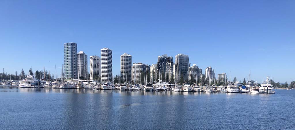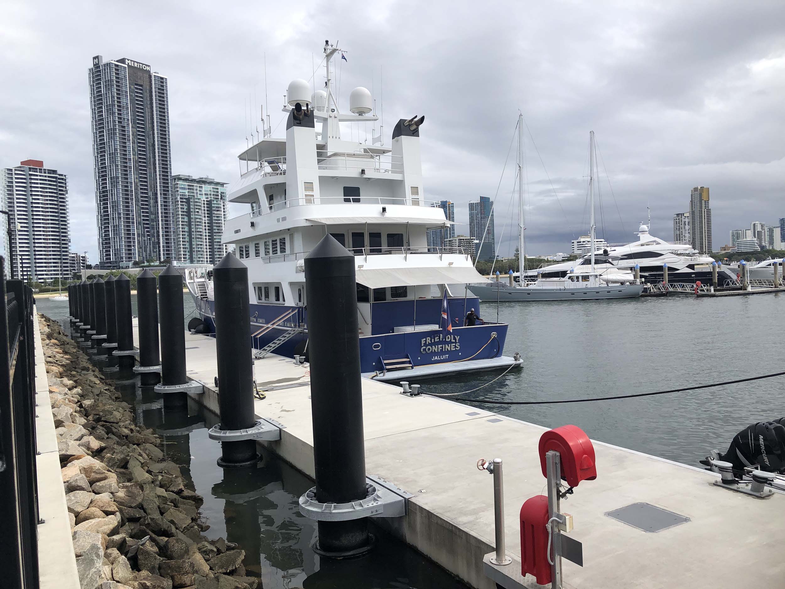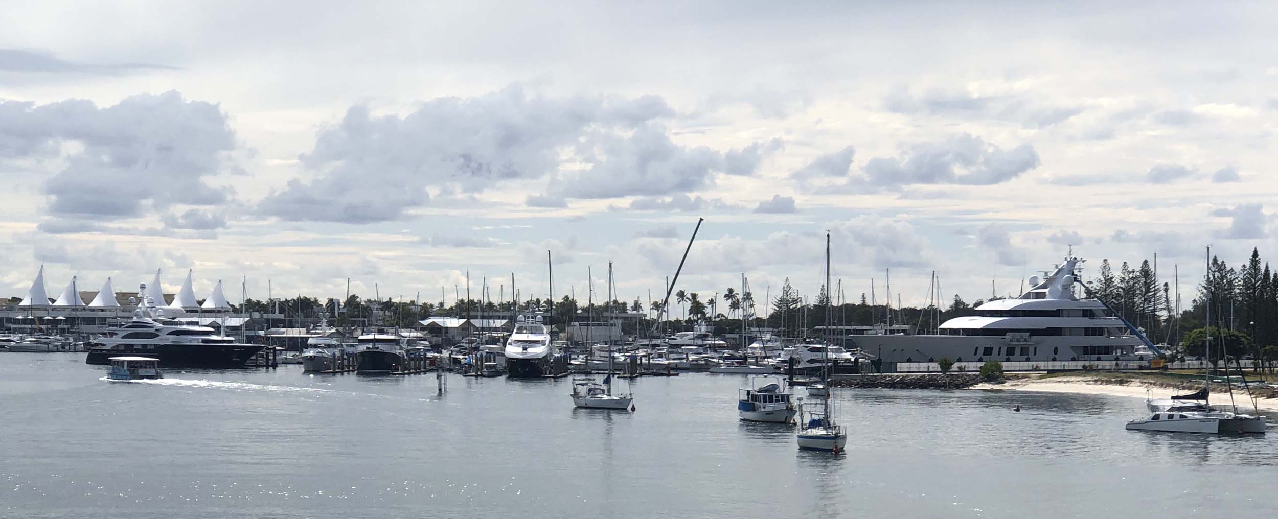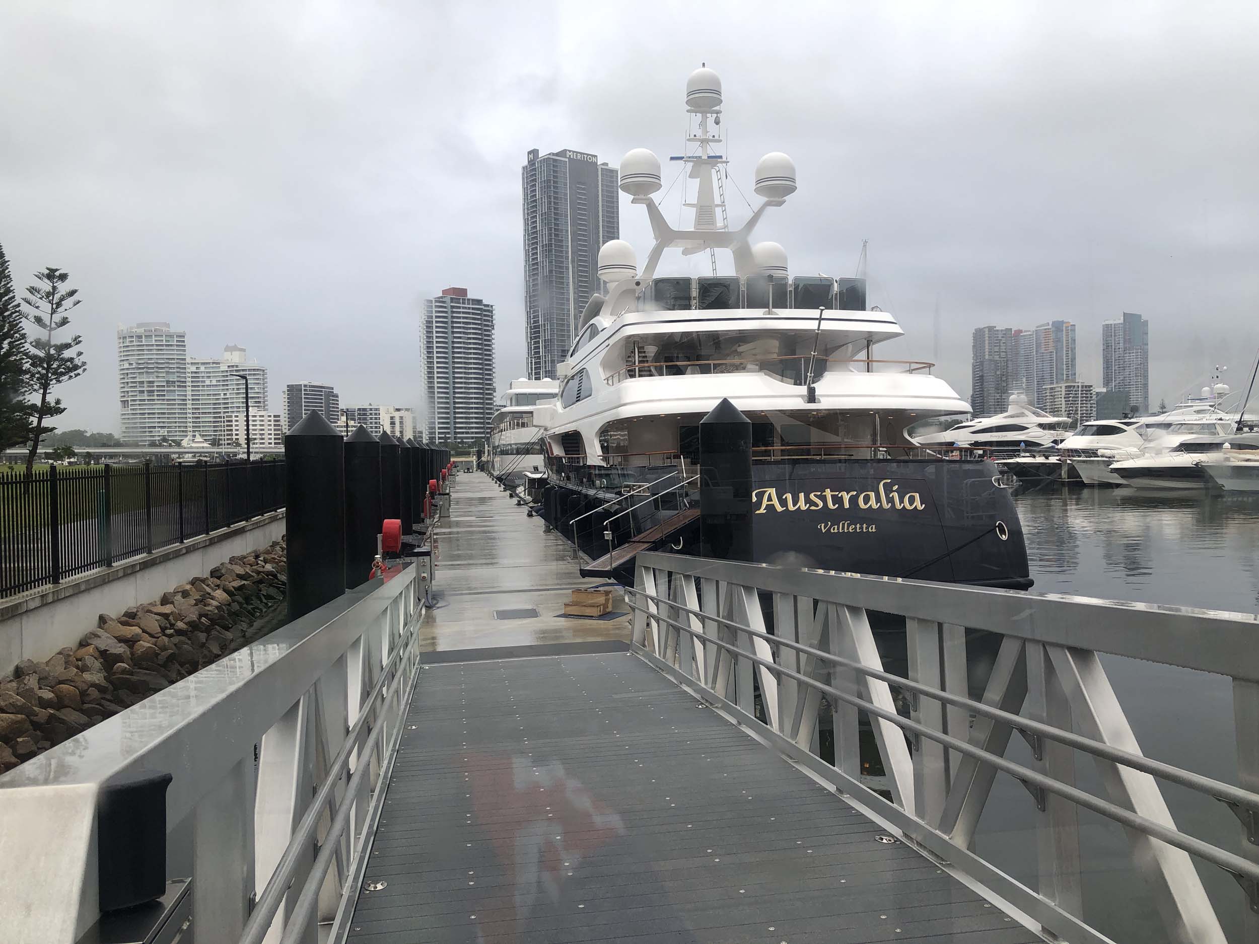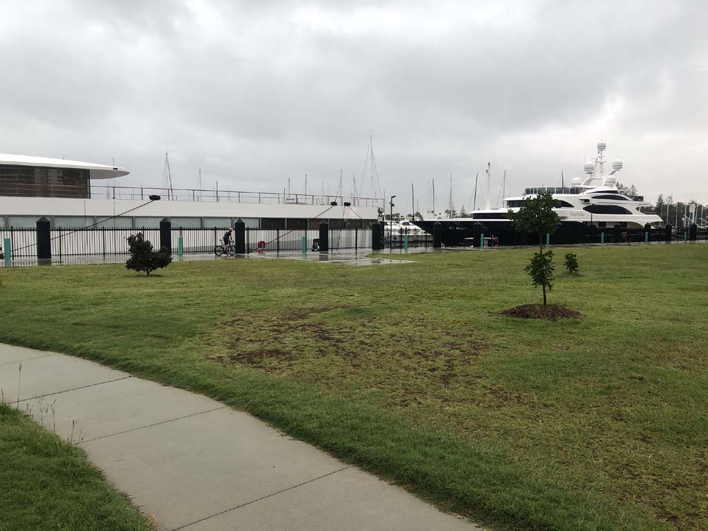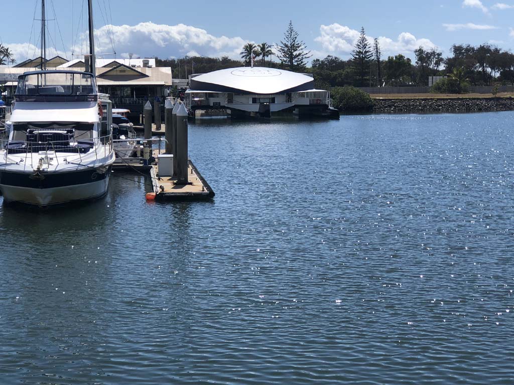 I rode Northward, to my Lands End/Biggera Creek turnaround point. Continued through the Broadwater Parklands, then over the Sundale Bridge and turned left and stopped at the Super Yacht jetty. No boats moored there.