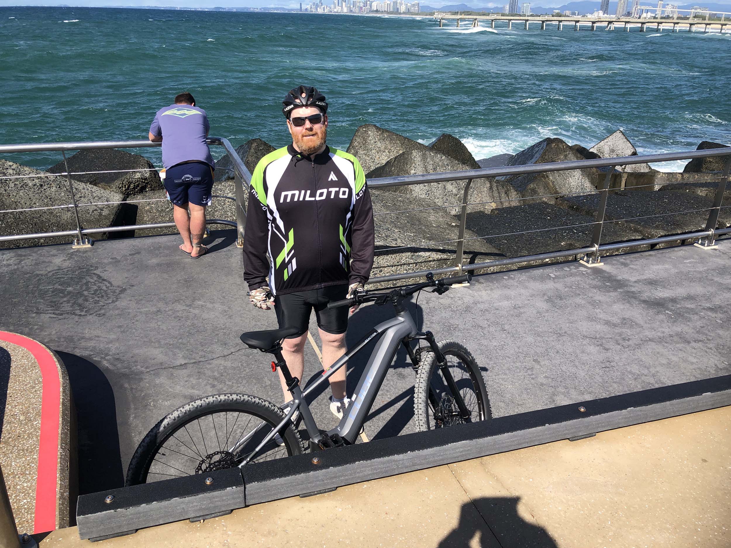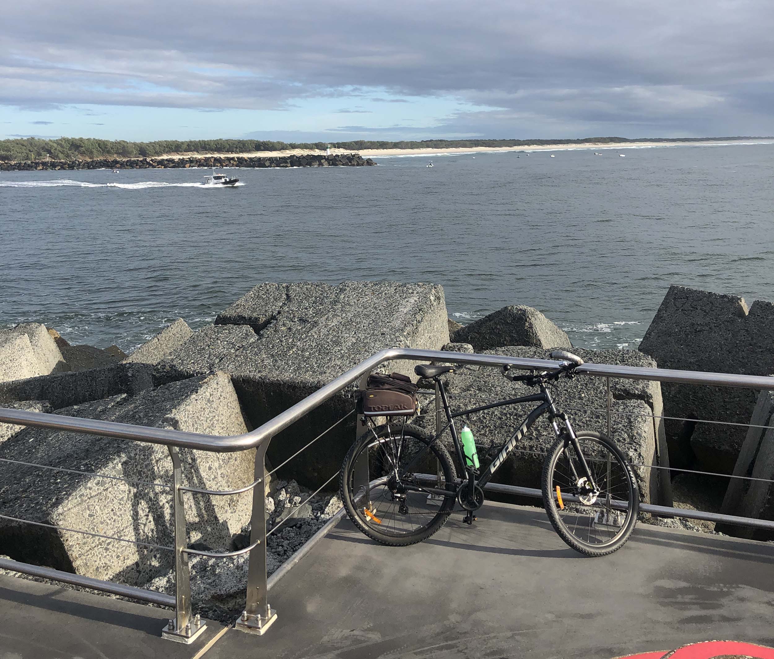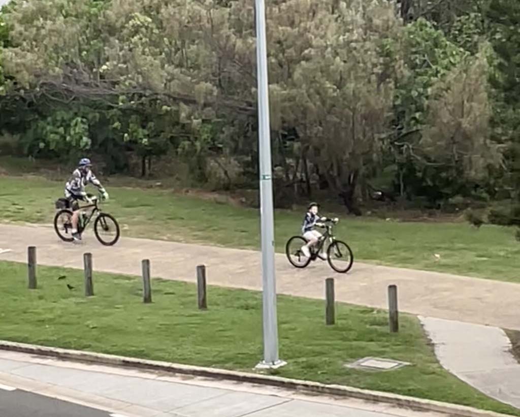 This ride, we concentrated on emergency braking. Mase handled this very well. The 1st emergency braking, Mase stopped on a sixpence, while a larger gentleman (me) had to swerve to miss him. All good. We also concentrated on Mase getting used to changing his front gears. We will concentrate of his rear gears next ride. As we rode back to Biggera Creek, Mase liked changing the front gears into an easier gear when riding into the wind.