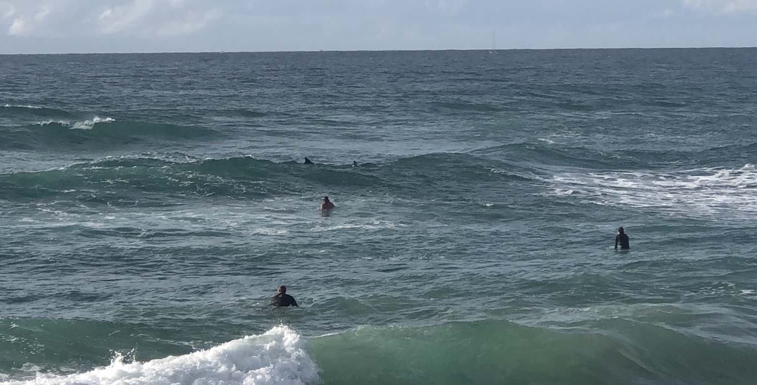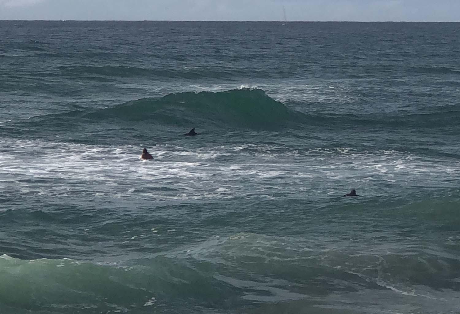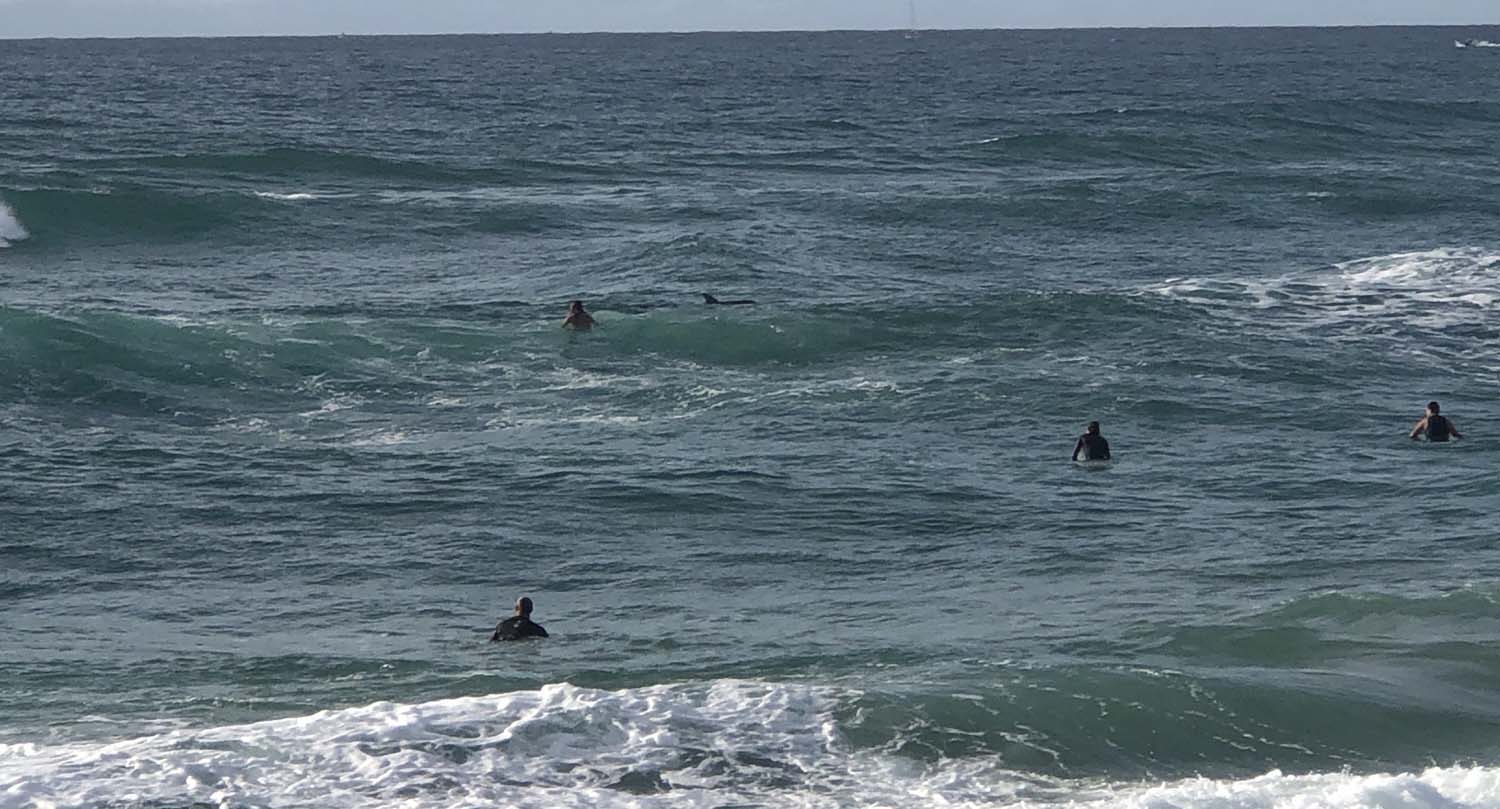 Watching the 2 dolphins happily playing with a couple of boardriders.. Unbelieveable.
