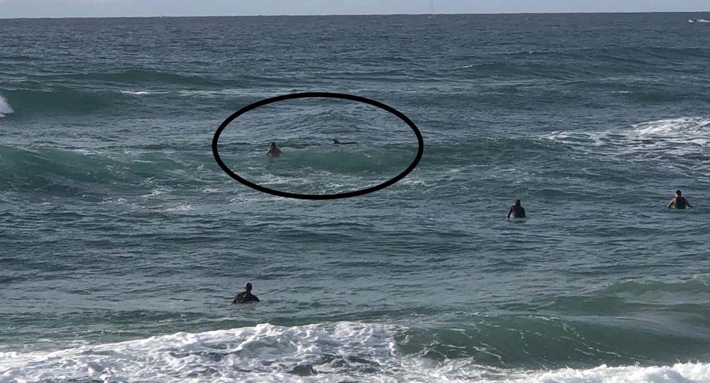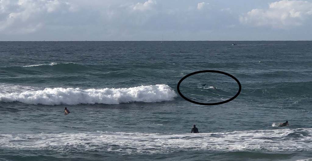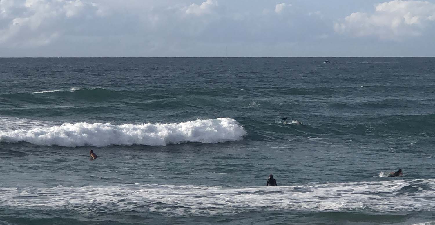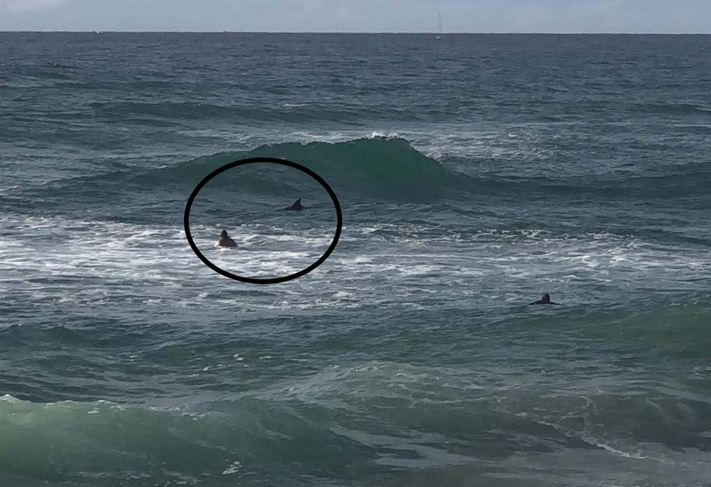 Watching the 2 dolphins happily playing with a couple of boardriders.. Unbelieveable.