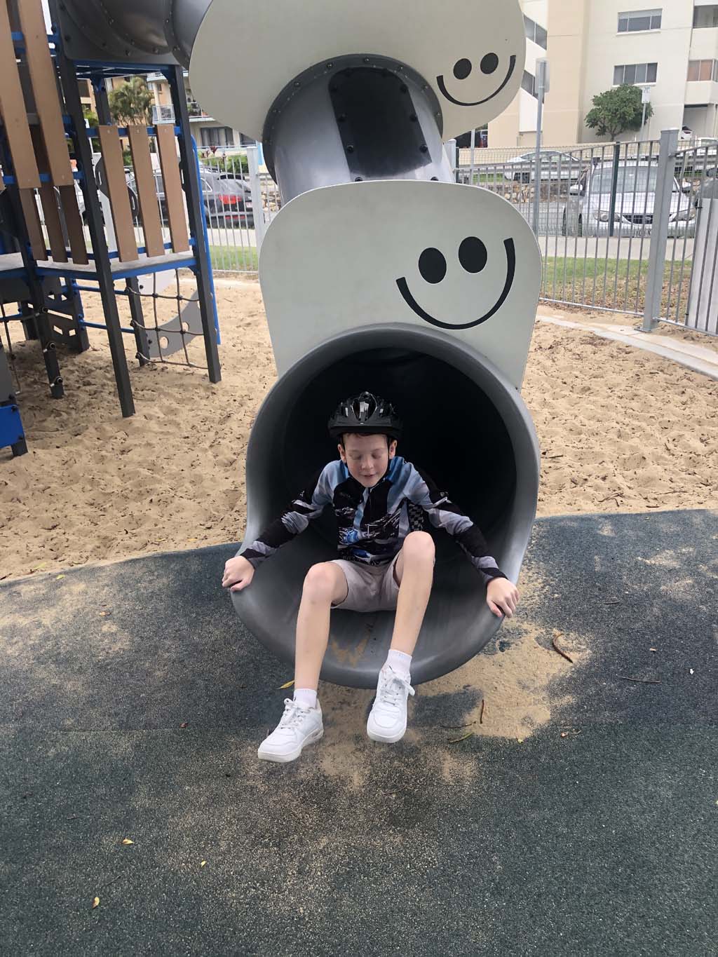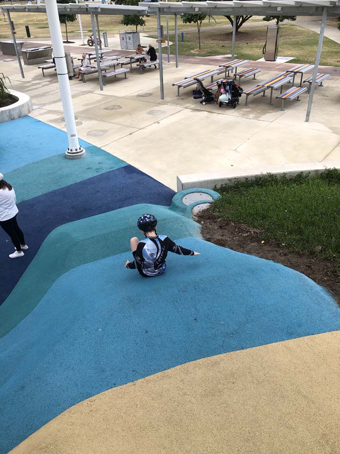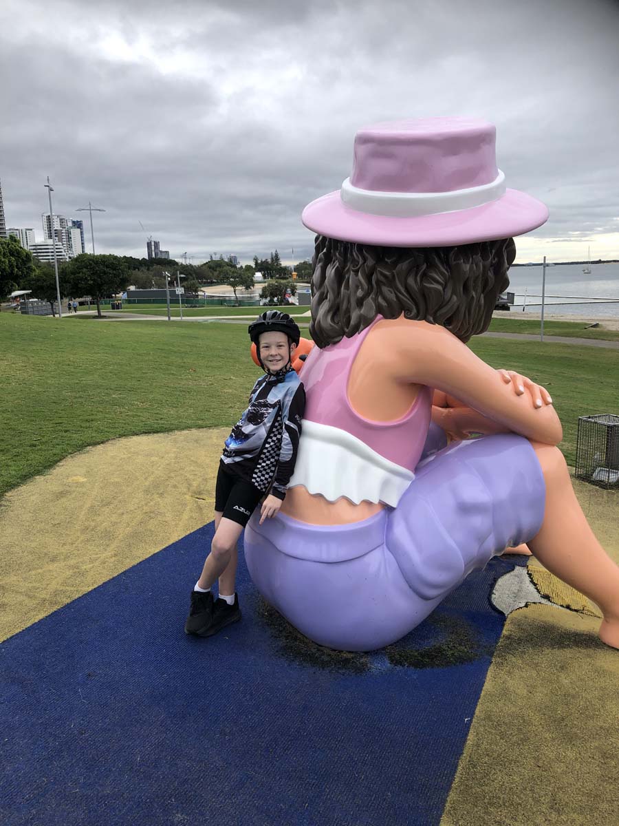 We stopped at the BIG Playground just past 'our' caravan park, Mase again tested various components... They passed. We continued to the Sundale Bridge before heading back home, via riding through the caravan park..