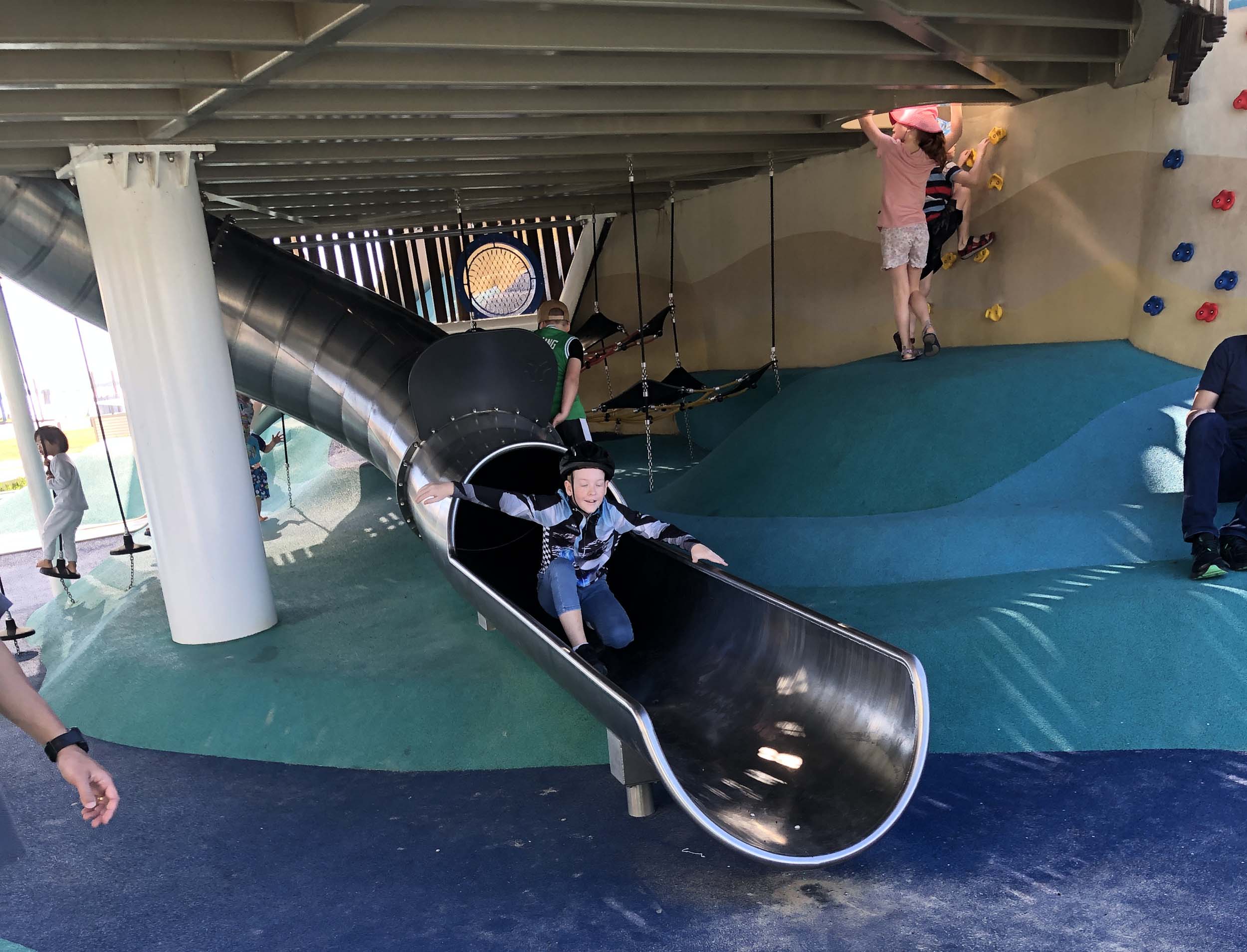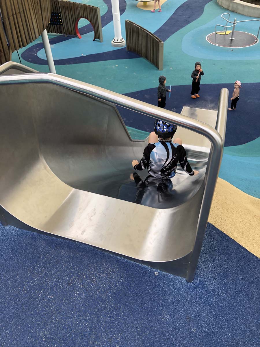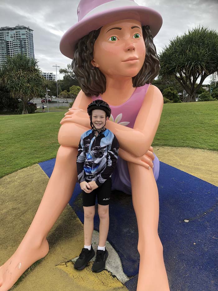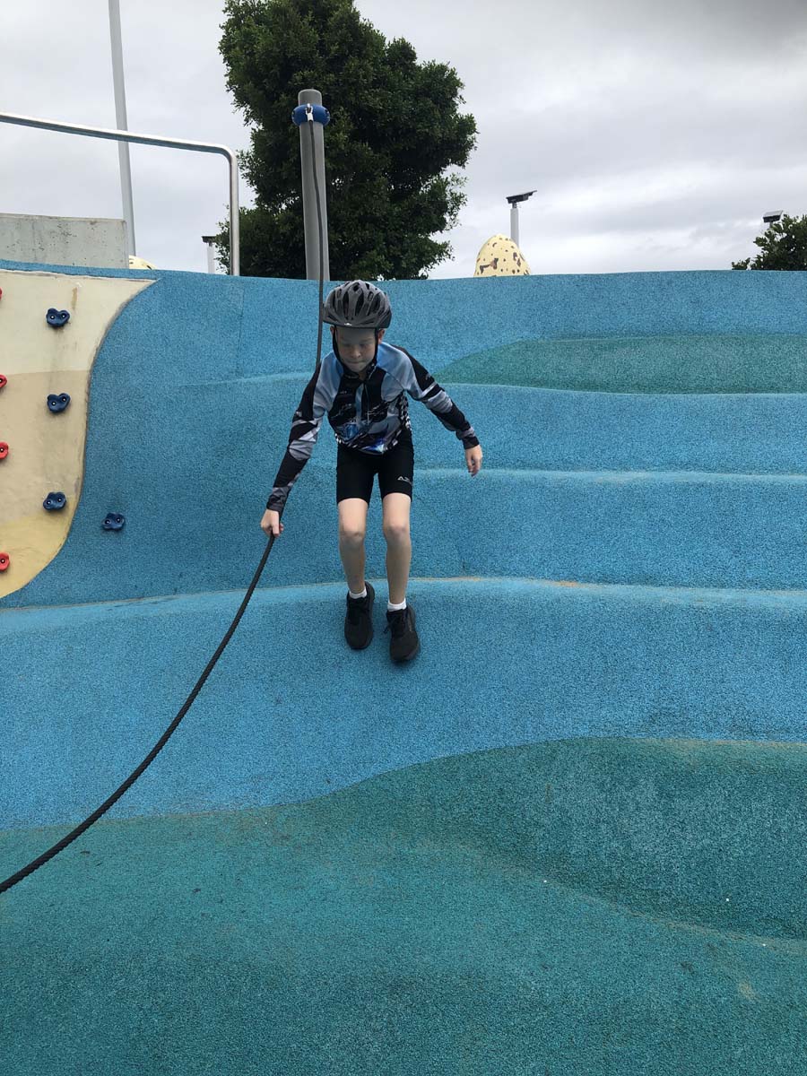 We stopped at the BIG Playground just past 'our' caravan park, Mase again tested various components... They passed. We continued to the Sundale Bridge before heading back home, via riding through the caravan park..