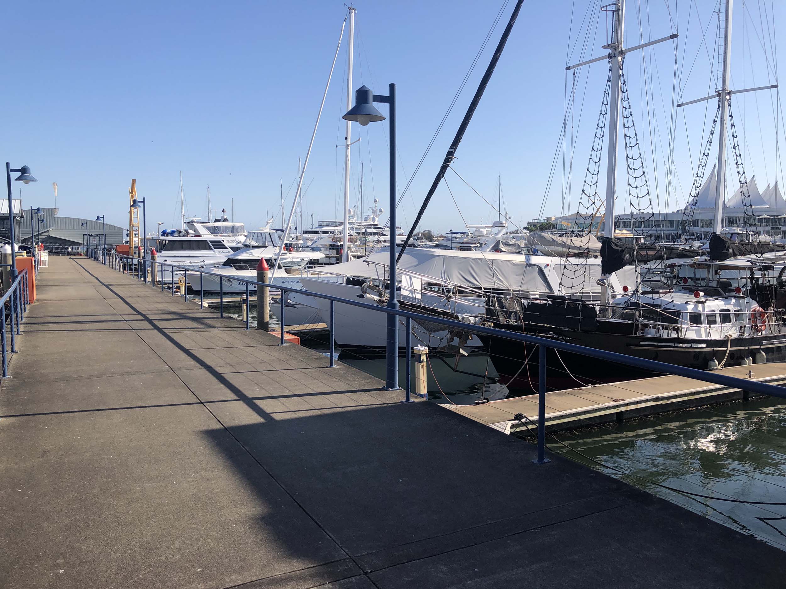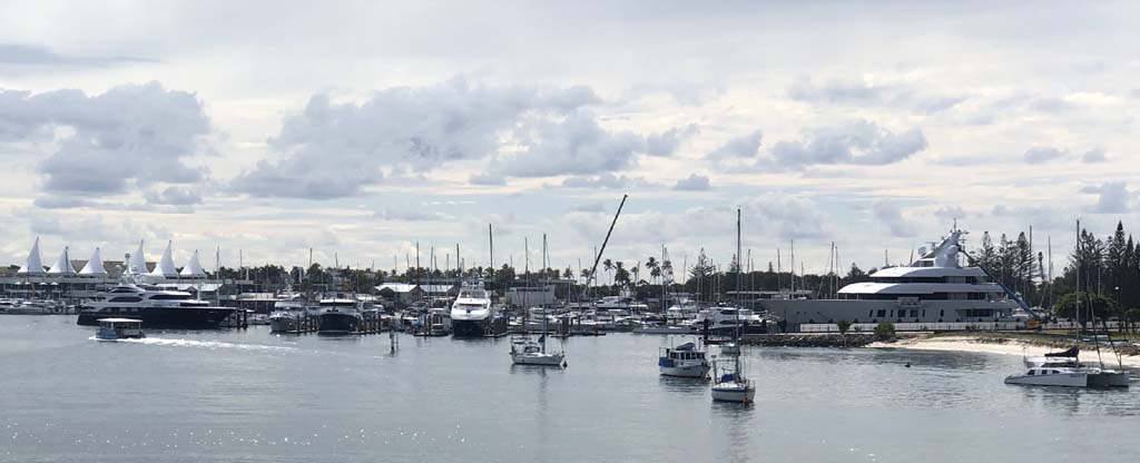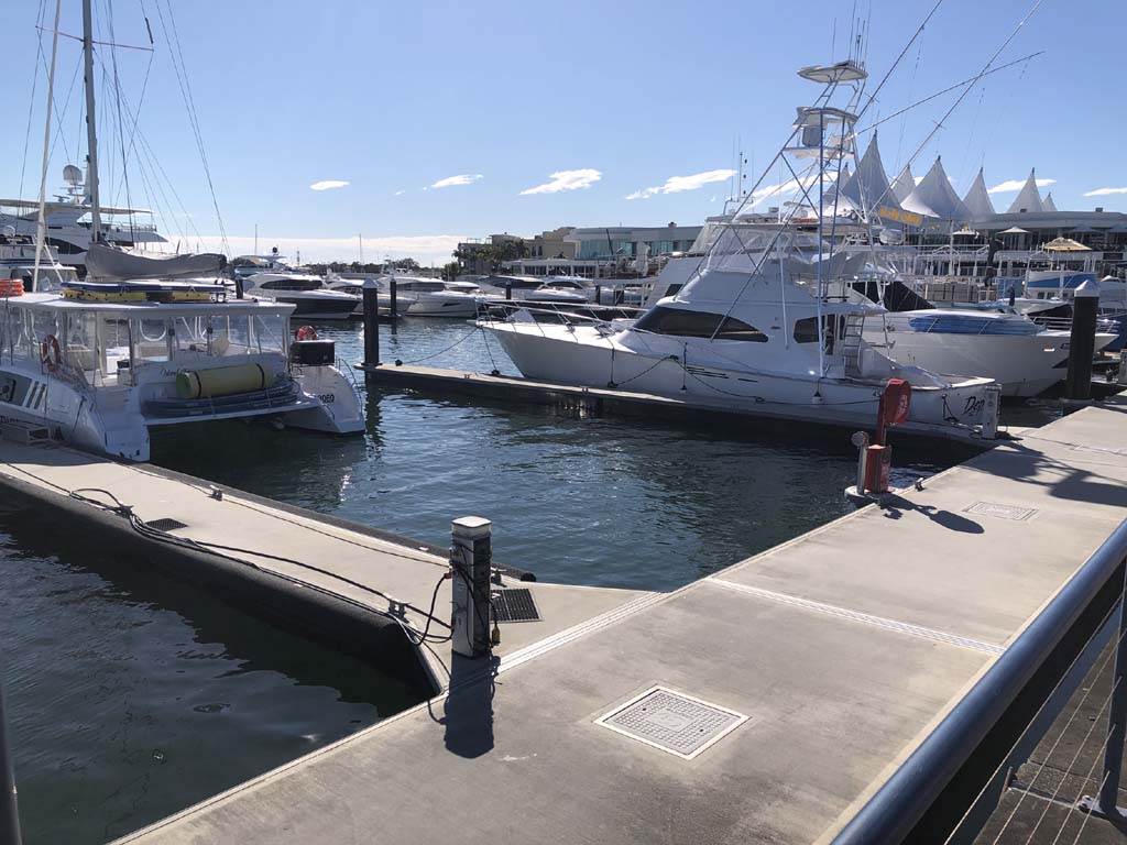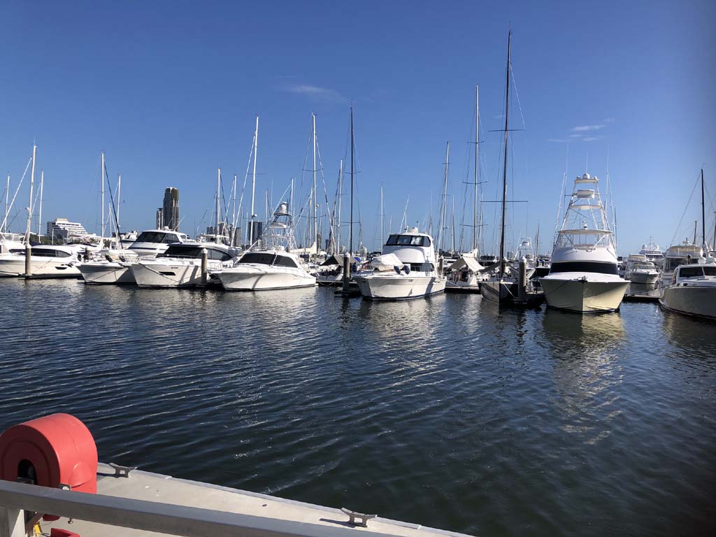 8:09am - The view from the end of one of Marina Mirage's jetties.