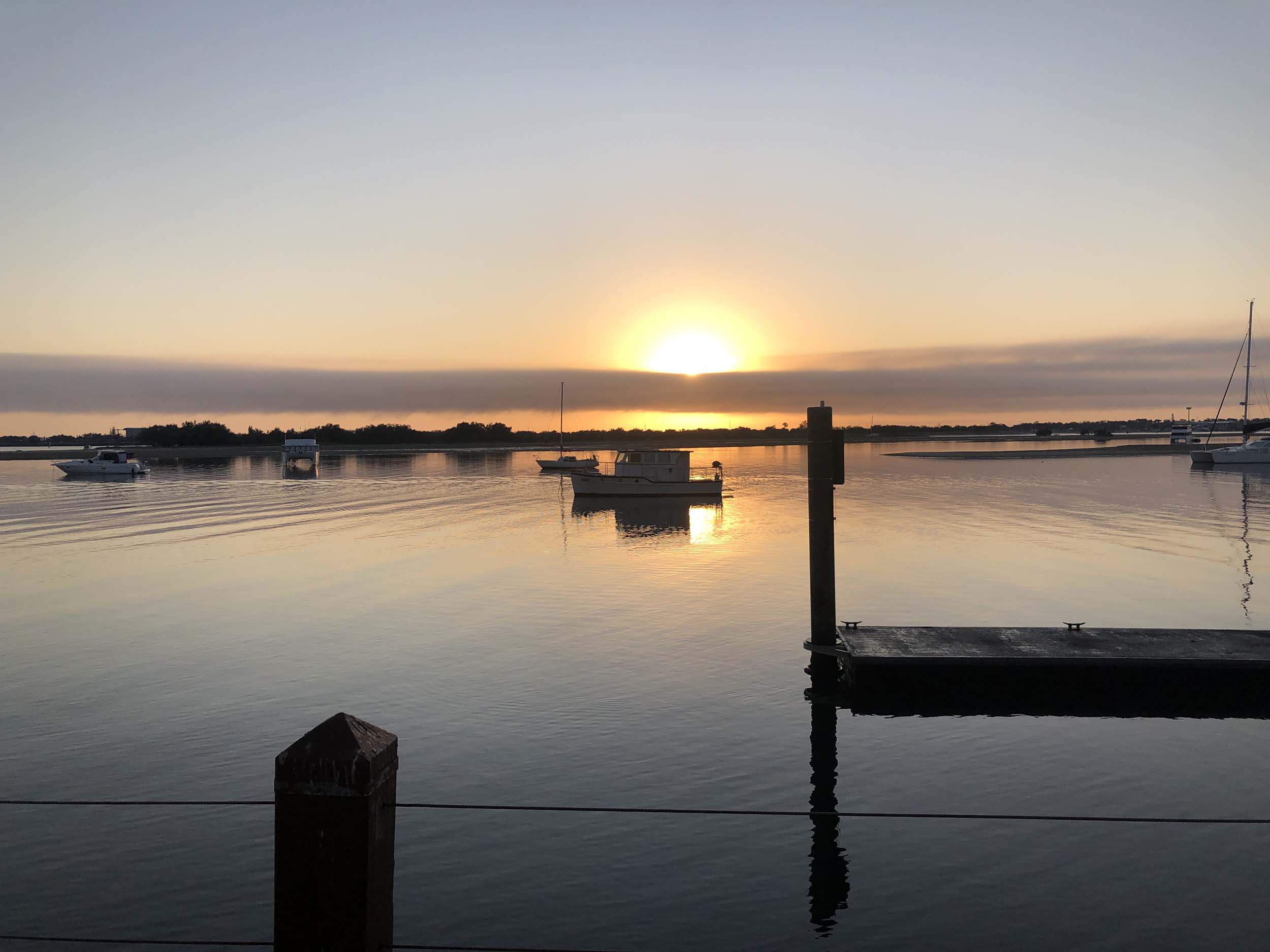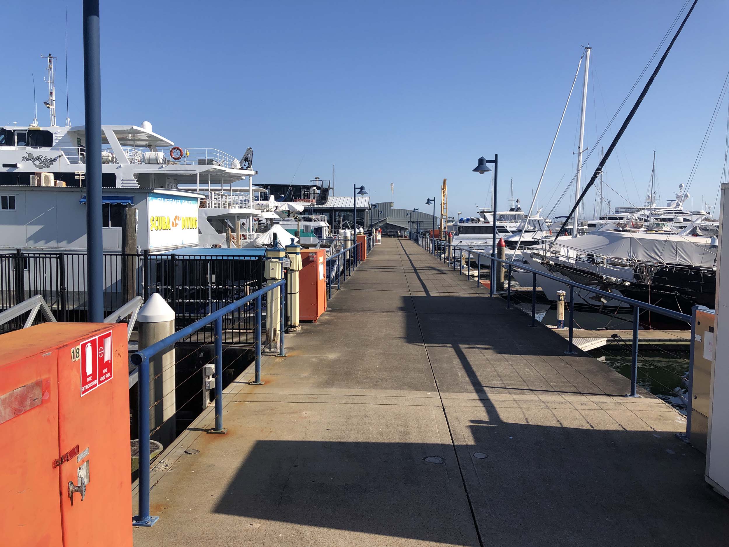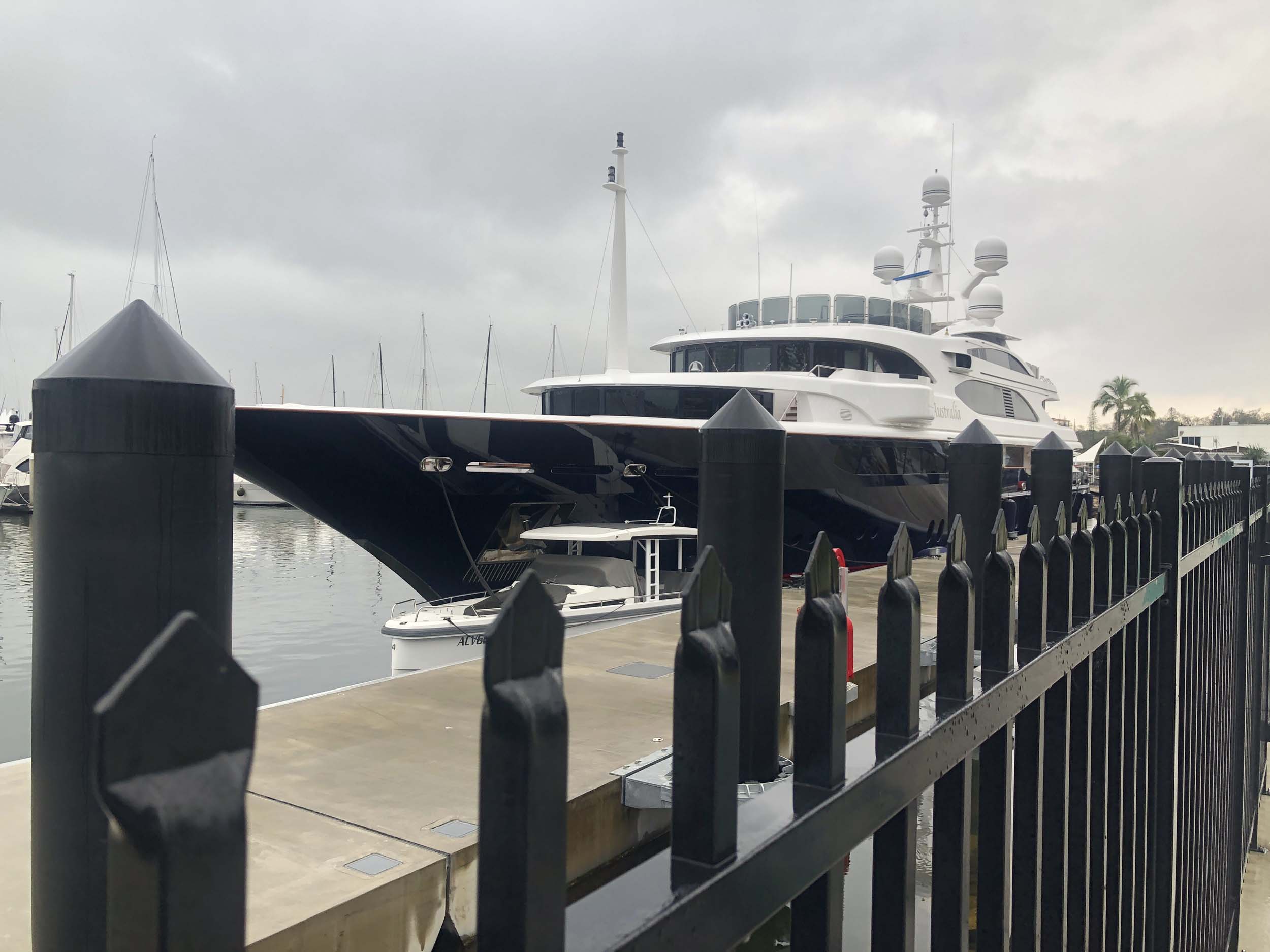 8:09am - The view from the end of one of Marina Mirage's jetties.