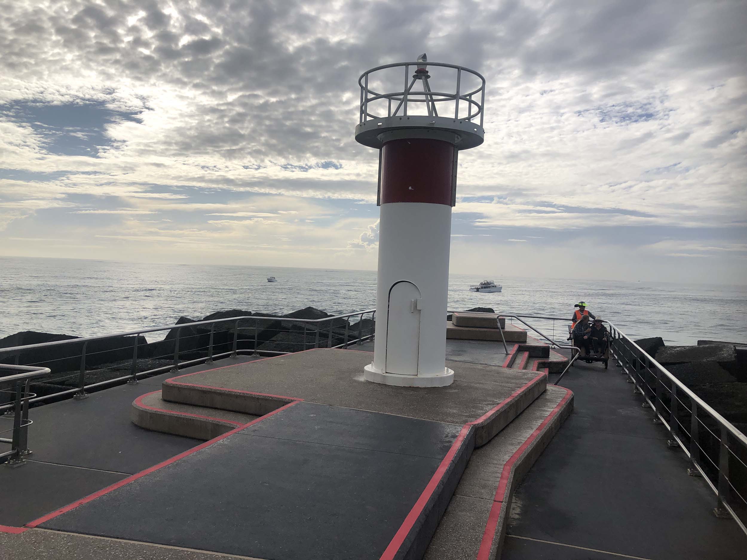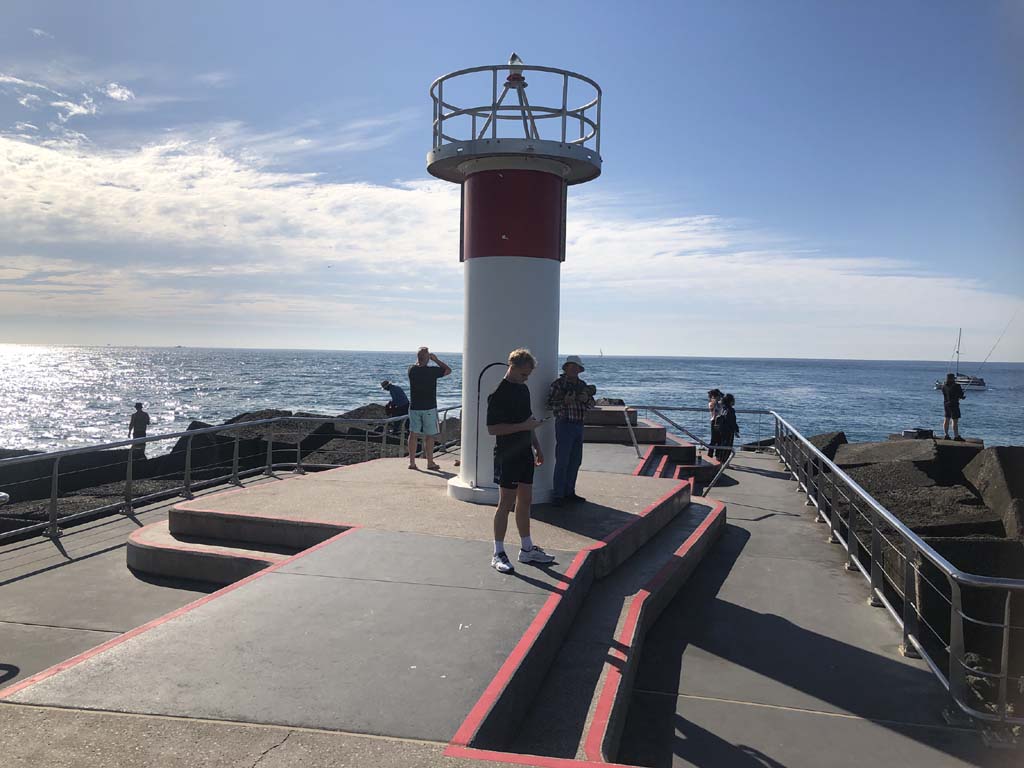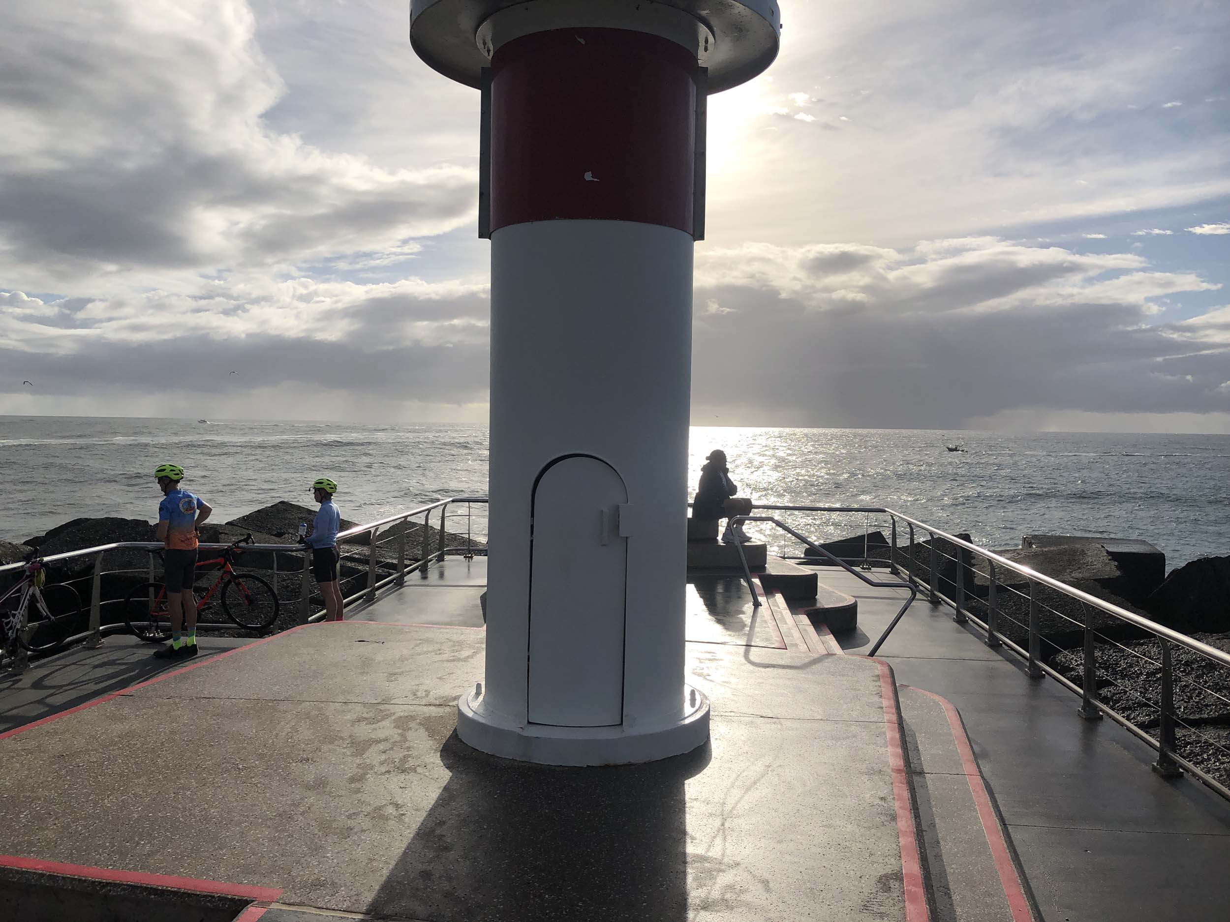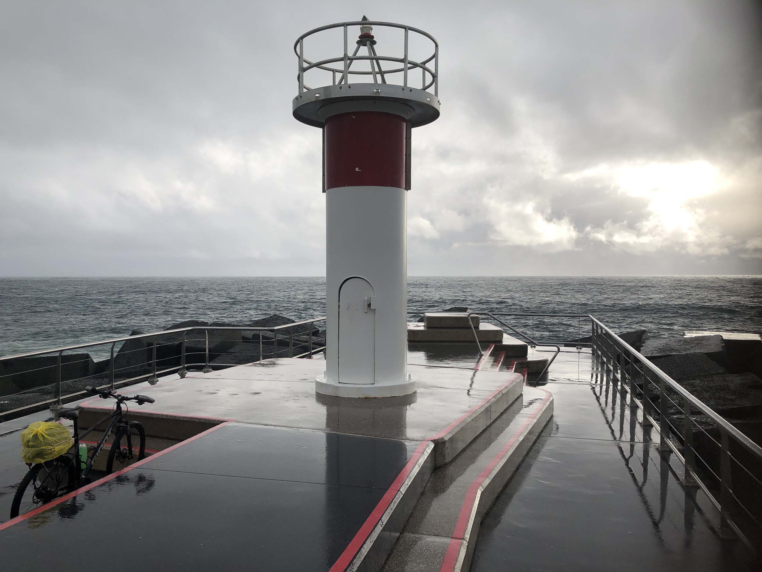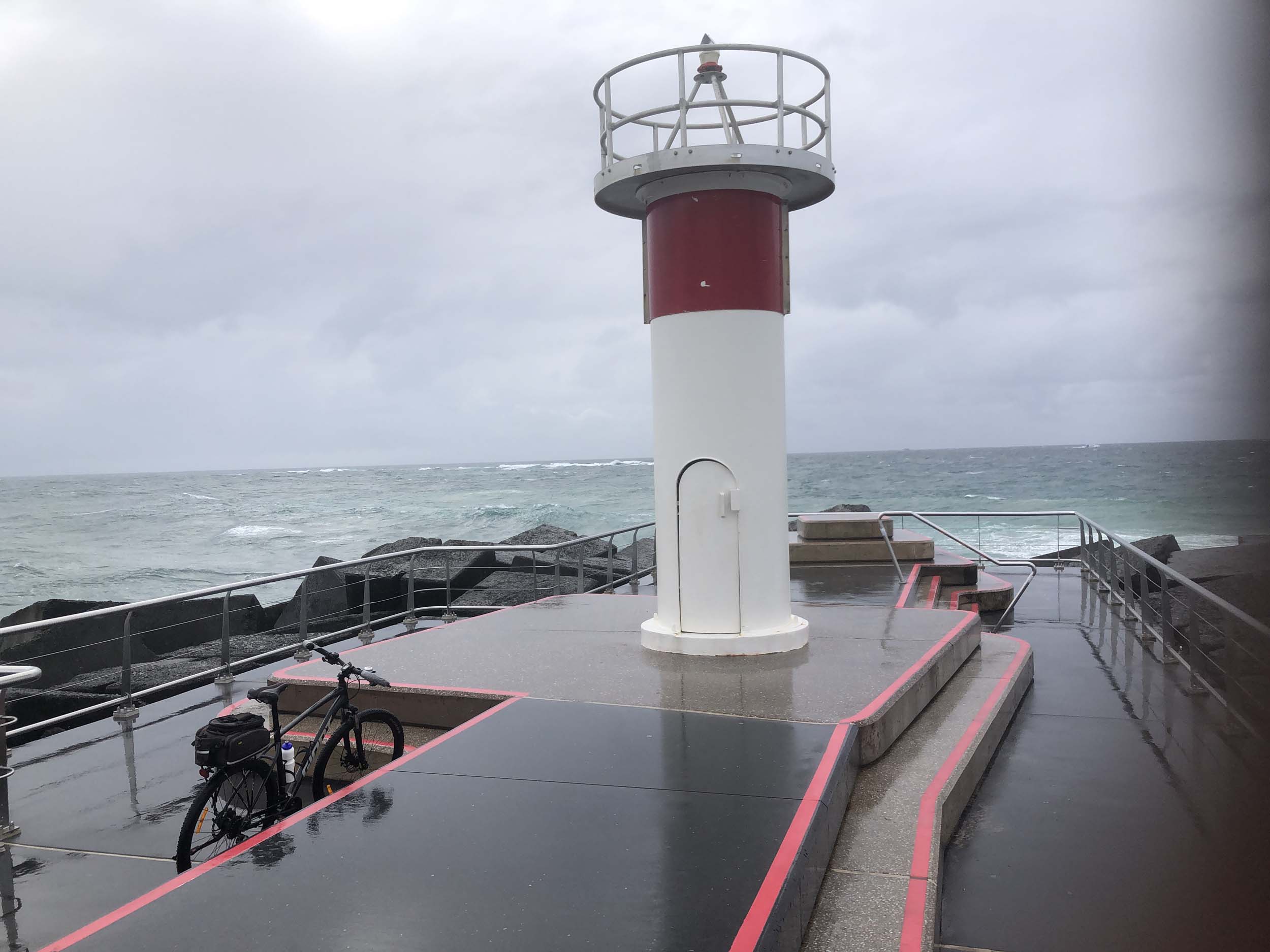 Continued riding to the tip of the Seawall/Spit. It was blowing like buggery and very difficult to stand still, so I stood behind the Beacon and took some photos. I watched the Whale Watching Boat exit the Seaway and thought it was very rough as the catamaran was being tossed about. I wasn't at all surprised to see it do a U turn and head back to her dock. I then rode to the tip of the Moondarewa Spit, eat my banana and noticed that my phone was very low in battery, so I didn't take any more photos on this ride. Only rode 1 lap due to the wind.