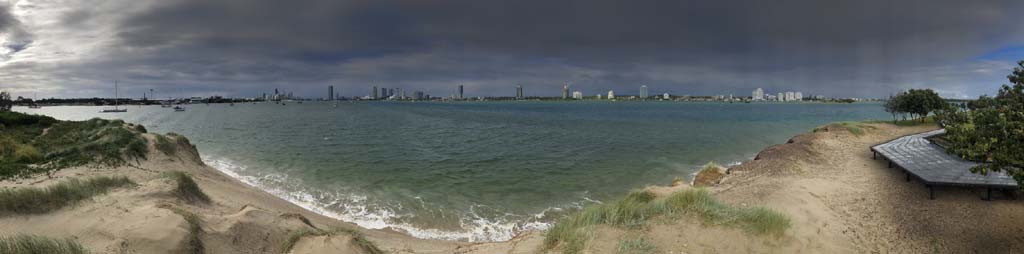 As it was blowing like buggery and very warm, I decided on 1 lap of the Spits, 1 lap of MacIntosh Island and not ride to Surfers.