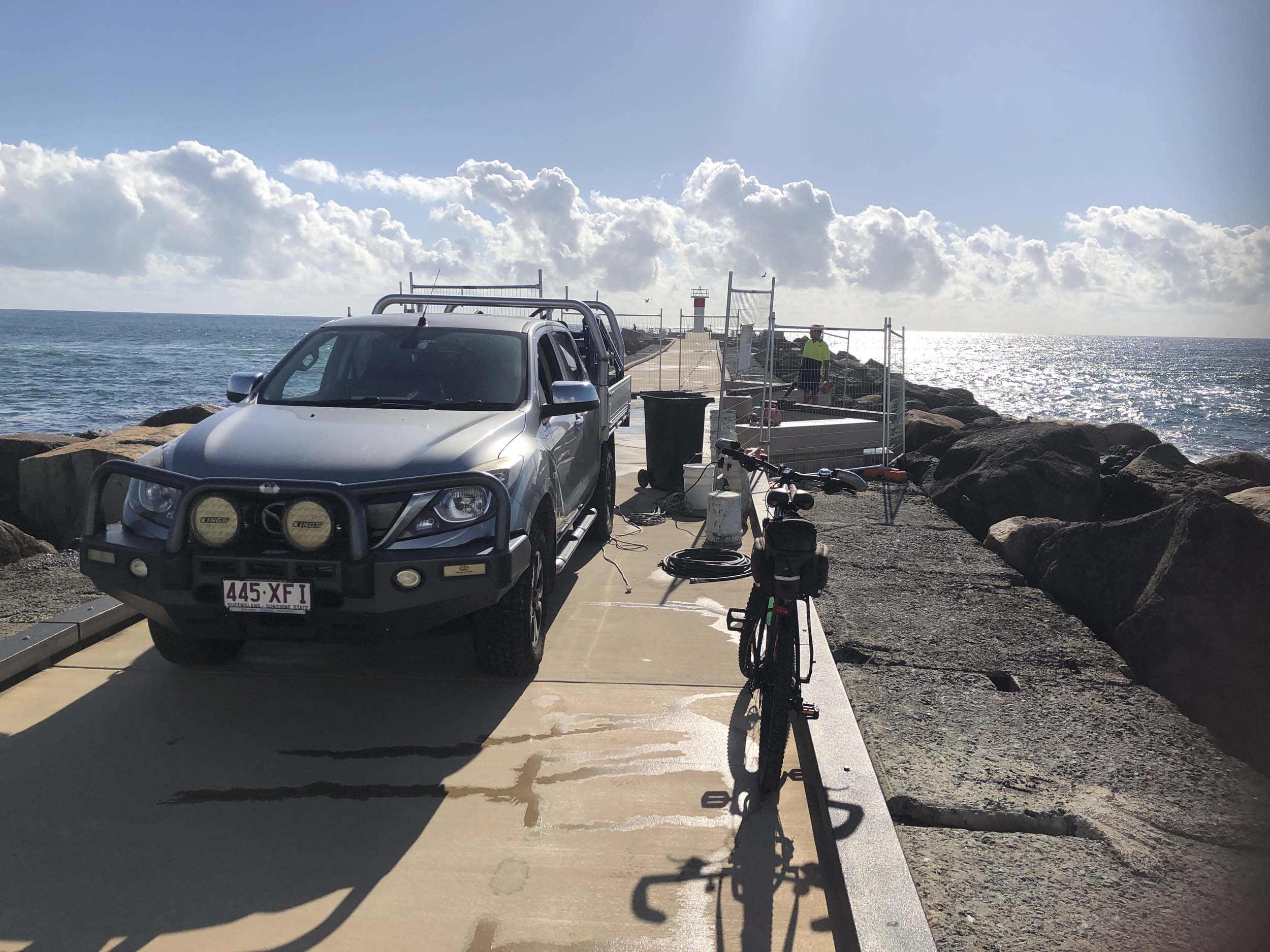 Continued riding to the tip of the Seawall/Spit. In the carpark, I stopped and took photos of the Supercar Transporters, then rode to end of The Spit, then rode to the tip of the Moondarewa Spit, took more photos and then rode back to the end of the Seaway/Spit. I left The Spit, and continued along the Shared path that runs parallel to Seaworld Drive, back around the Marina Mirage jetty.