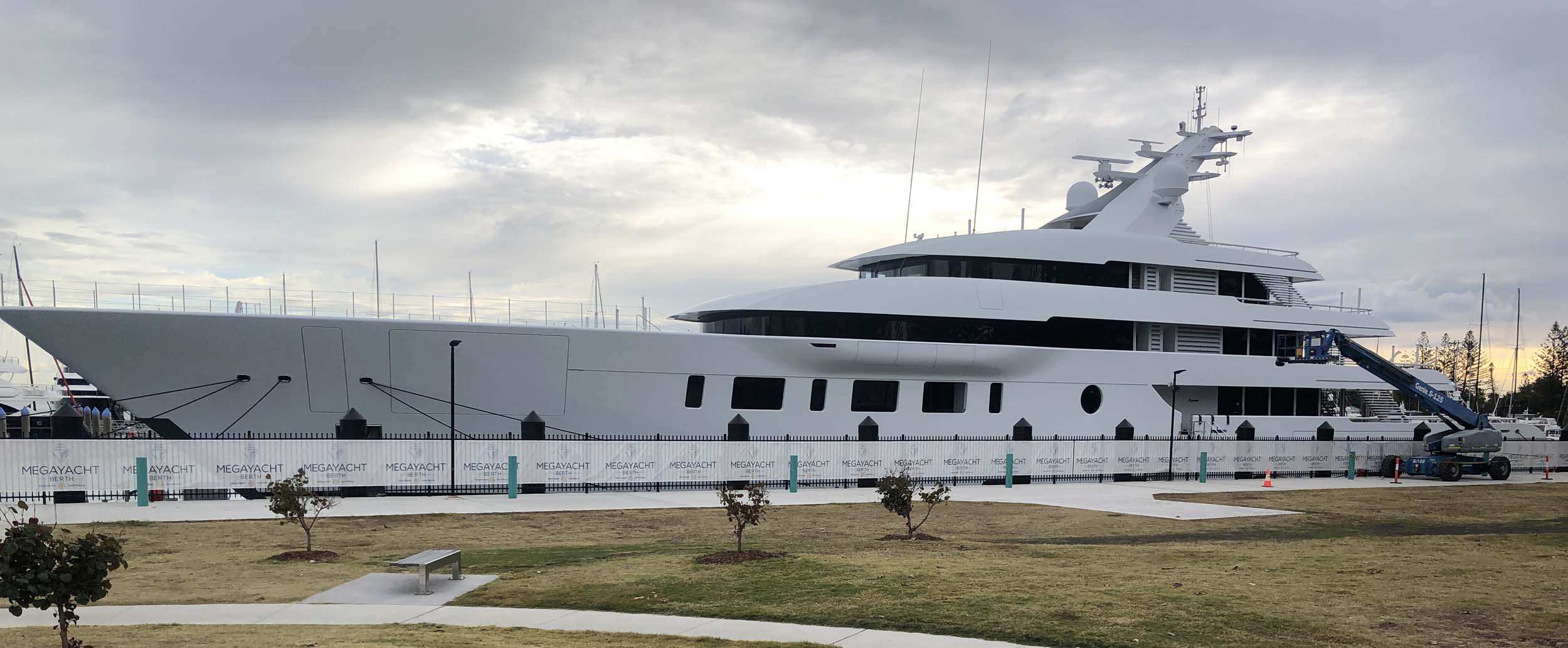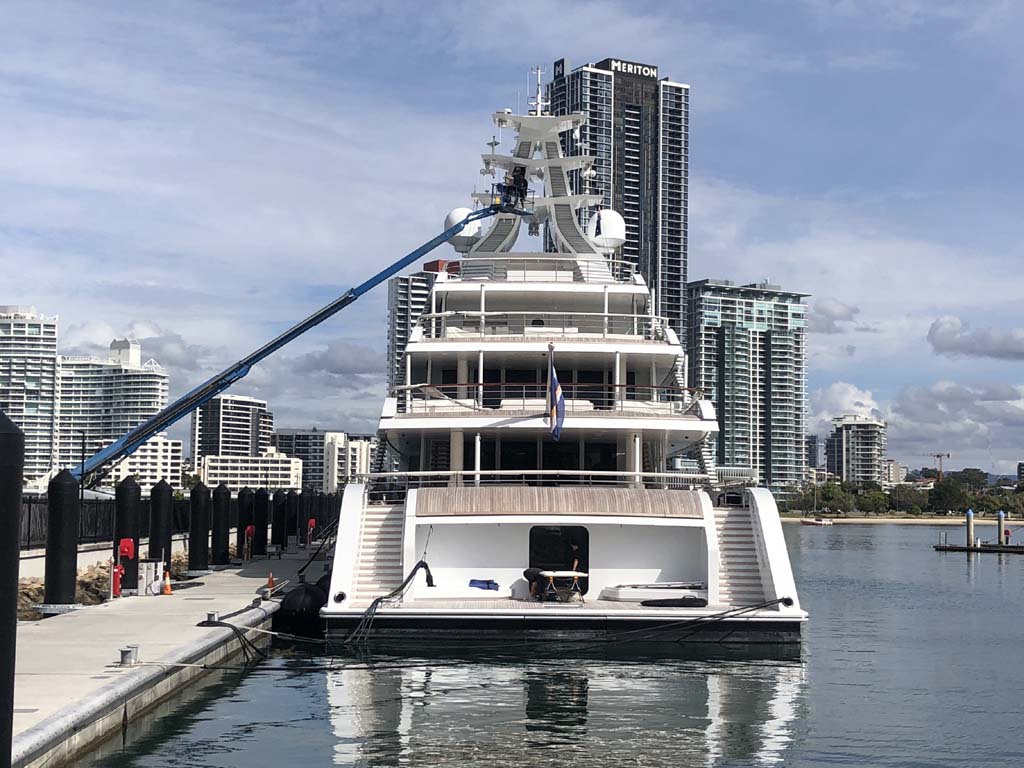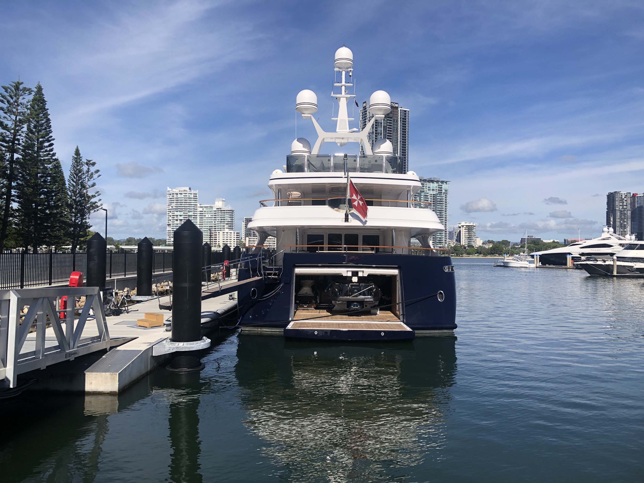 I left The Spit, and continued along the Shared Path that runs beside Seaworld Drive. Rode through Muriel Henchman park, which is an absolute mess, as the workers are expanding the carpark etc and everything has been bulldozed. Did a lap of the Seaworld carpark. The Seaworld carpark was 1/2 FULL as the school holidays have ended. Then rode around Marina Mirage, past Helitours which is on the jetty. Continued through the Southport Yacht carpark, beside the Super yacht jetty. The Google co-founder Sergey Brin's 73m Superyacht "Dragonfly" was moored there.