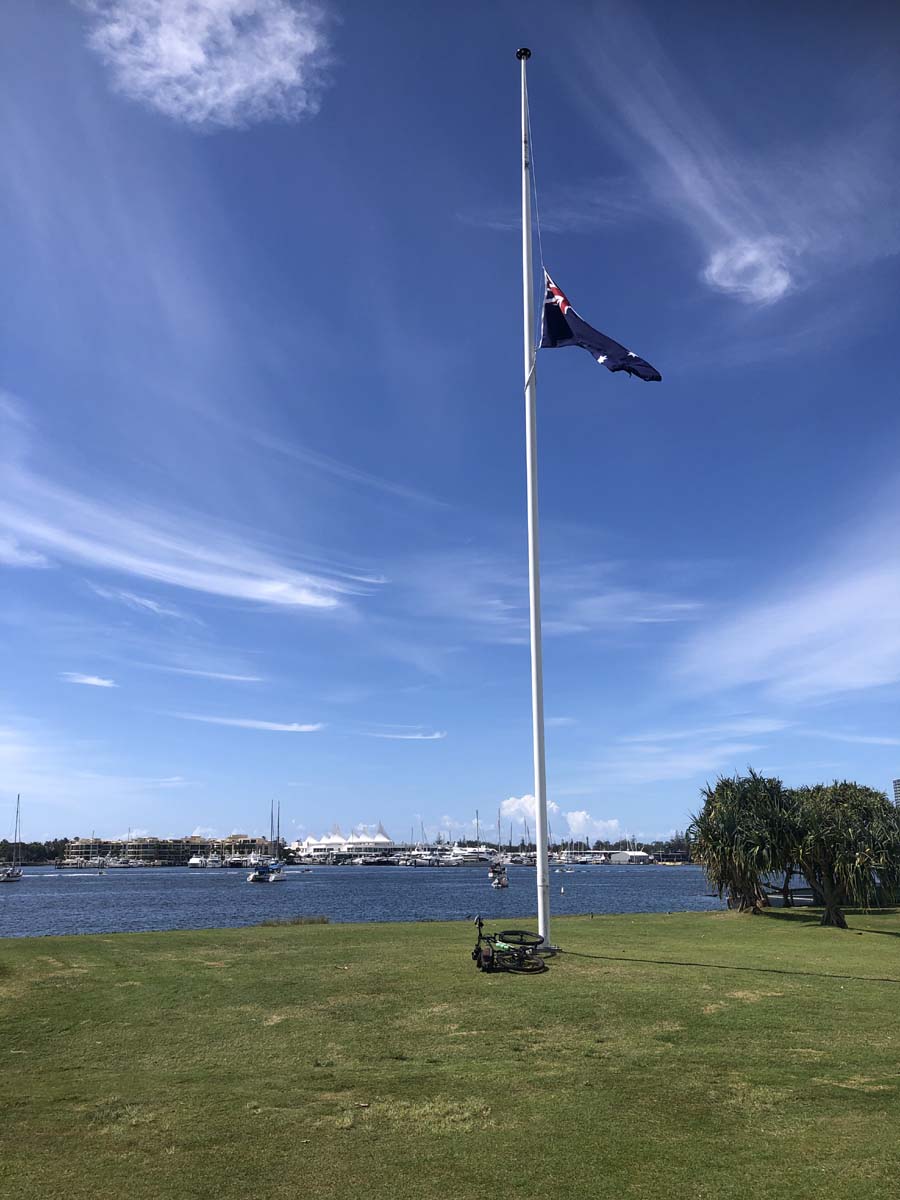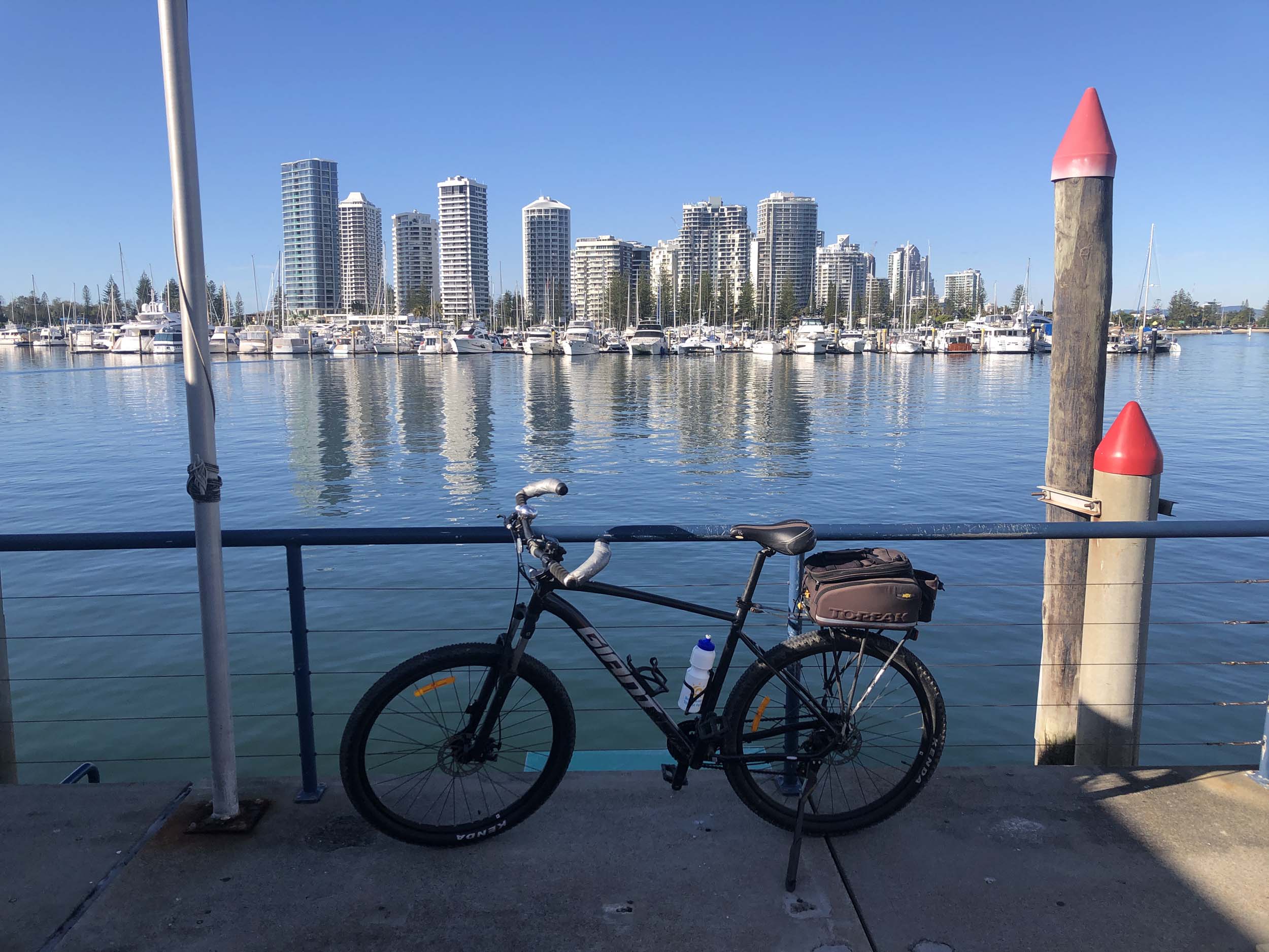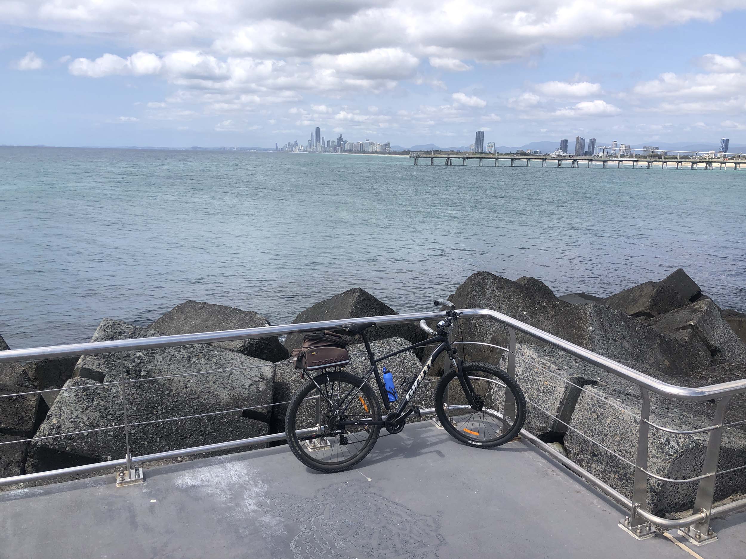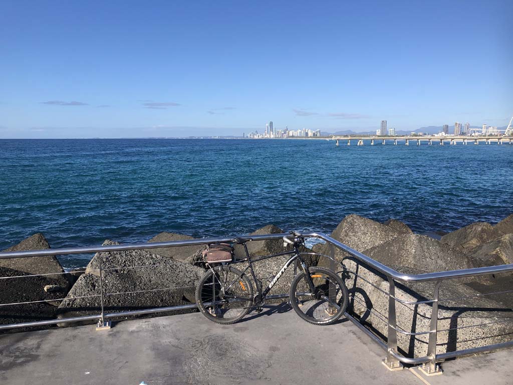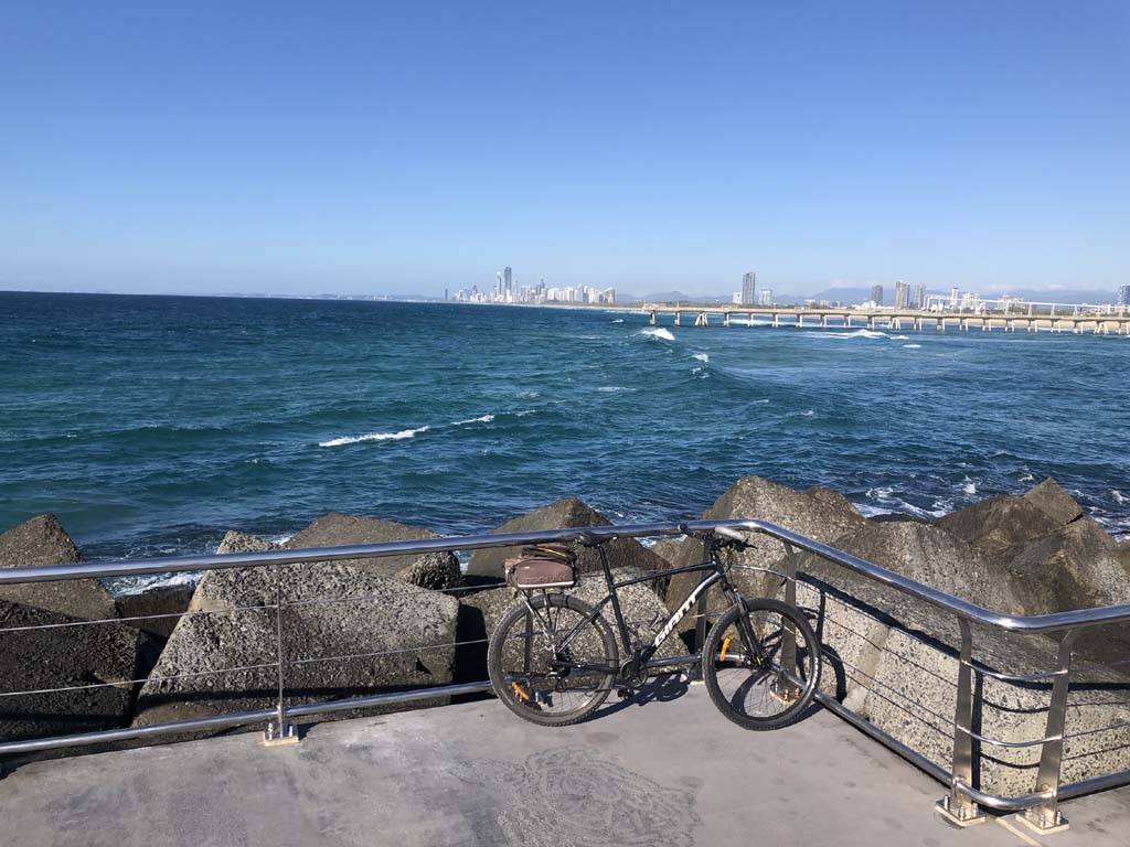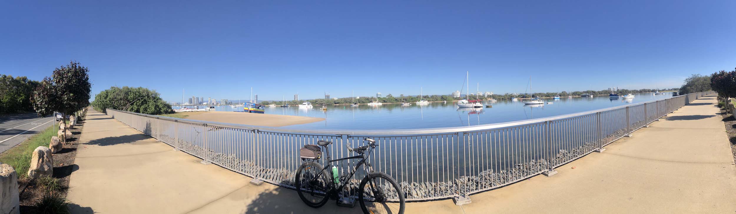 As usual, I rode Northward, to my Lands End turnaround point. Continued through the Broadwater Parklands over the Sundale Bridge and turned left and rode past the Super Yacht jetty, through the Southport YC, along the jetties at Marina Mirage and then around the edge of the Seaworld carpark, continuing along the shared path to The Spit.