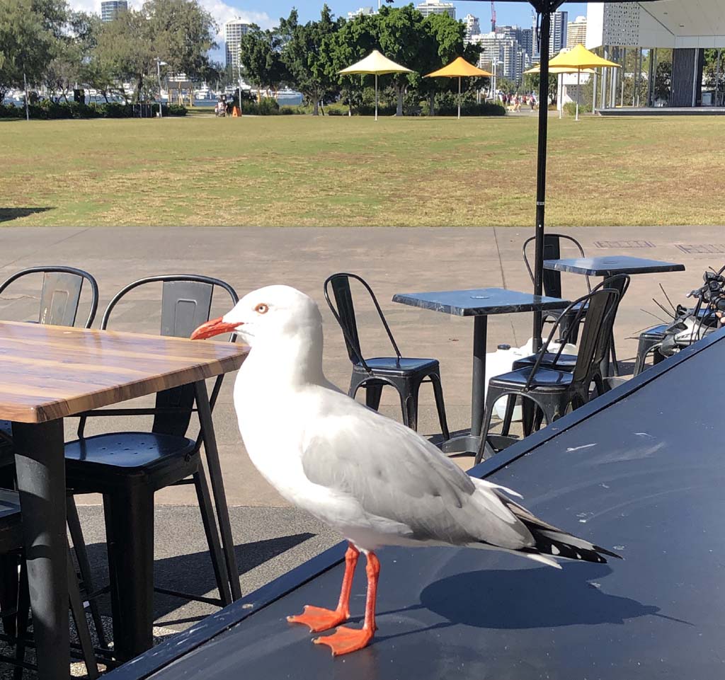 11:06am - The Boys were waiting for their daily feeding at Charis Seafood - over the road from our unit.