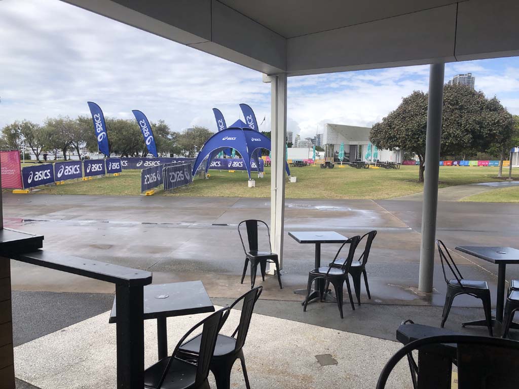 As there was no people about, I stopped at Cafe Rockpool and had a coffee and toastie. As I was passing the GC Marathon Finishline, I had to stop and take a photo. The GC Marathon is this weekend.