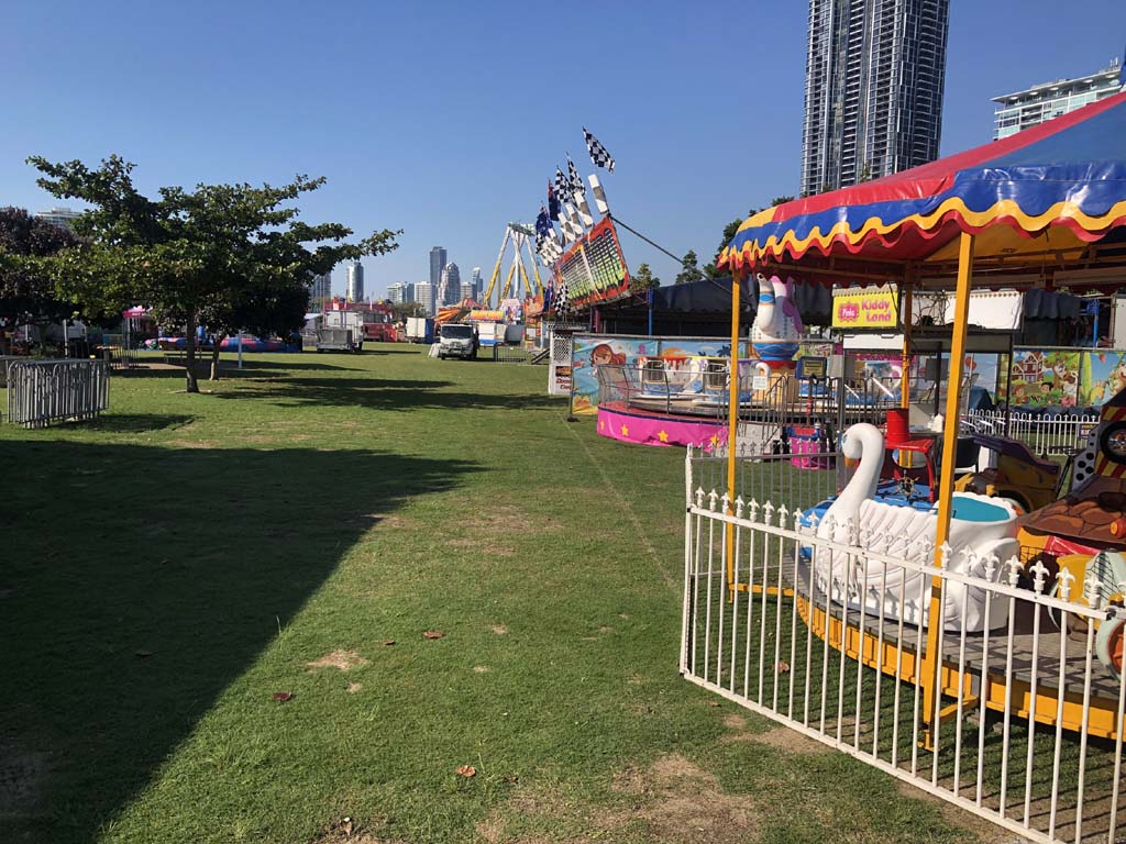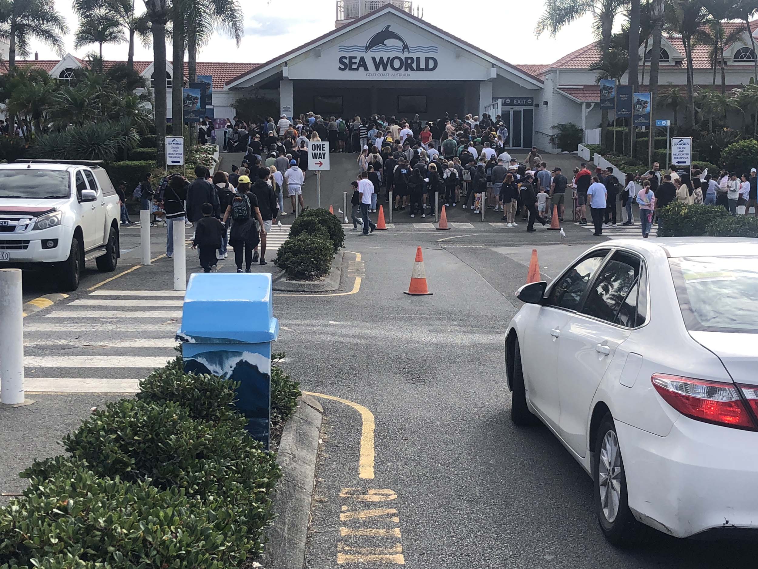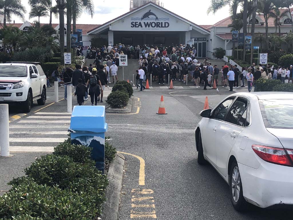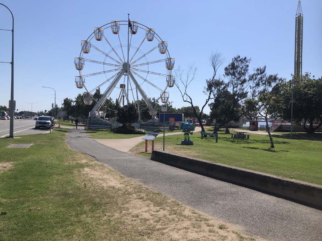 I rode Northward, to my Lands End/Biggera Creek turnaround point. Continued through the Broadwater Parklands over the Sundale Bridge and turned left and rode past the Super Yacht jetty. 2 boats were moored there. Continued through the Southport YC, along the jetties at Marina Mirage, then around the edge of the Seaworld carpark, stopped and took a photo before opening, then continued along the shared path to The Spit.