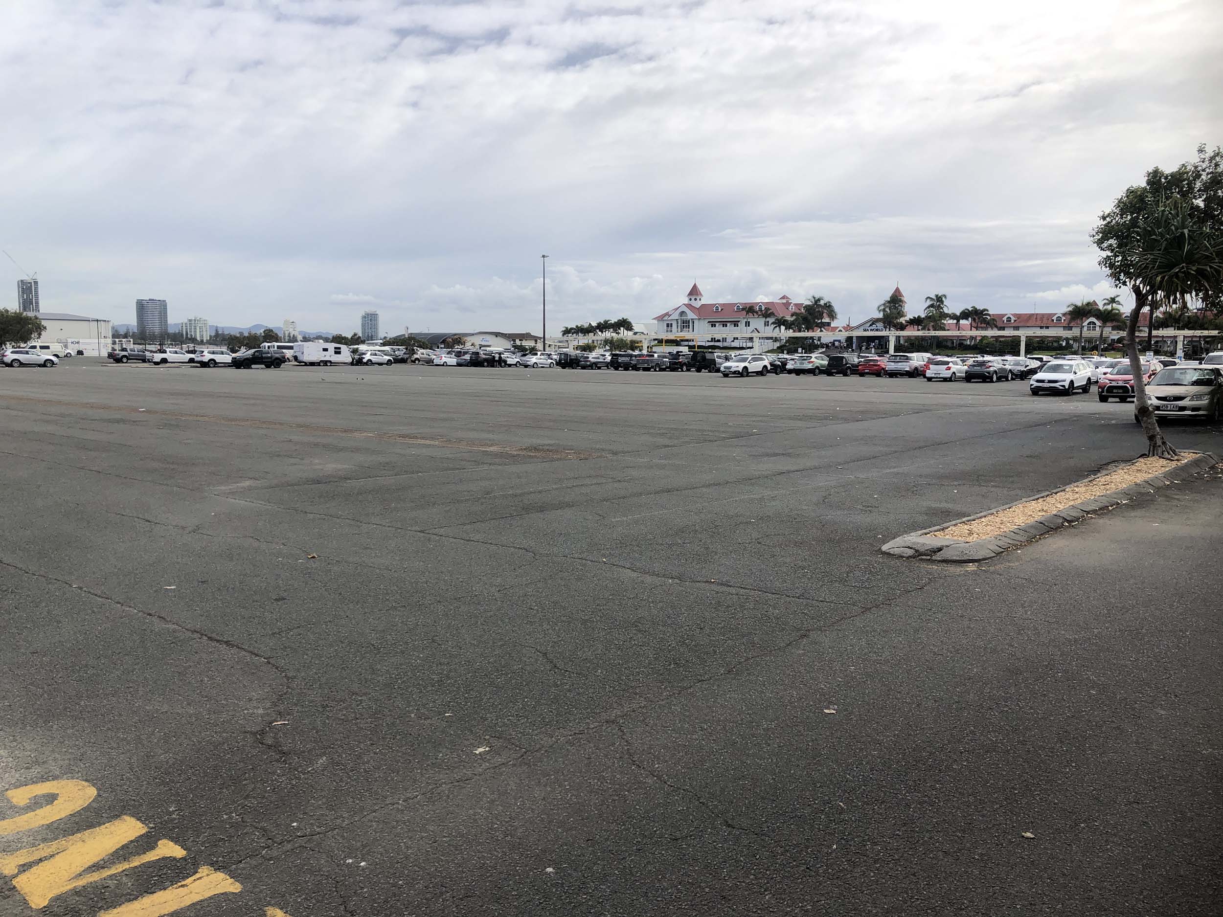 I left The Spit, and continued along the Shared Path that runs beside Seaworld Drive. Rode through Muriel Henchman park, which is an absolute mess, as the workers are expanding the carpark etc and everything has been bulldozed. Did a lap of the Seaworld carpark. The Seaworld carpark was FULL and the overflow carpark was filling, due to the NSW school holidays. Shock, horror, there were plenty of NSW rego cars. Then rode around Marina Mirage, past Helitours which is on the jetty. Continued back to MacIntosh Island, did another lap.