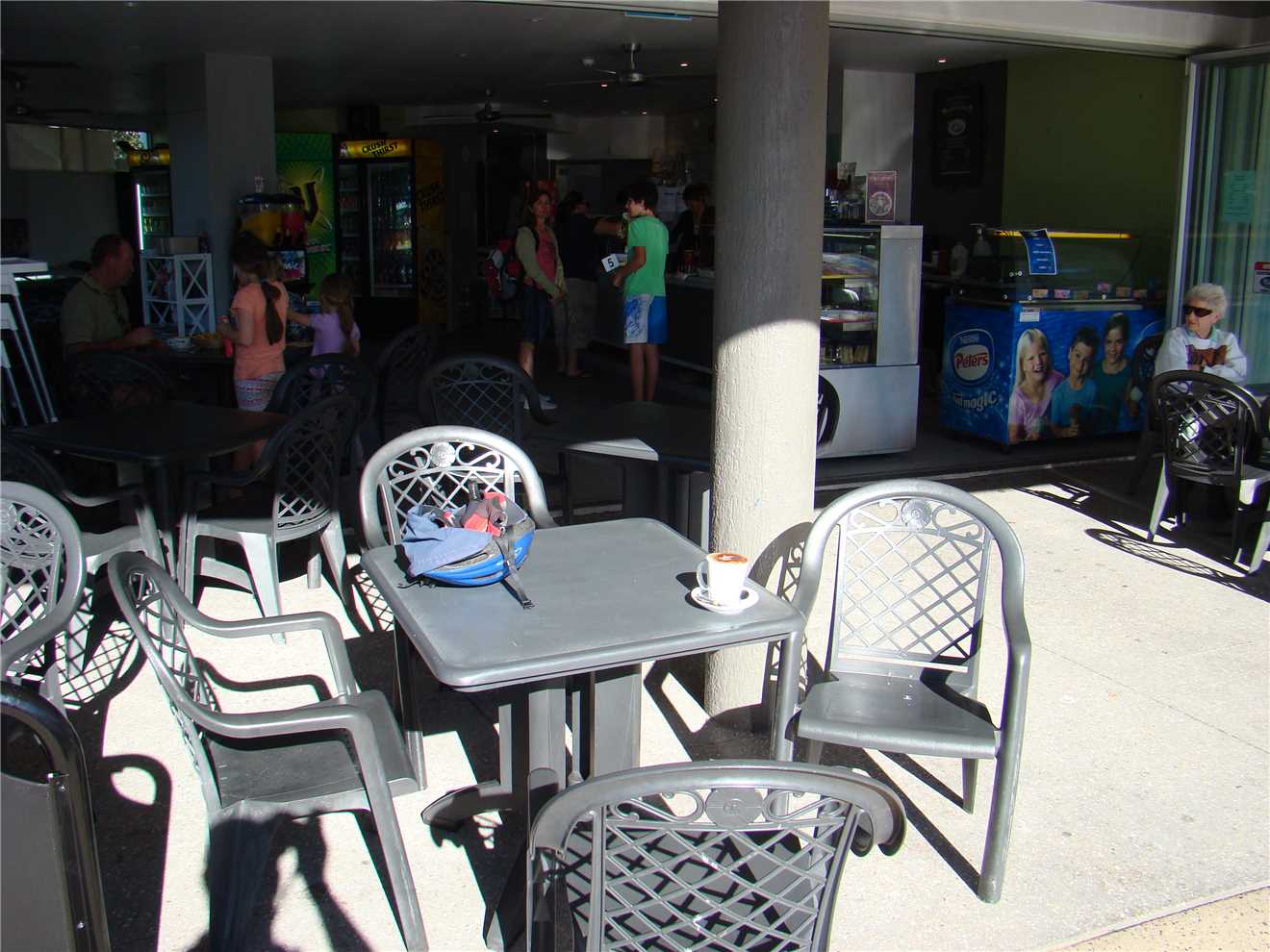 I ride out of the CP, and head North along a shared path then a few back streets, more shared paths and back streets and after 16kms I arrived at Point Cartwright. This is a bluff probably 50 meters high with the Lighthouse built on the point. I usually ride down the hill to the end of the seawall at the mouth of the Mooloolah river, where I sit on the steps of the beacon and take photos and take in the beautiful vistas. On the way back to camp, I usually stop at Coco's Beach Cafe, located about 100 meters from the beach at Currimundi Lake, for a coffee and sometimes their magnificent Rum and Raisin ice cream. If I don't stop here, Marg and I have been known to walk across the road from our Caravan Park to the 'world famous' Dicky Beach shopping strip and have a coffee there.