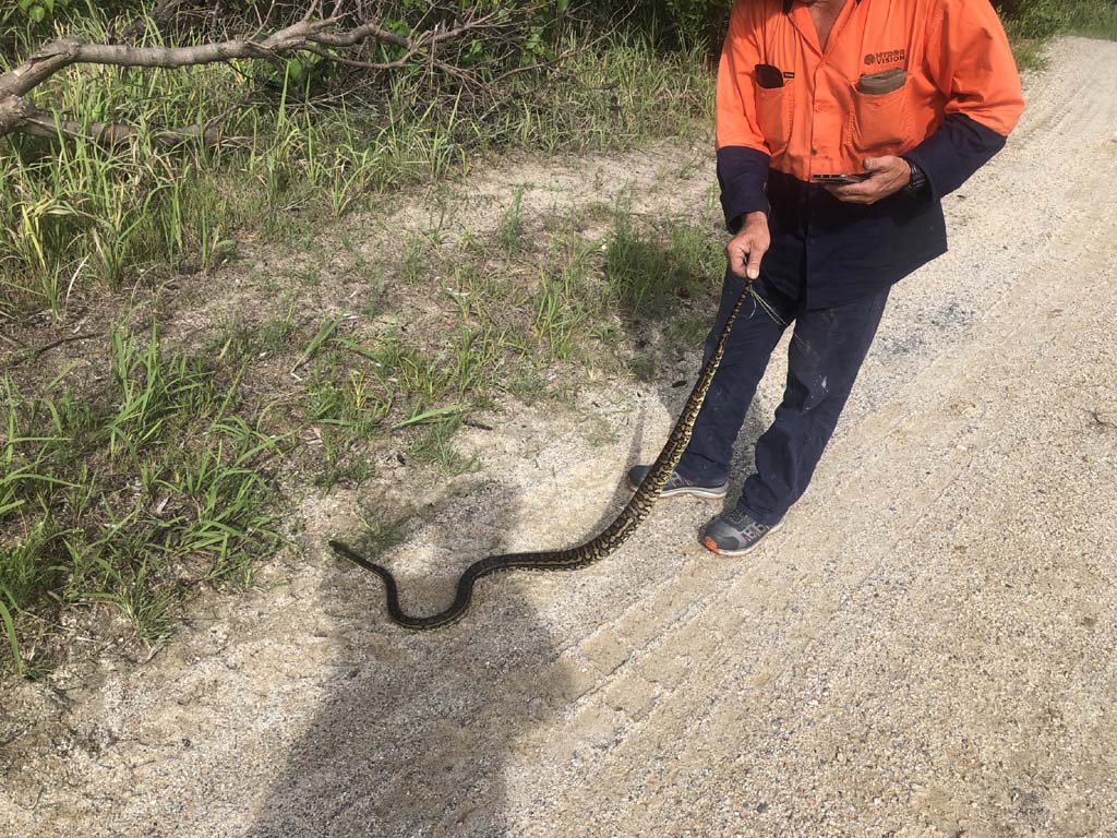 2nd December 2021 7:29am - A worker was holding a Coastal Python by the tail, I rubbed its belly.