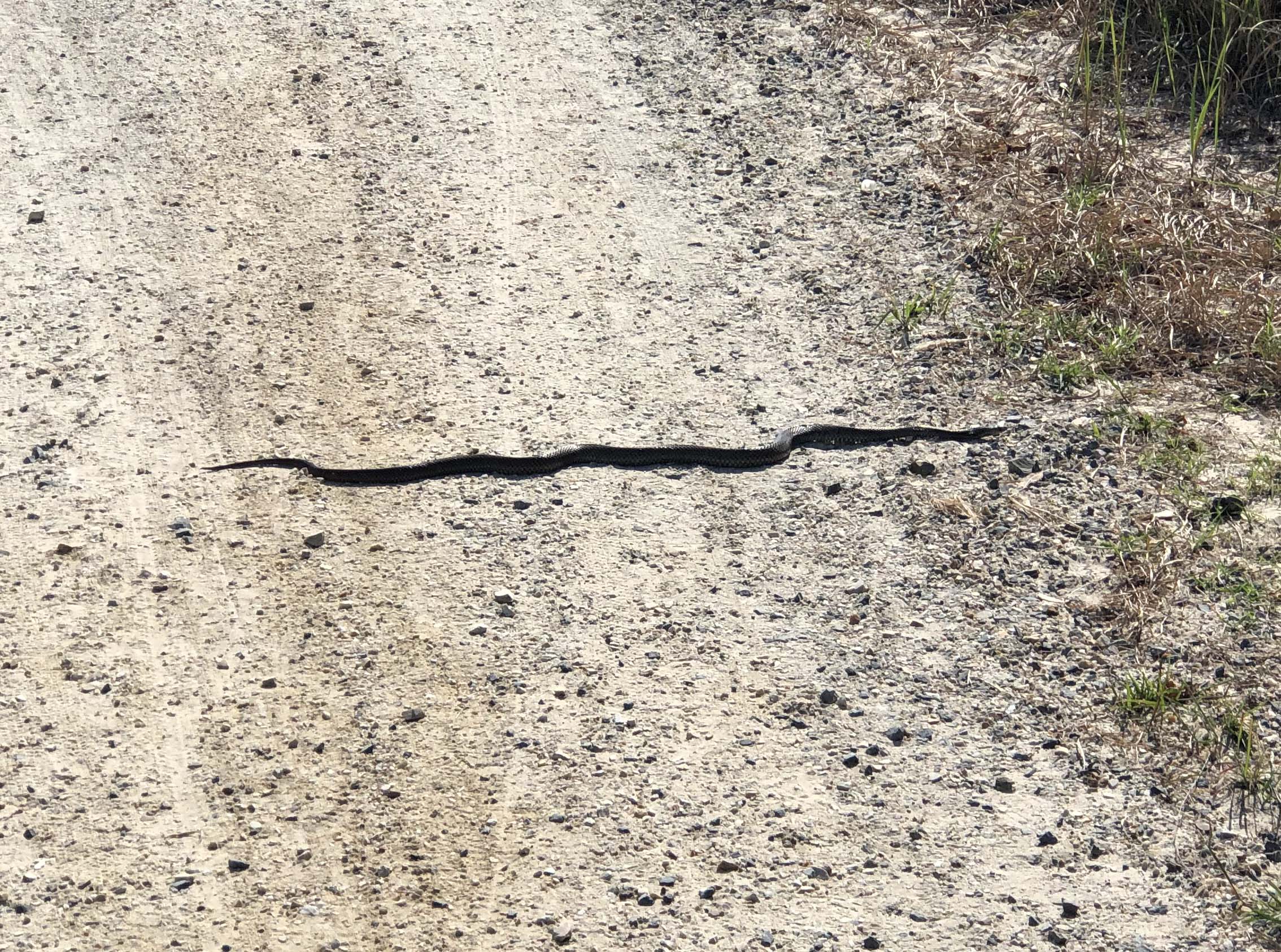 As I rode down the small decline and turned right to ride up the next small incline, which just happens to be a very fast section of my ride, a snake was halfway across the gravel path. I comfortably rode around him. I stopped but he had escaped by the time I was back at the spot. Bugger.