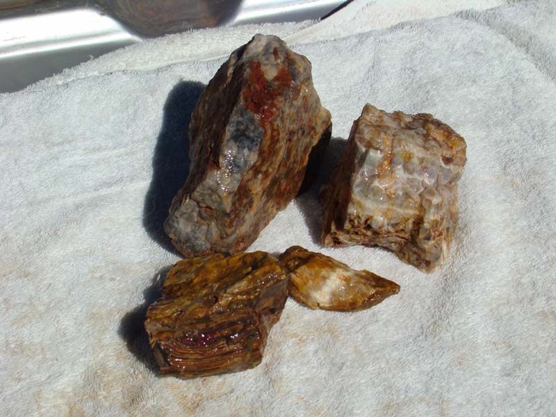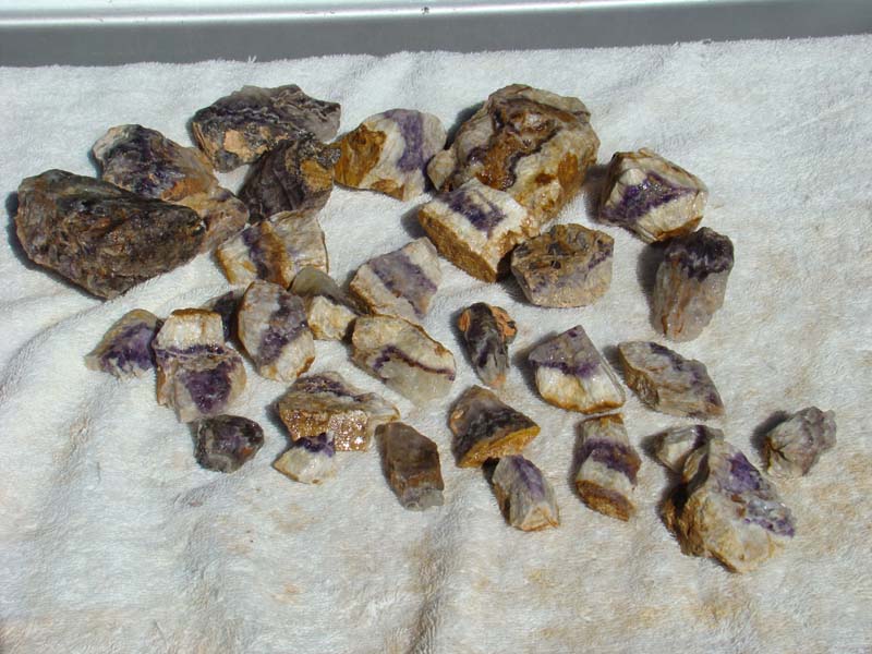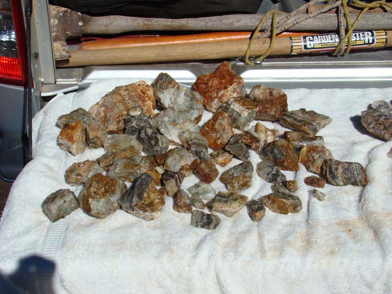 we found, which consisted of green quartz, little bit of amethyst(which should polish up well) and a piece of Azurite. The Azurite was found right beside our car.