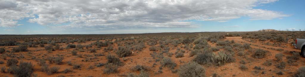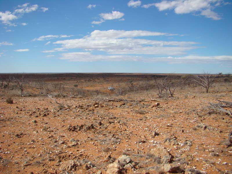 We set the alarm for 6am, woke up, got up and onto the internet. Made lunch and meet Trev and his tag along group of Brian and Sharon from Port Macquarie, Ross (who was Trev's teacher), Graham and Glenis and of course, Trev. We had 3 4WDs in our convoy, Graham, Glenis, Ross and Trev in Graham's car, Brian and Sharon, and us. Graham led, Brian last and us in the middle. It was 92kms along the Barrier Hwy to the Tikalina Station, where we stopped and visited their museum of Radium Hill's past, it was very informative. We continued a further 20kms into the outback along tracks that weren't even tracks in some places. It was great fun driving. At this spot I found some Devil's dice and Kyanite blades, then we headed over to the large chunks of Kyanite a distance of 7.7kms away.