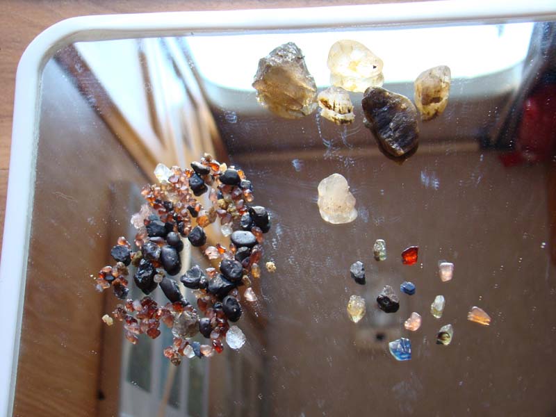 We found some small sapphires, small garnets and small zircons and spinel.