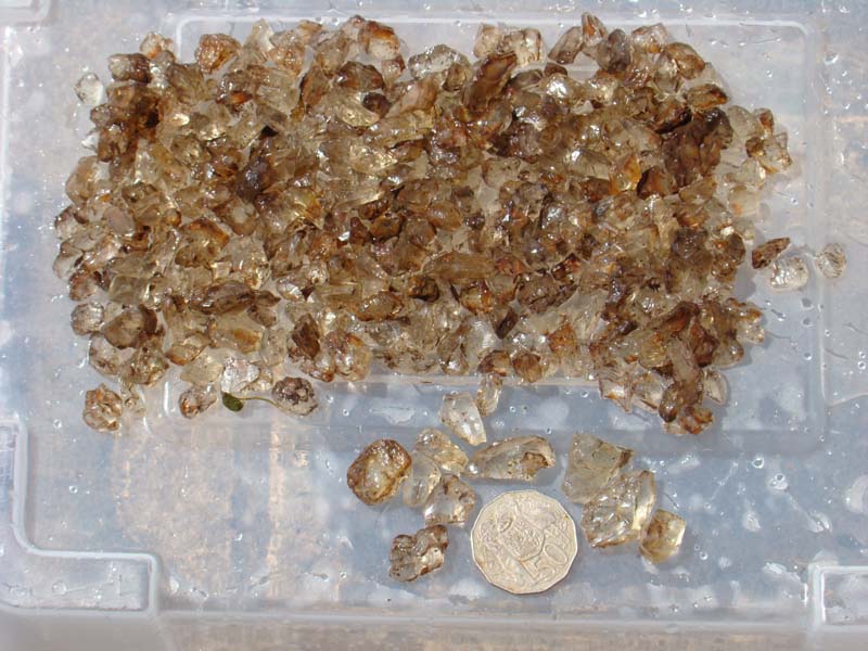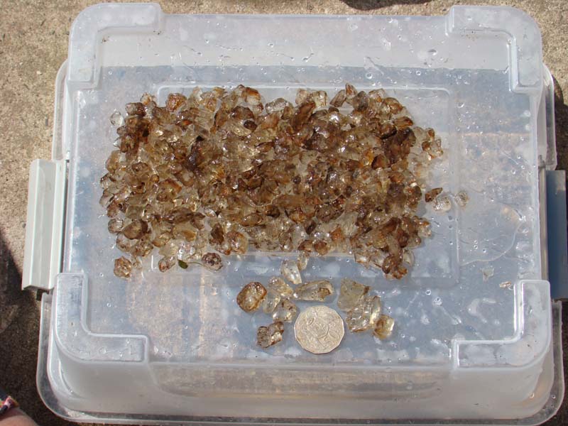 is in the top 100mm of soil. Marg reckons that we averaged over 20 pieces per sieve and upto 50 pieces. See the photo of our haul below.