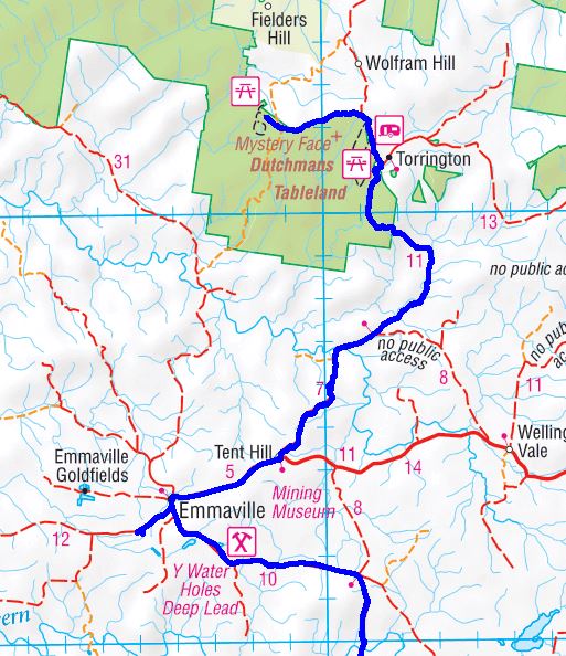 At the car park there is a track that goes through a gate into private property. It actually goes into the site of the Scrubby Gully bismuth/wolfram mine.