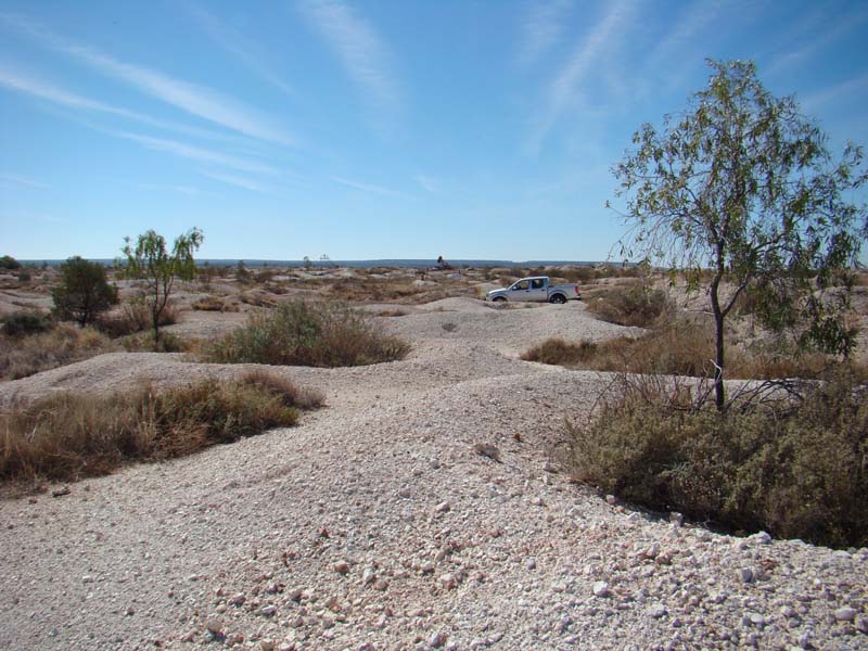 fossicking gear and headed off along the tourist drive, looking for any fossicking areas. They all look the same. The 'mullock heaps' are the used gravel