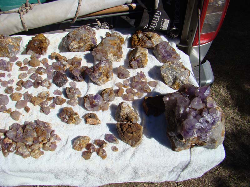 our carry bag. We continued on fossicking for nearly 2 hours and ended up with a tub full of amethyst. We will post some photos of the rest of our find, when we get