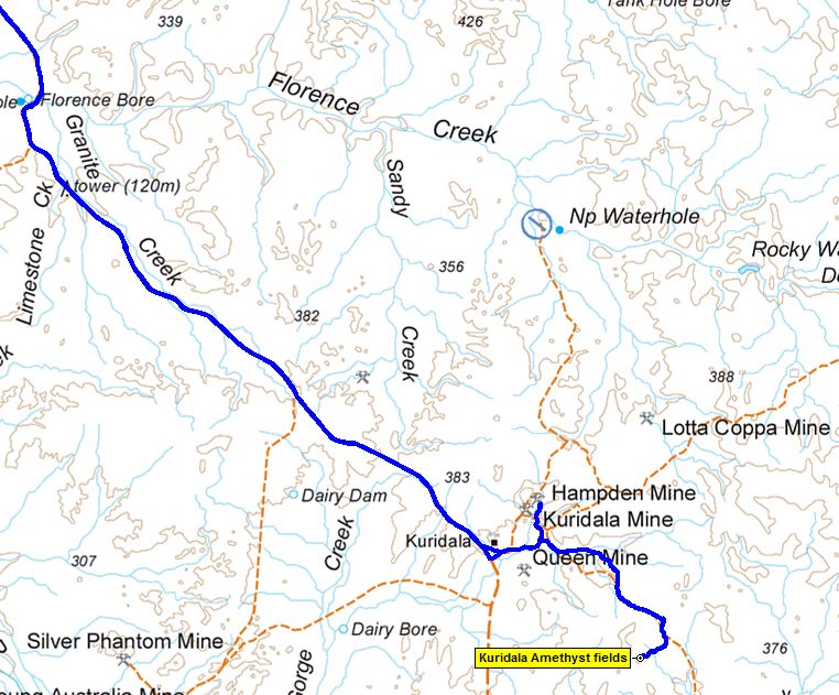 Malbon turnoff we had 34kms of gravel road then 6kms of a rough goat track, which lead us to the Amethyst site. The first person to find Amethyst here has to be a