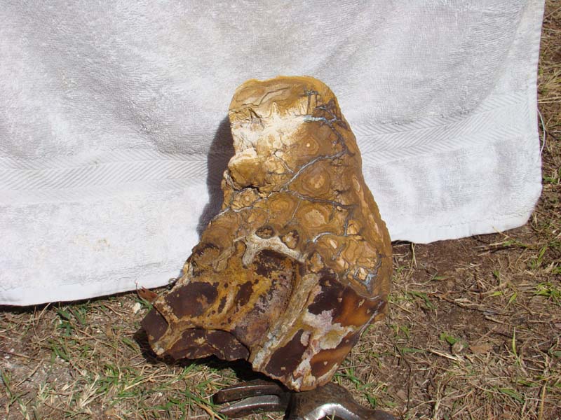 was cut and polished and cost $10, I gave Rod $20 and told him to buy himself a beer on us, Marg also saw some of his other opals and we left his 'showroom' aka