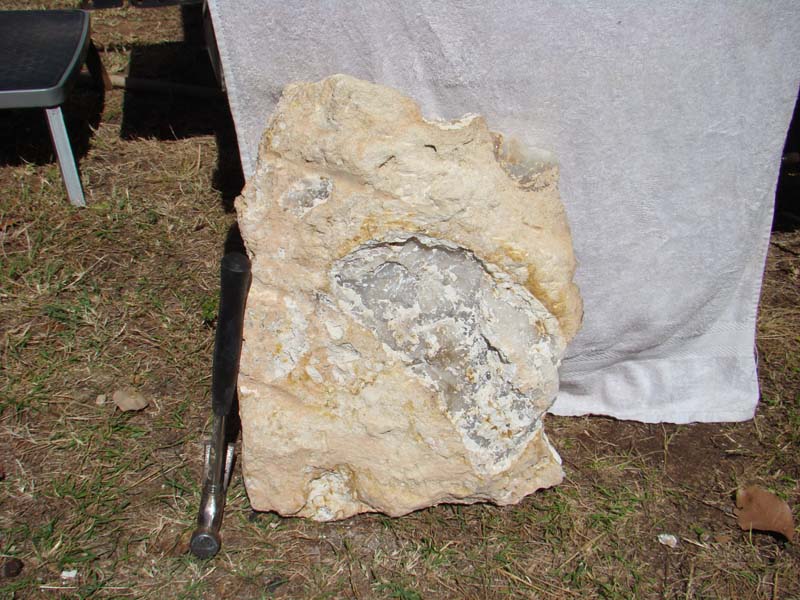 Yesterday I managed to break off a piece of gypsum about 15" x 12" x 2" thick, but I left the remainder of the gypsum stuck fast in the 'mullock heap'. Today,