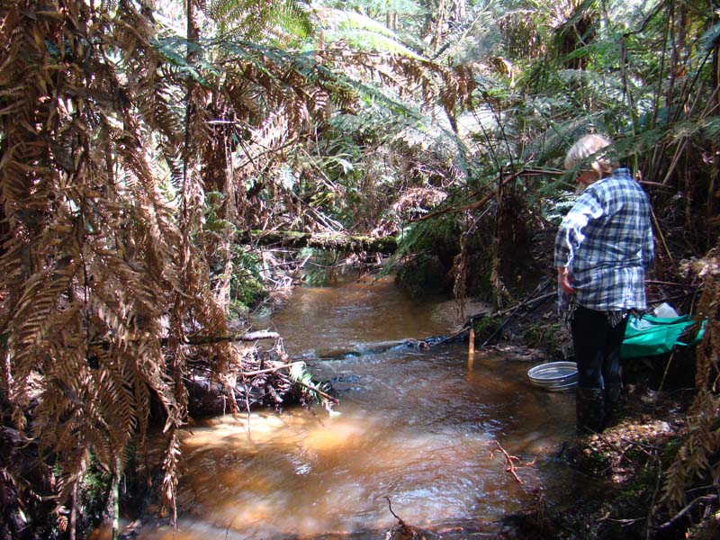 Ok, Marg and I finally arrived at the creek, it is flowing sort of quickly. Our first spot for fossicking was a gravel area and we