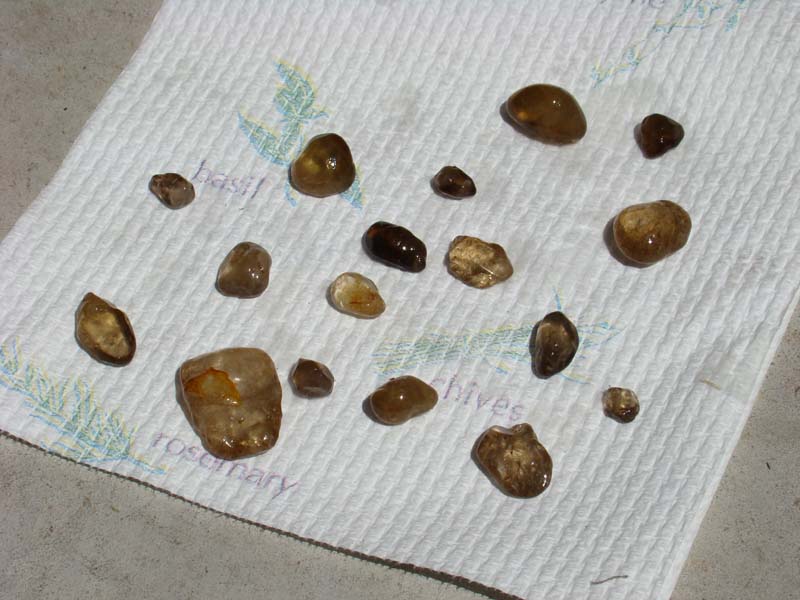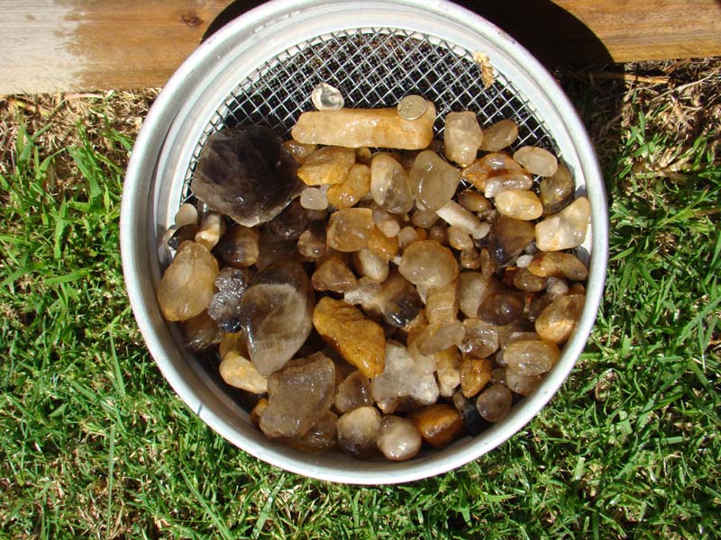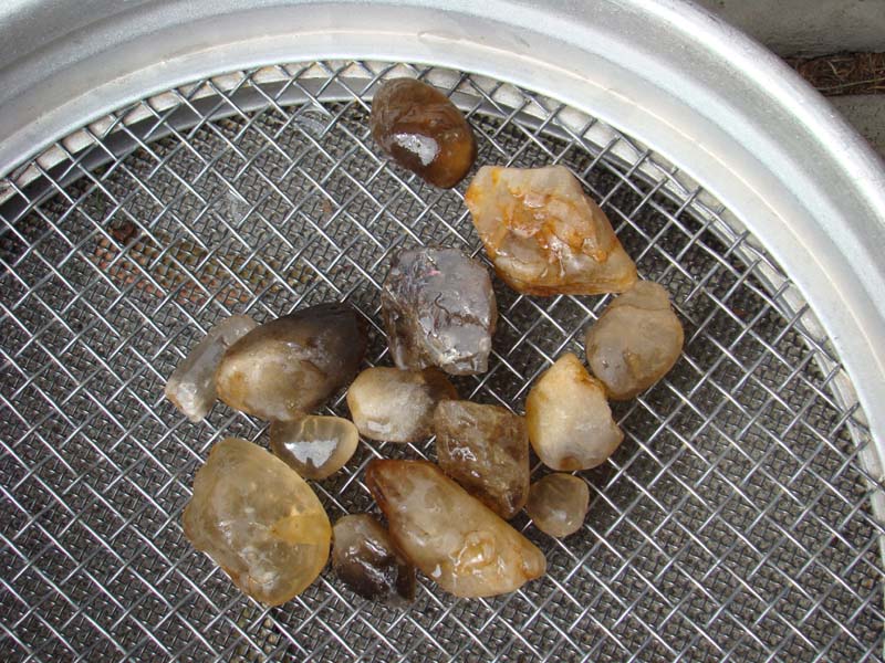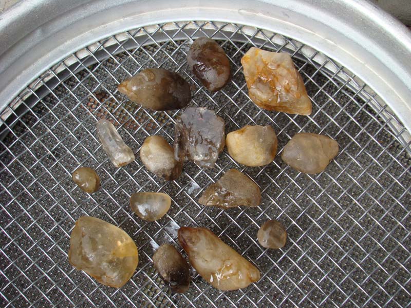 Marg said that each sieve contained about 3 to 4 stones consisting of clear quartz, smoky quartz, citrine and topaz.