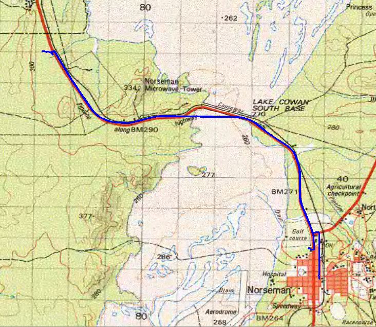 the dried Lake Cowan and that is all. The airport is a couple of kilometers from the Tourist Centre on your way to Esperance. The location is -32.207908
