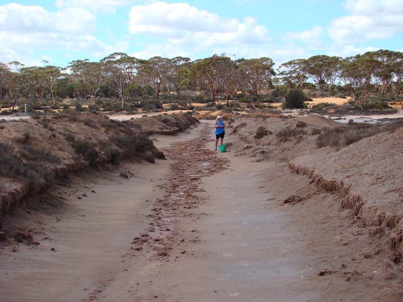 which maybe a kilometer away. You can drive your car, but I didn't trust the dried lake so Marg and I walked. As we approached a drain, we started to see