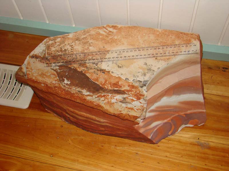 x 4" high, a decent chunk of rock, I reckon that it weighed about 30 kgs. It was too heavy for my back pack, so I carried it under one arm and my