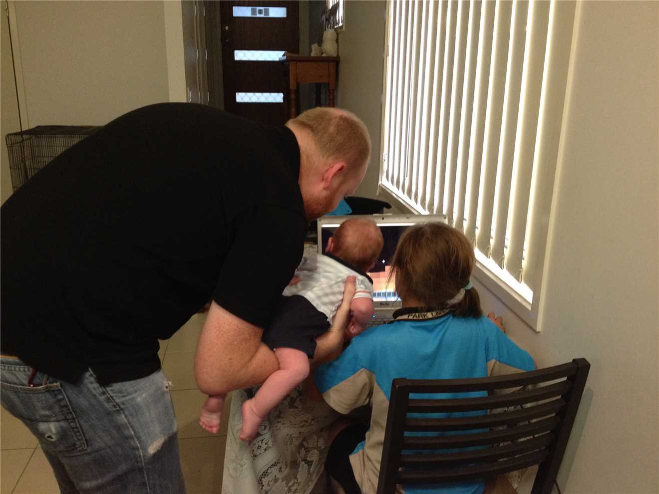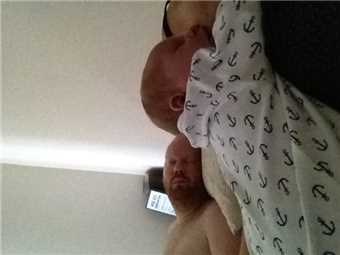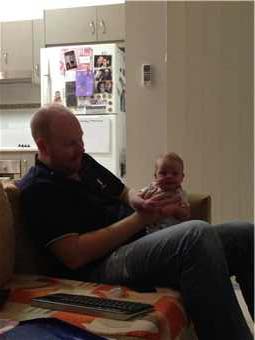 5th Apr 15 - I am with my new mate (EB), he is a bit funny looking, but he brings me nice stuff. BTW, today I am 12 weeks and 5 days old. (I am nearly as old as Grandpa).