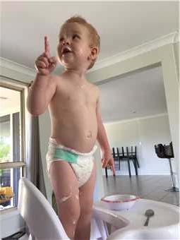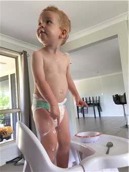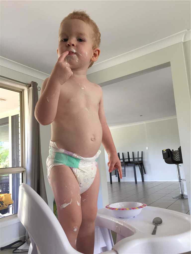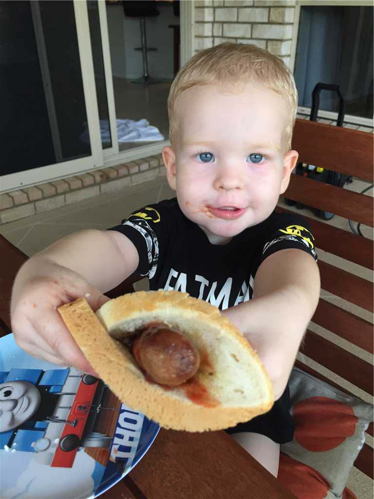 26th Jan 2017 - I cooked a sausage in bread on our bbq...OK, Daddy cooked it and I loved it. As Grandpa says "It was so YUMMA!"