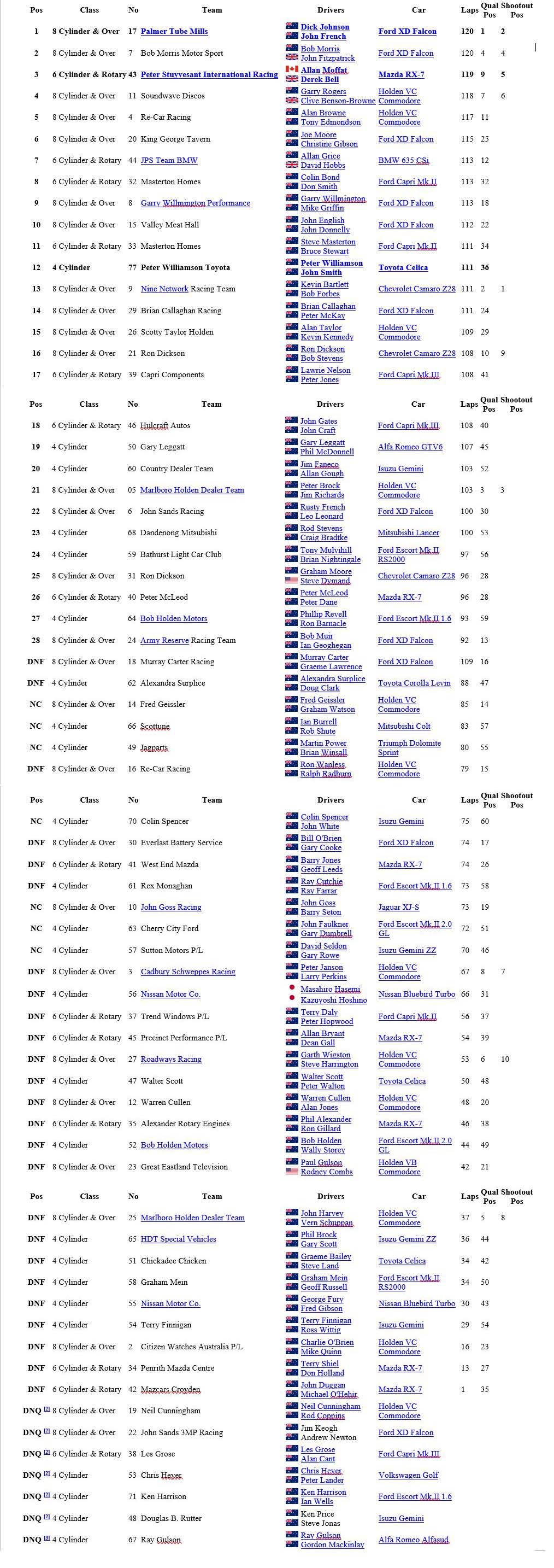 Garry Rogers & Clive Benson-Browne were awarded position 4 after completing 118 laps.