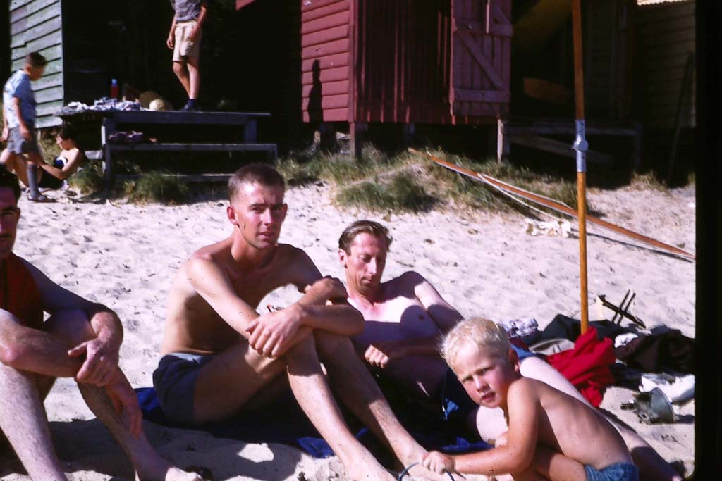 Notice pappy is wearing a suit to the beach.