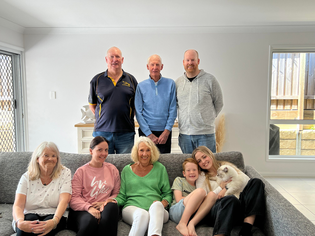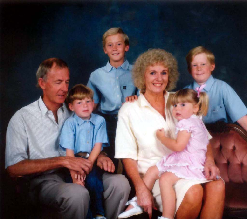 Dad, Peggy, Mum, Sue, Liz, Warwick and me.