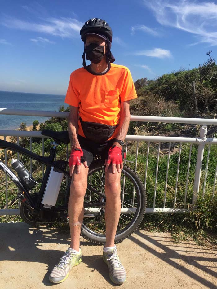 81. Feb 2021 - Dad out cycling resting at Black Rock Life Saving Club.